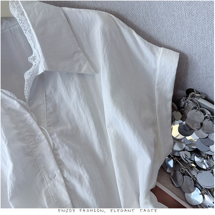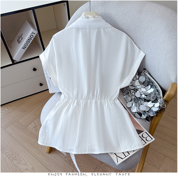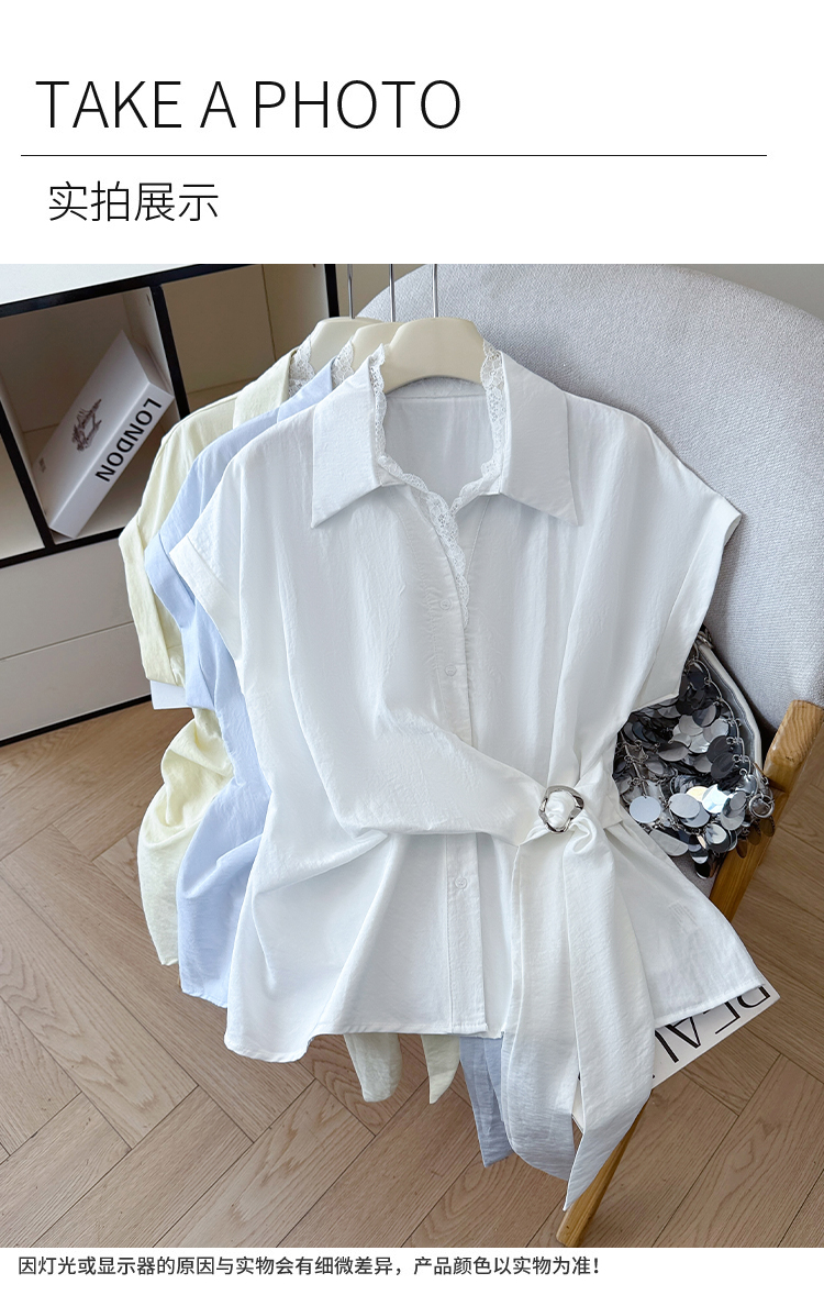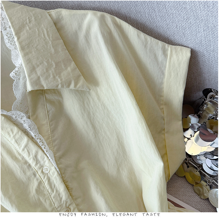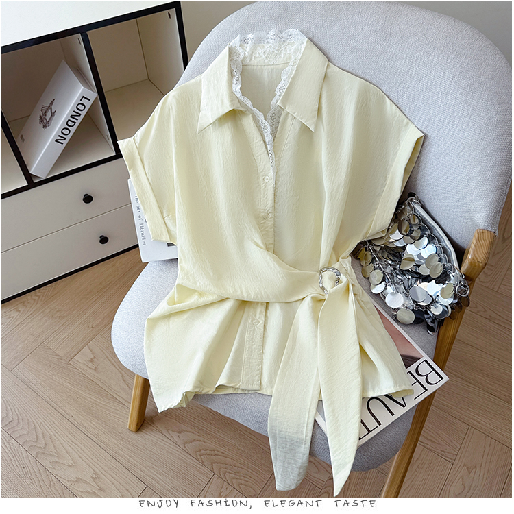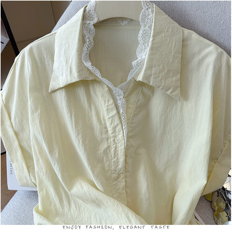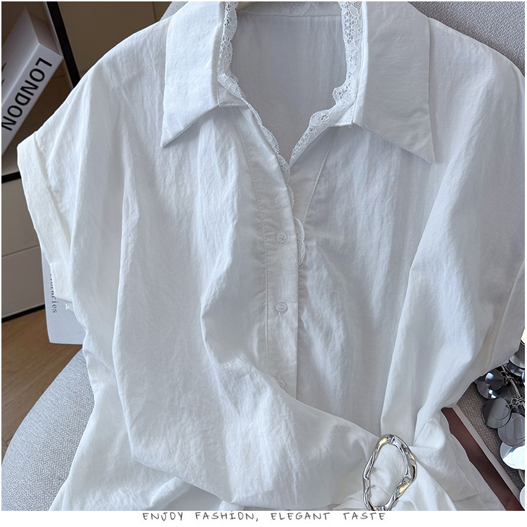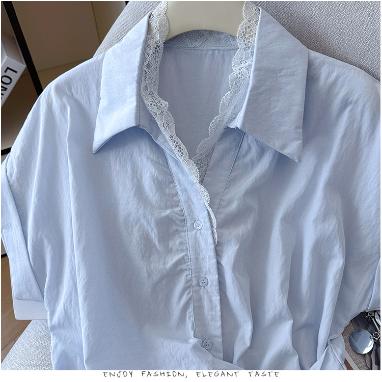 RY3520# 2026夏季新款设计感蕾丝翻领排扣衬衫百搭韩系风休闲短袖洋气上衣