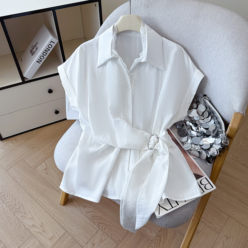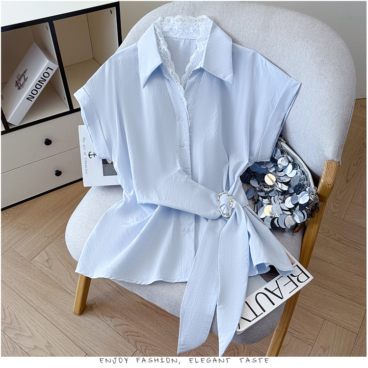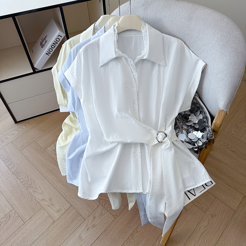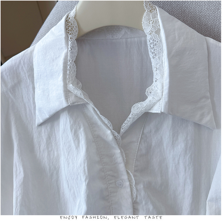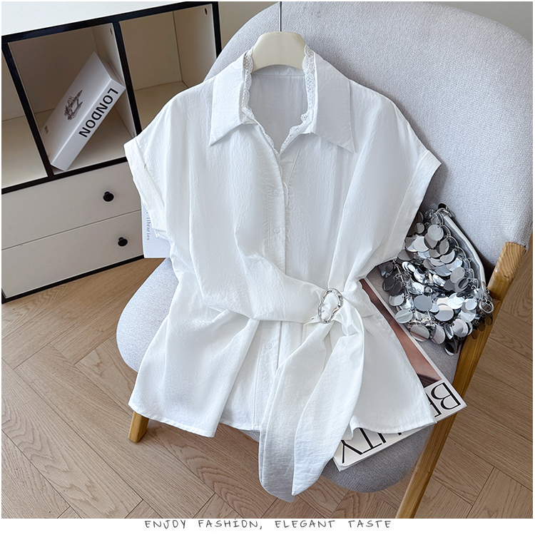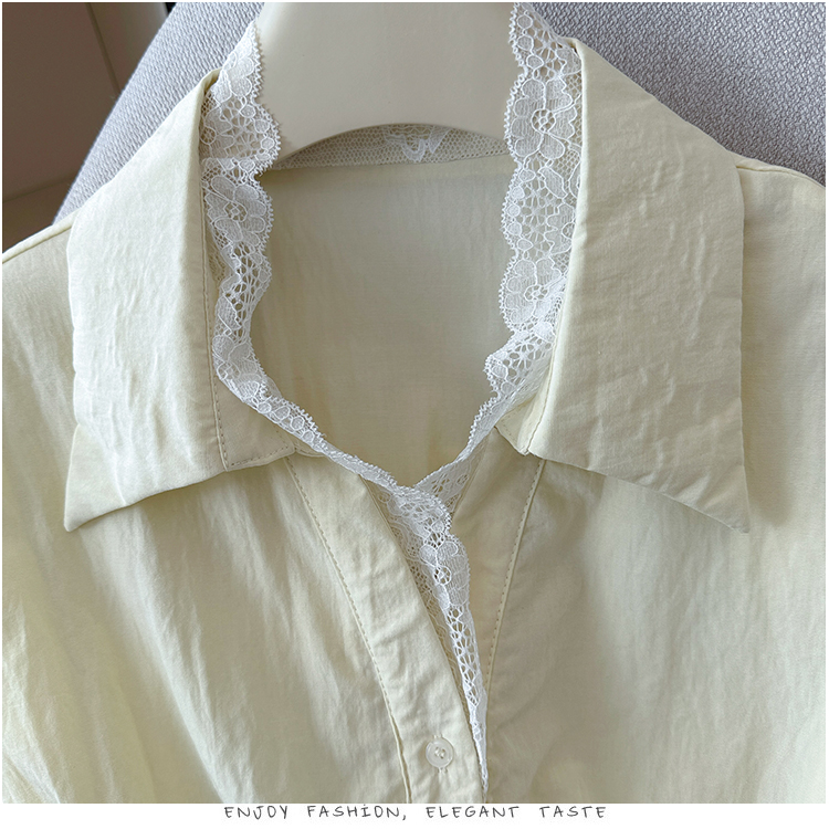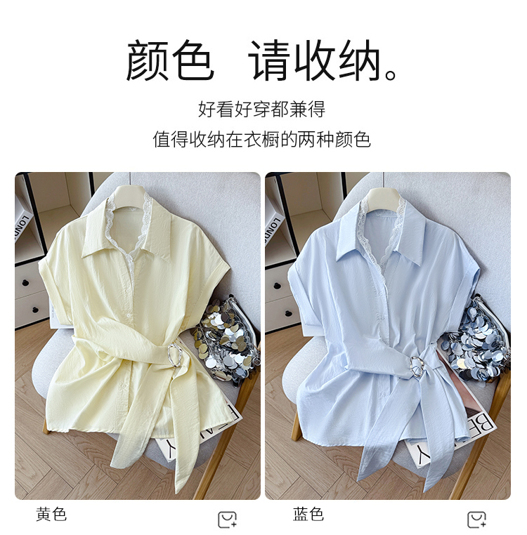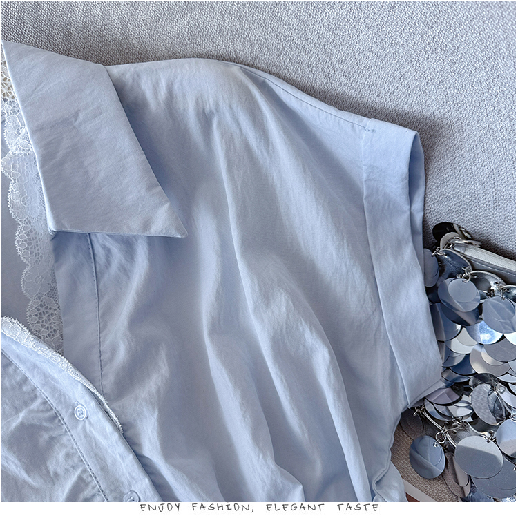 RY3520# 2026夏季新款设计感蕾丝翻领排扣衬衫百搭韩系风休闲短袖洋气上衣