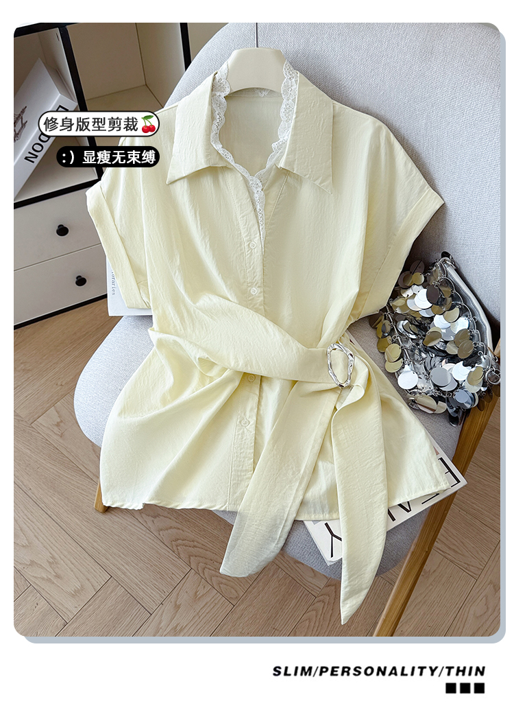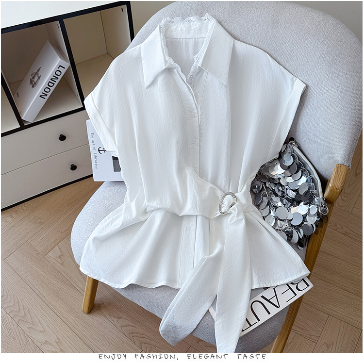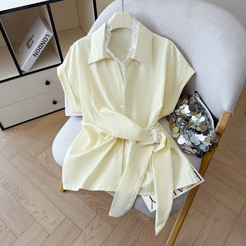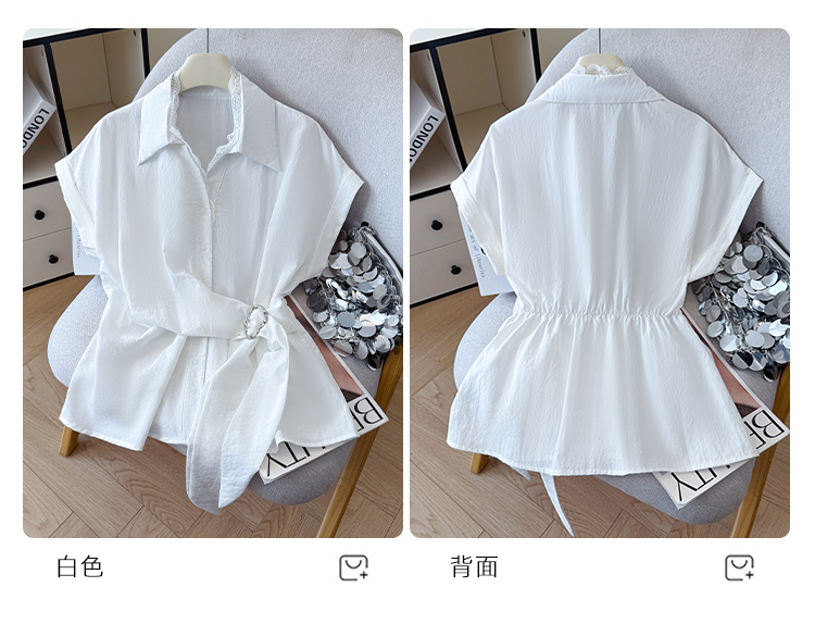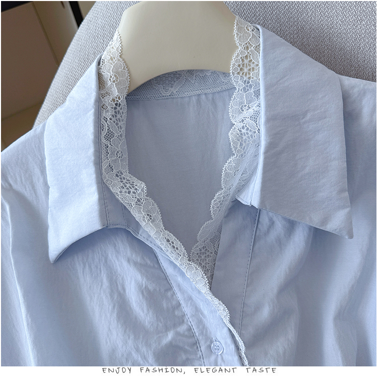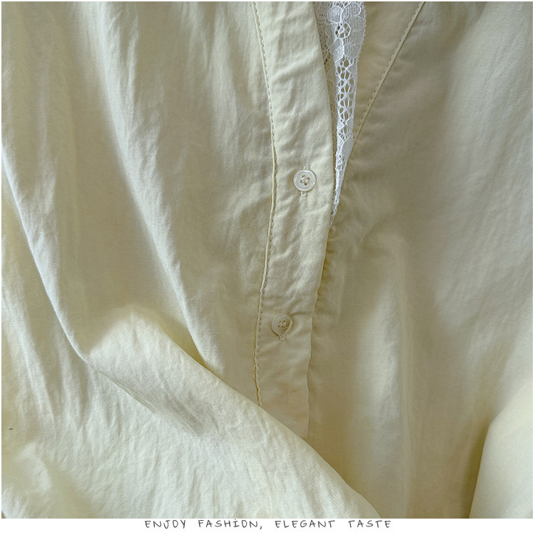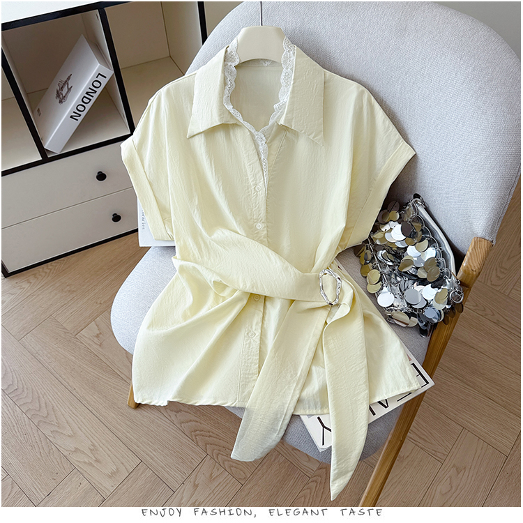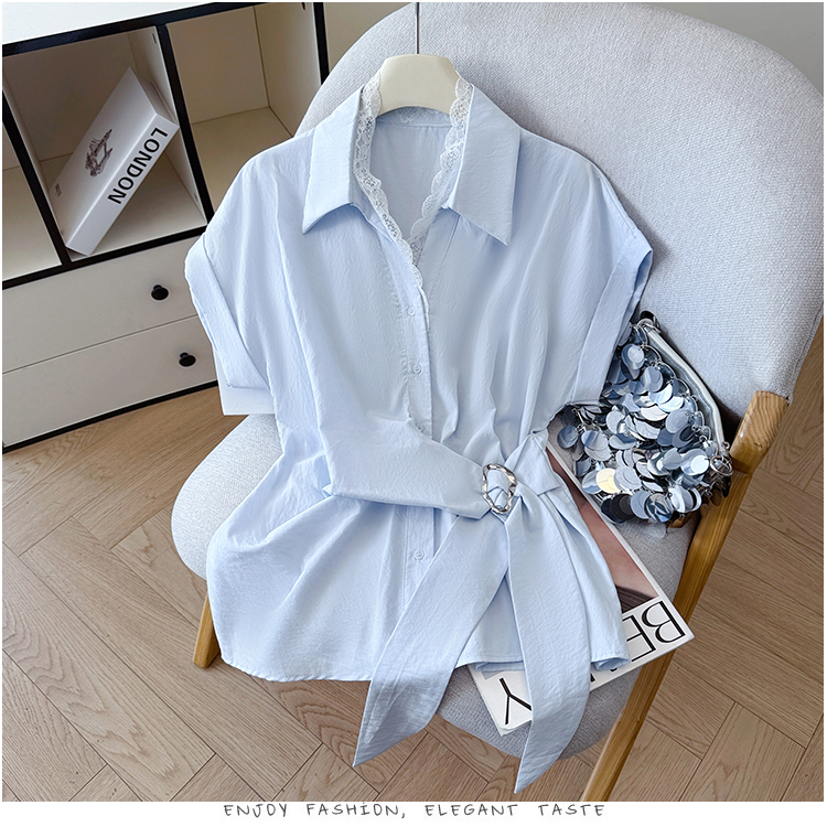 RY3520# 2026夏季新款设计感蕾丝翻领排扣衬衫百搭韩系风休闲短袖洋气上衣