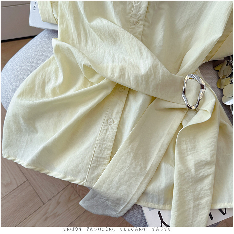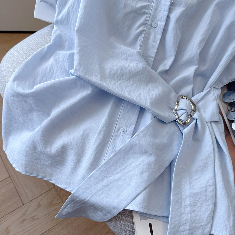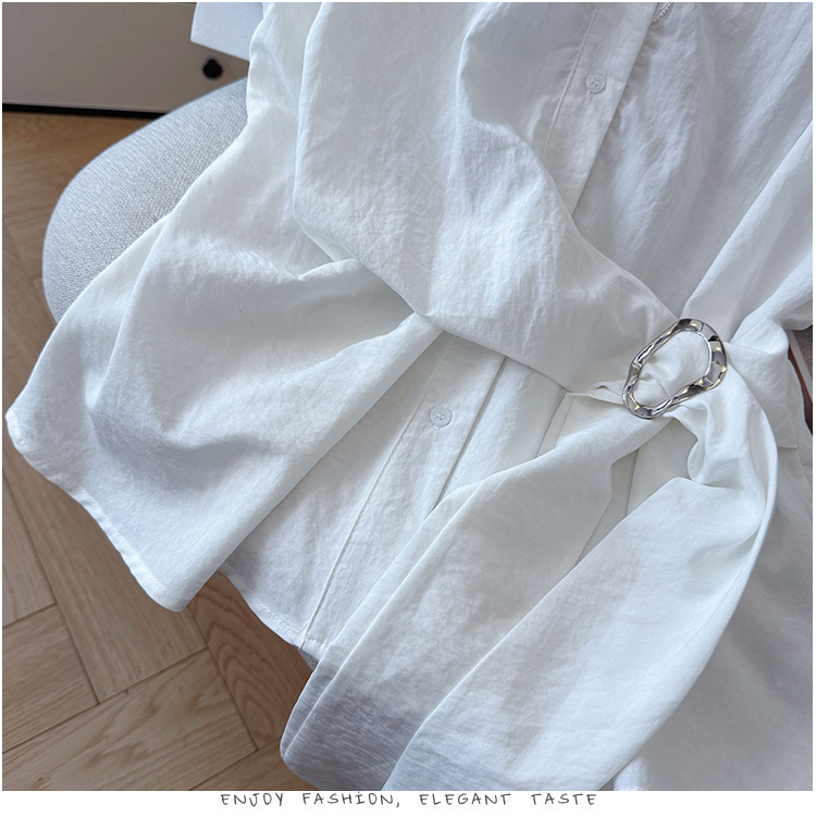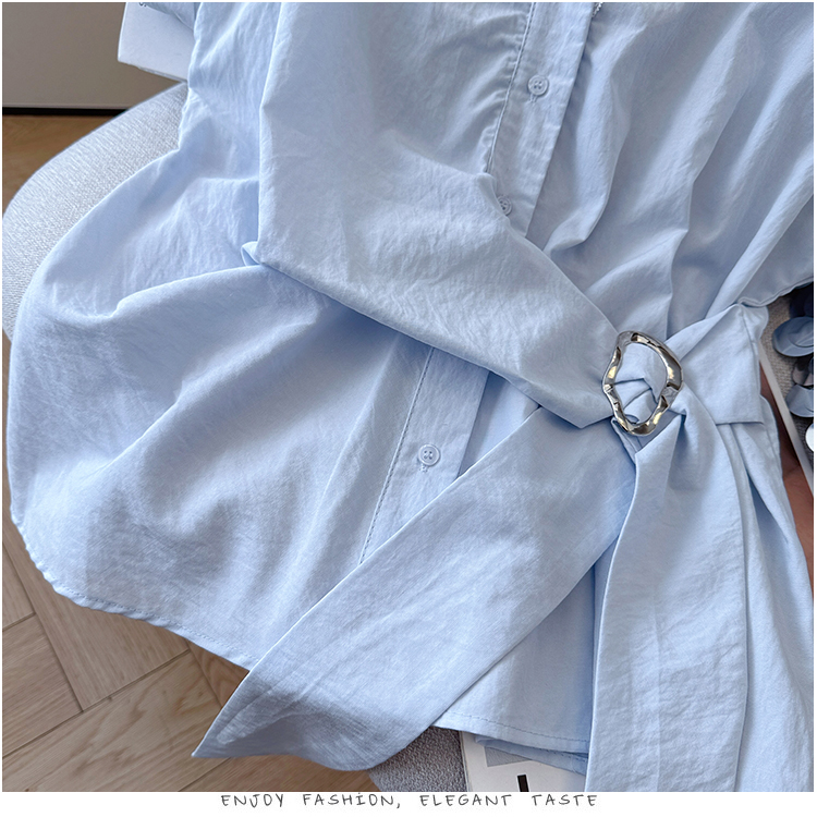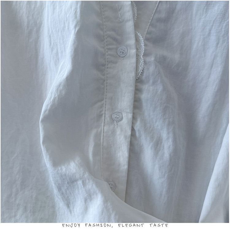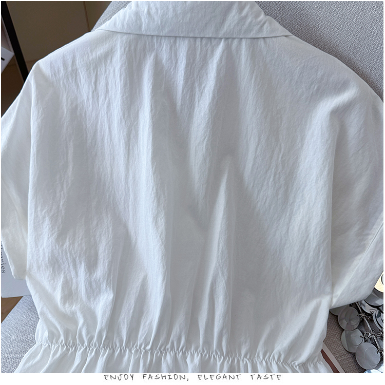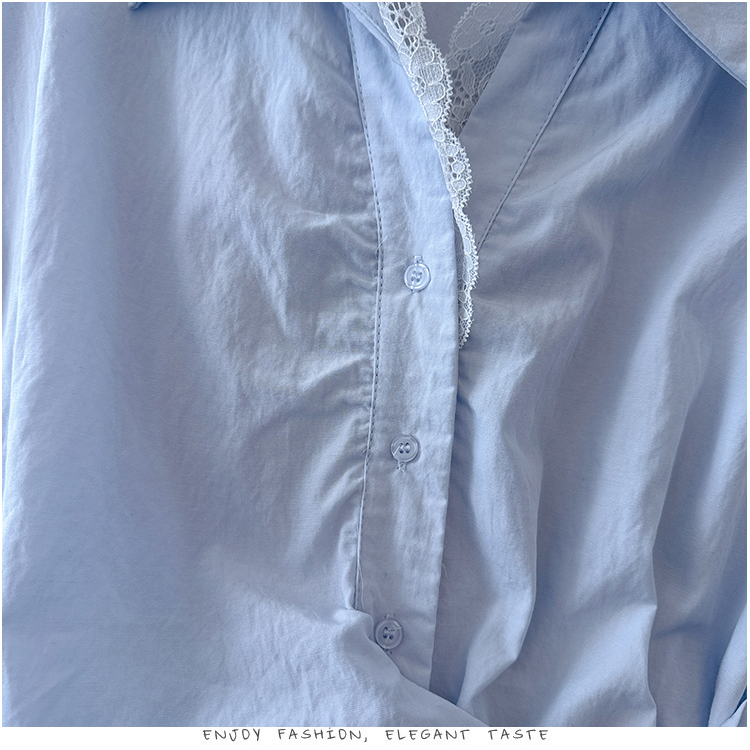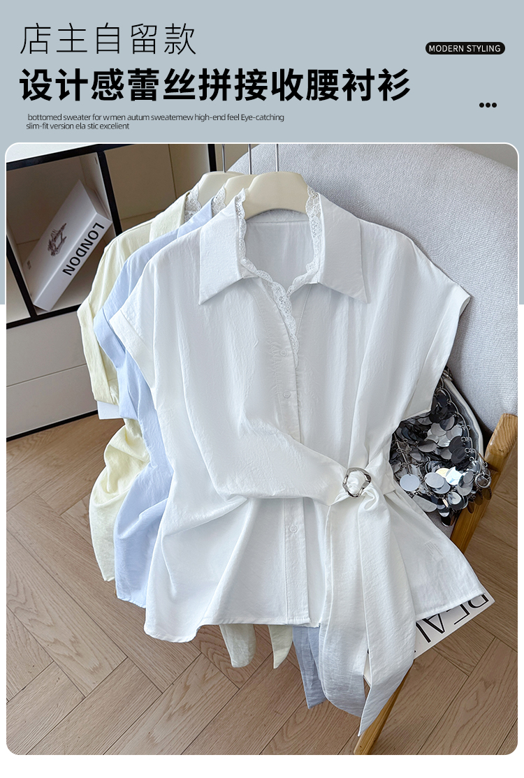 RY3520# 2026夏季新款设计感蕾丝翻领排扣衬衫百搭韩系风休闲短袖洋气上衣