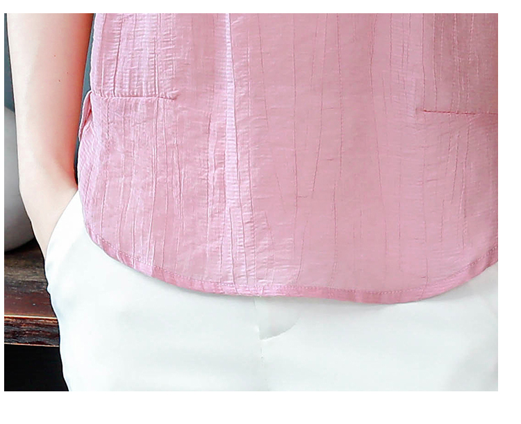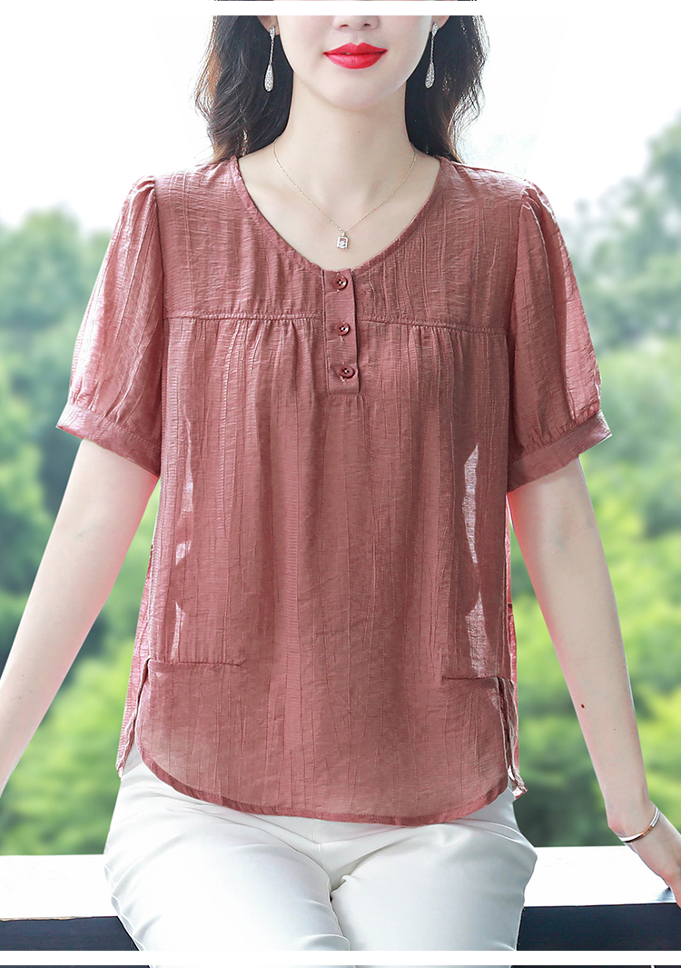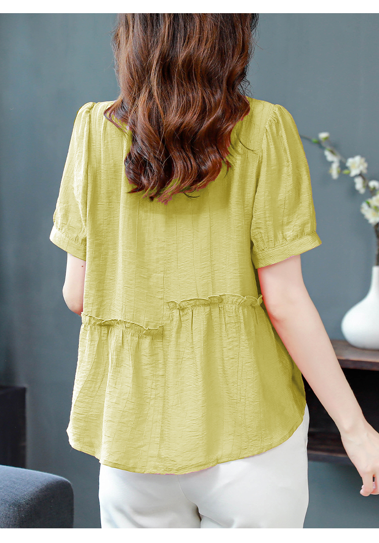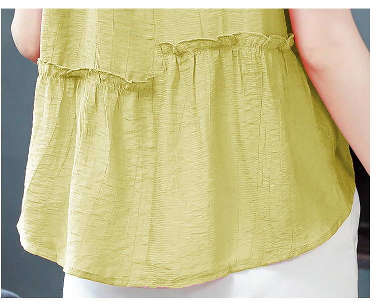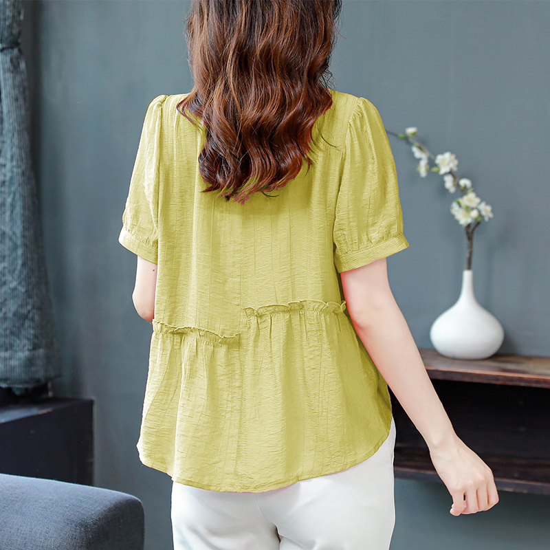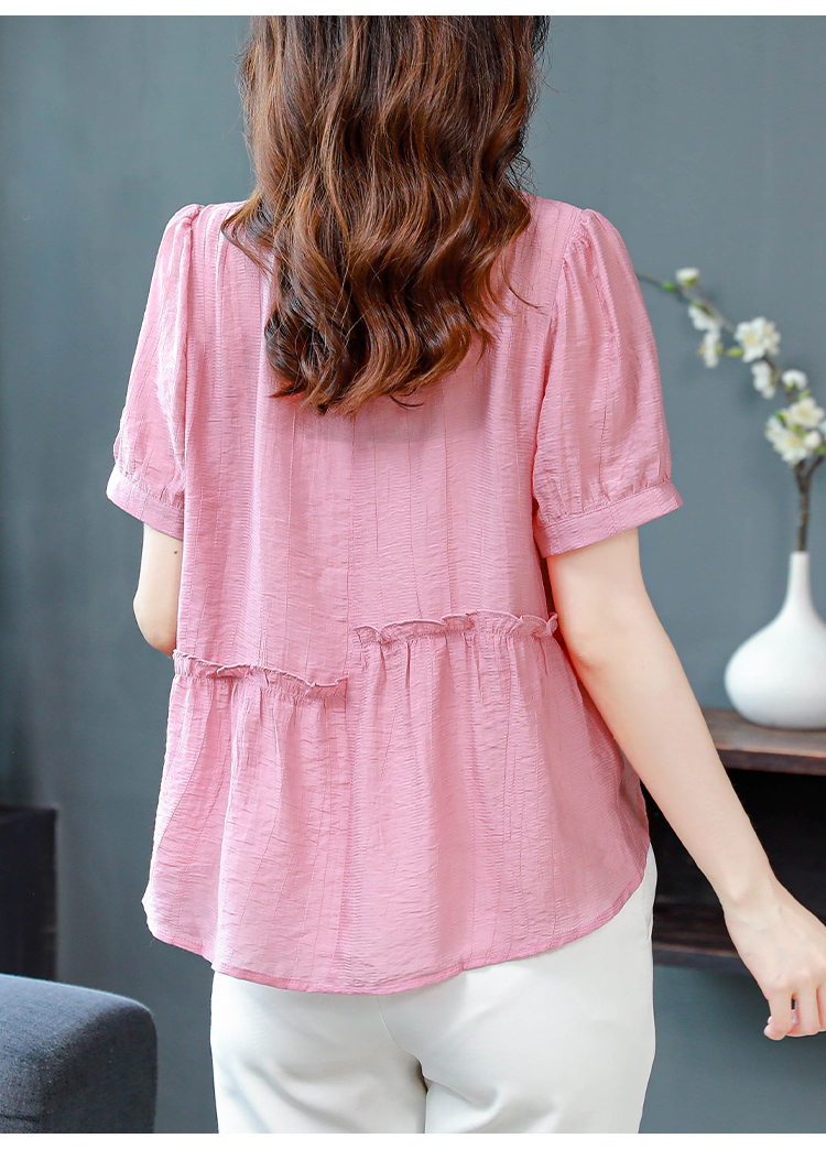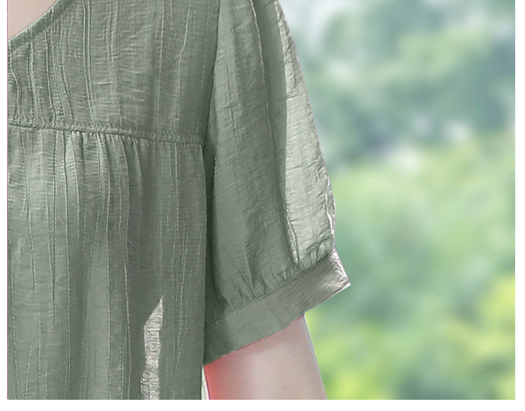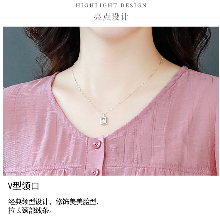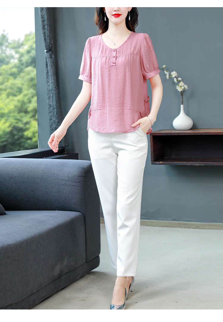 RY3525# 夏新款天丝棉麻时尚洋气大码女上衣遮肚子显瘦圆领开扣短袖