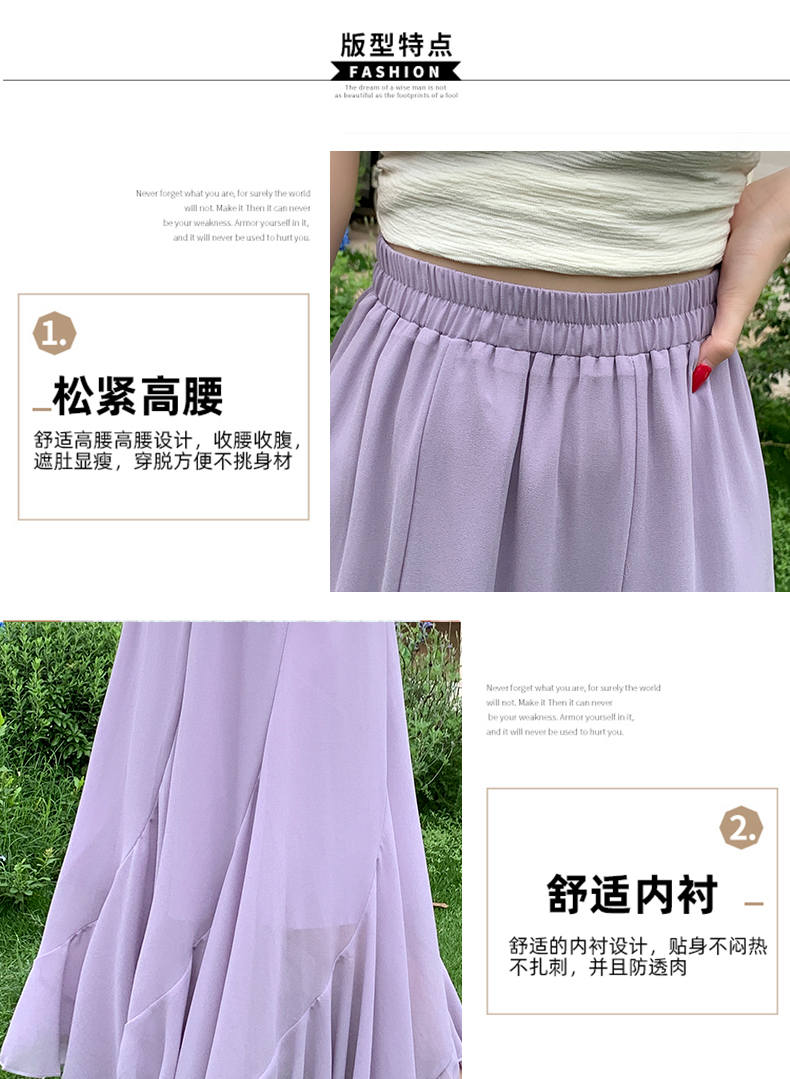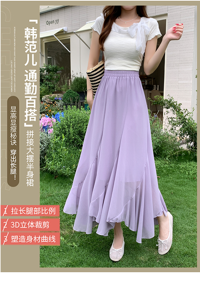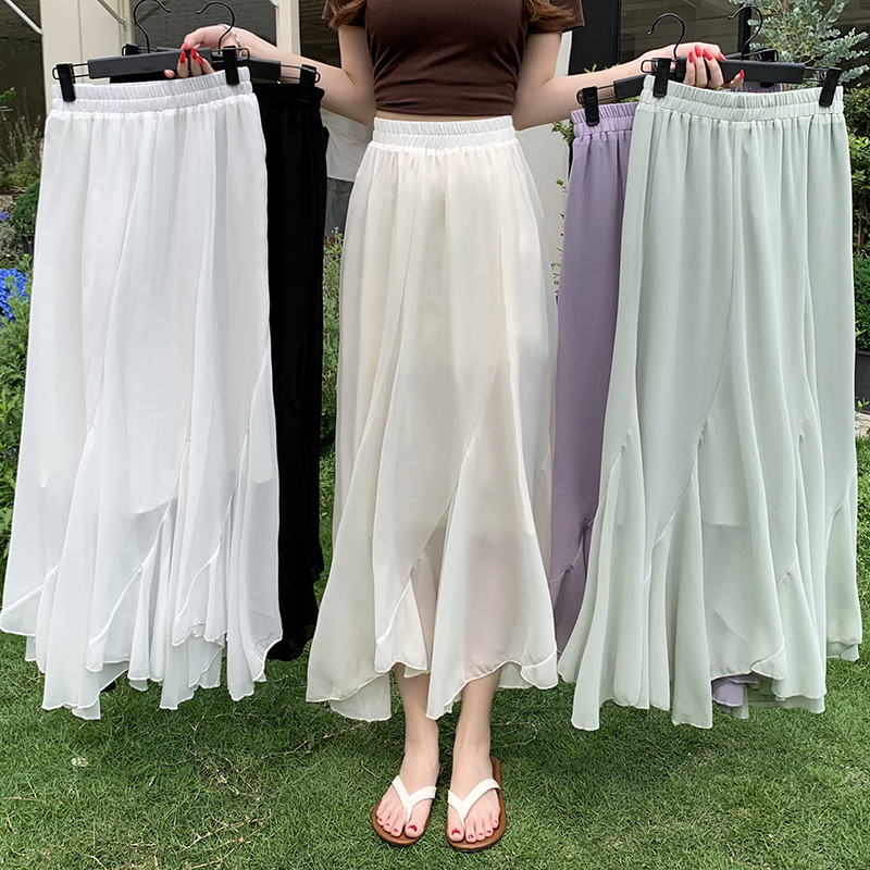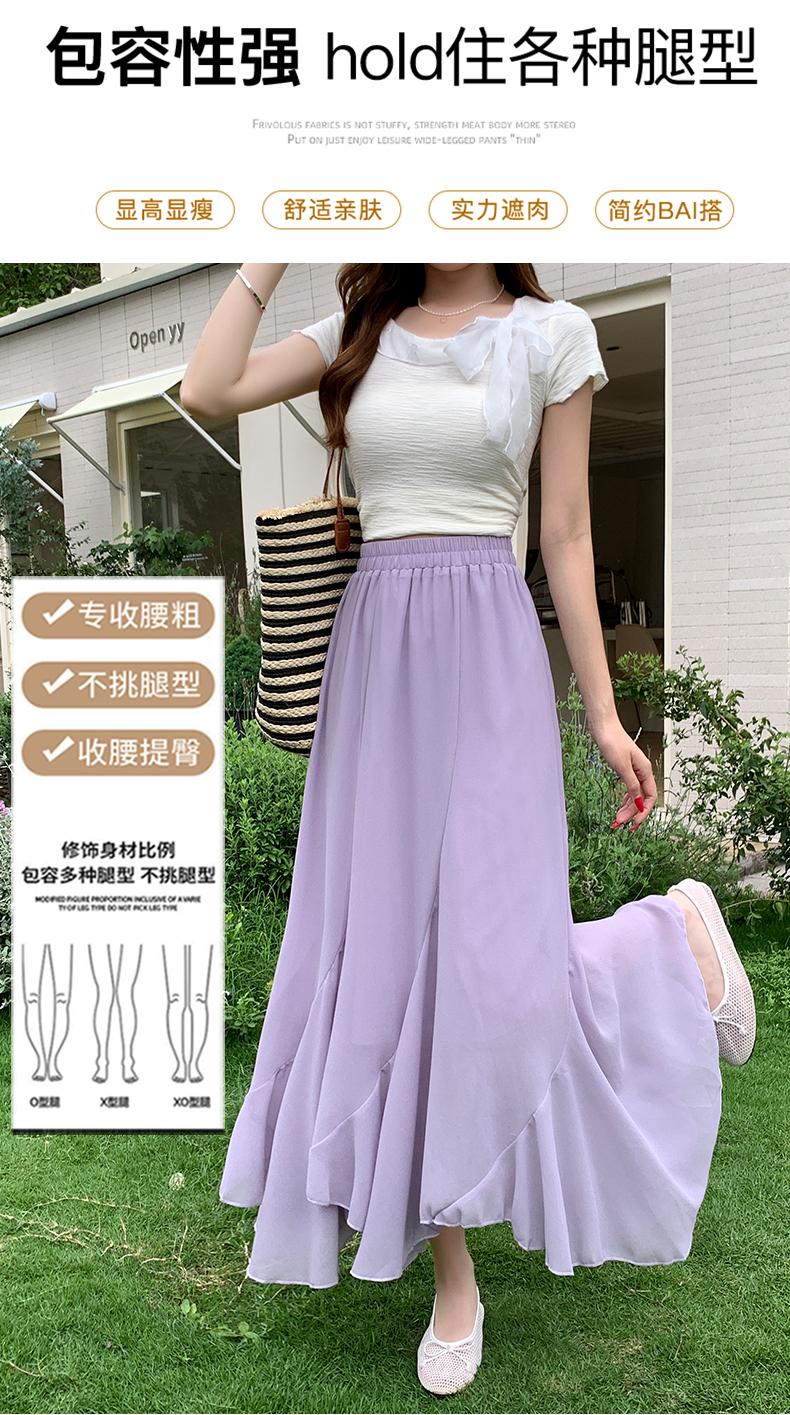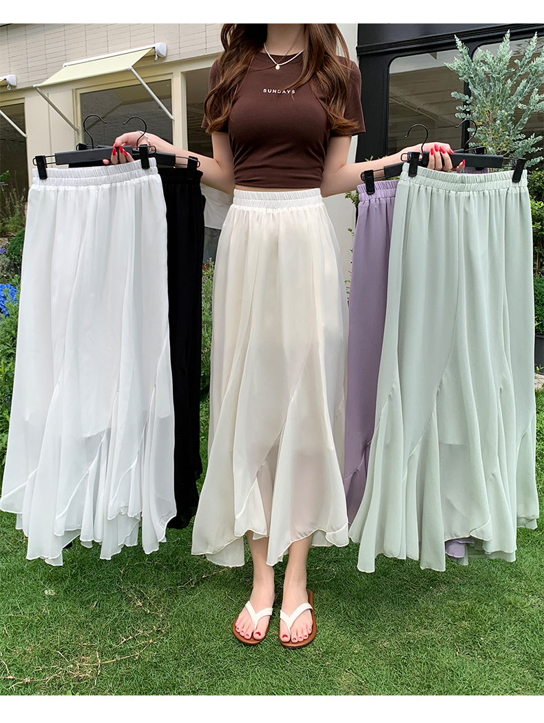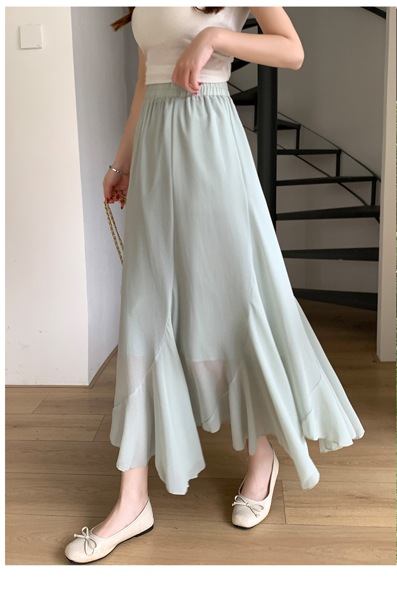 RY3554# 实拍荷叶边半身裙女夏季2026新款拼接设计感高腰垂坠雪纺鱼尾裙子