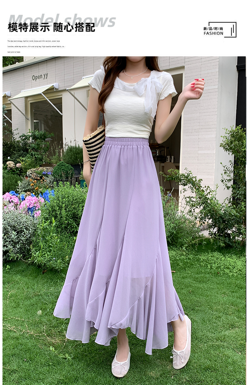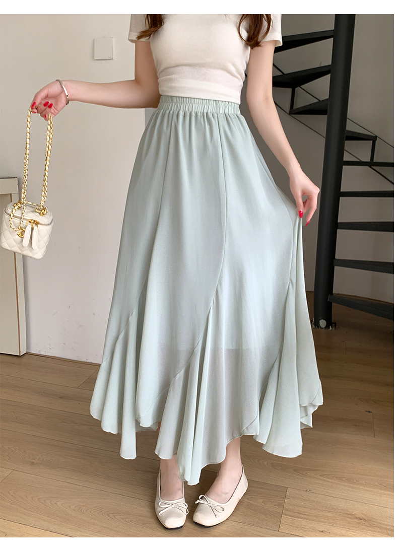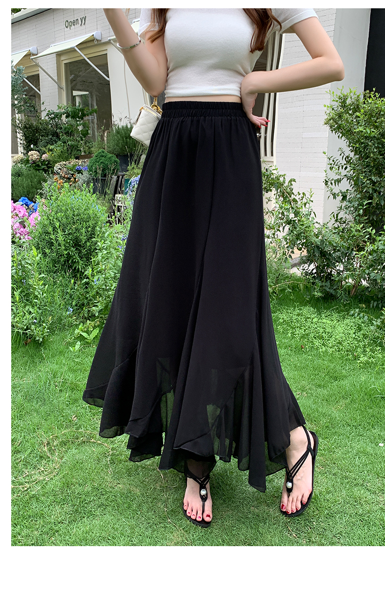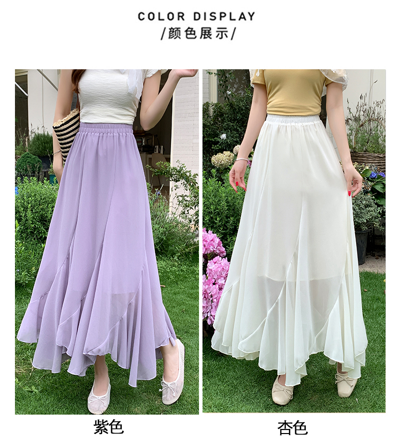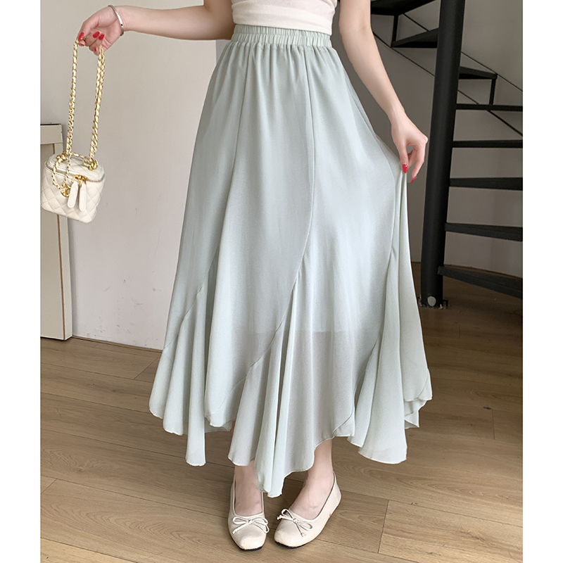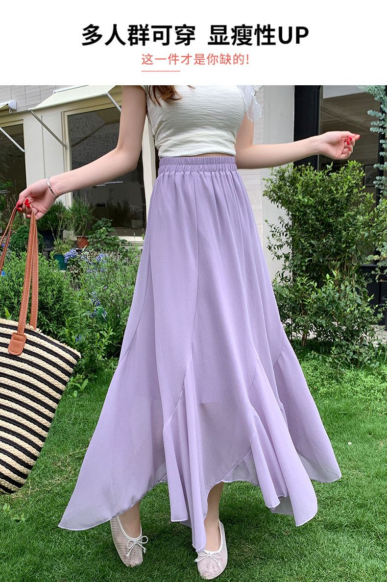 RY3554# 实拍荷叶边半身裙女夏季2026新款拼接设计感高腰垂坠雪纺鱼尾裙子