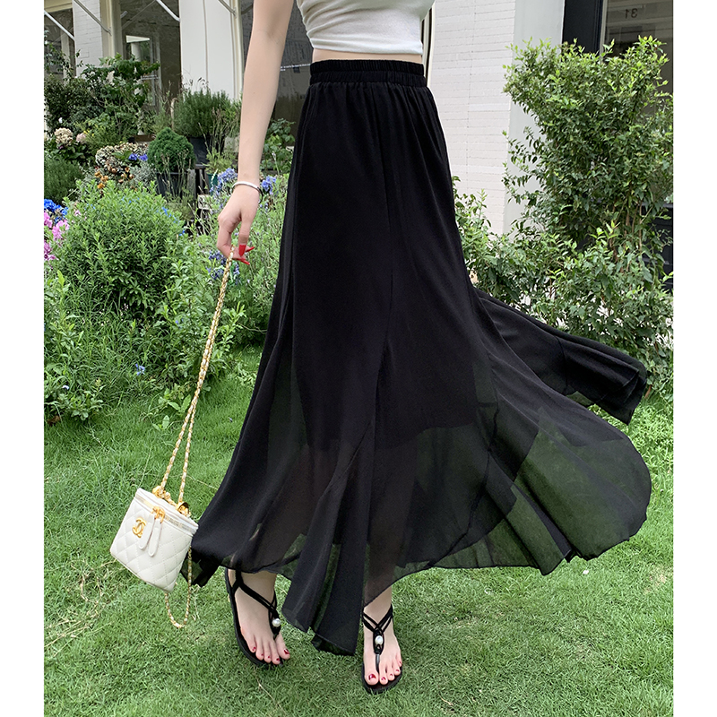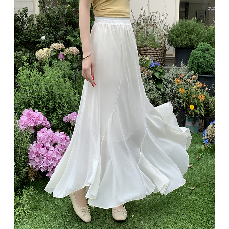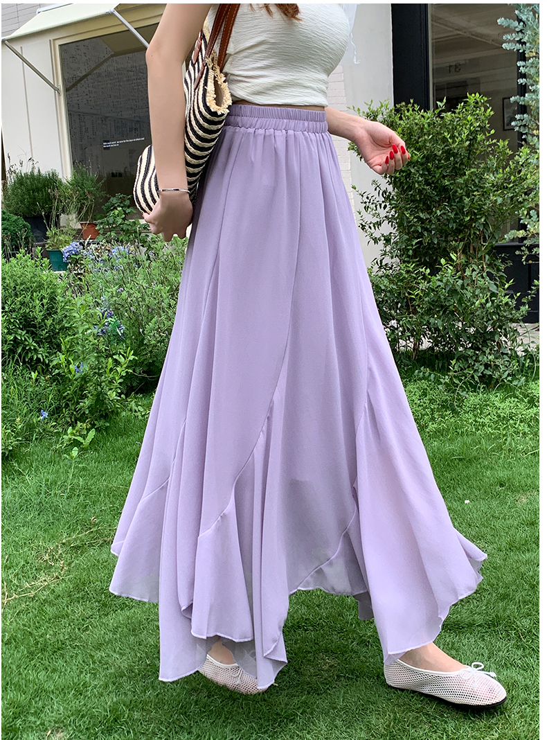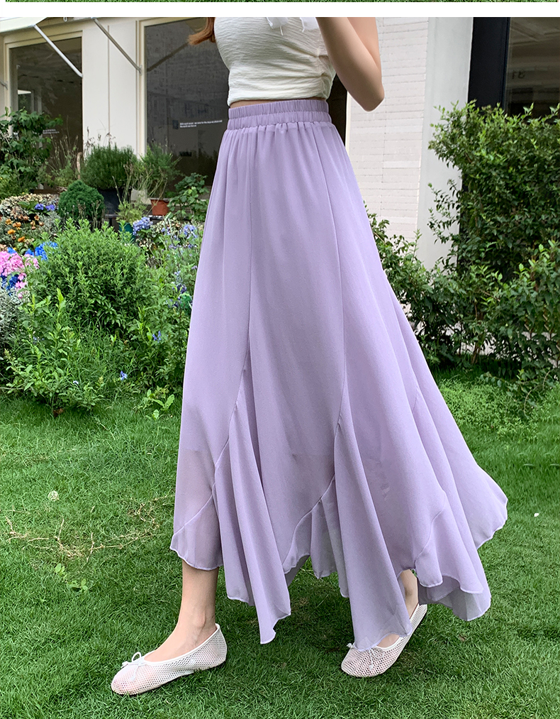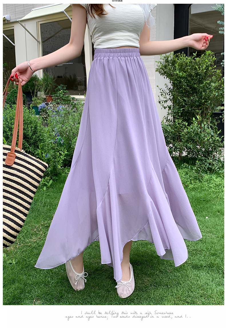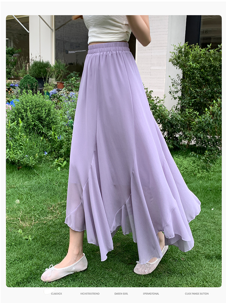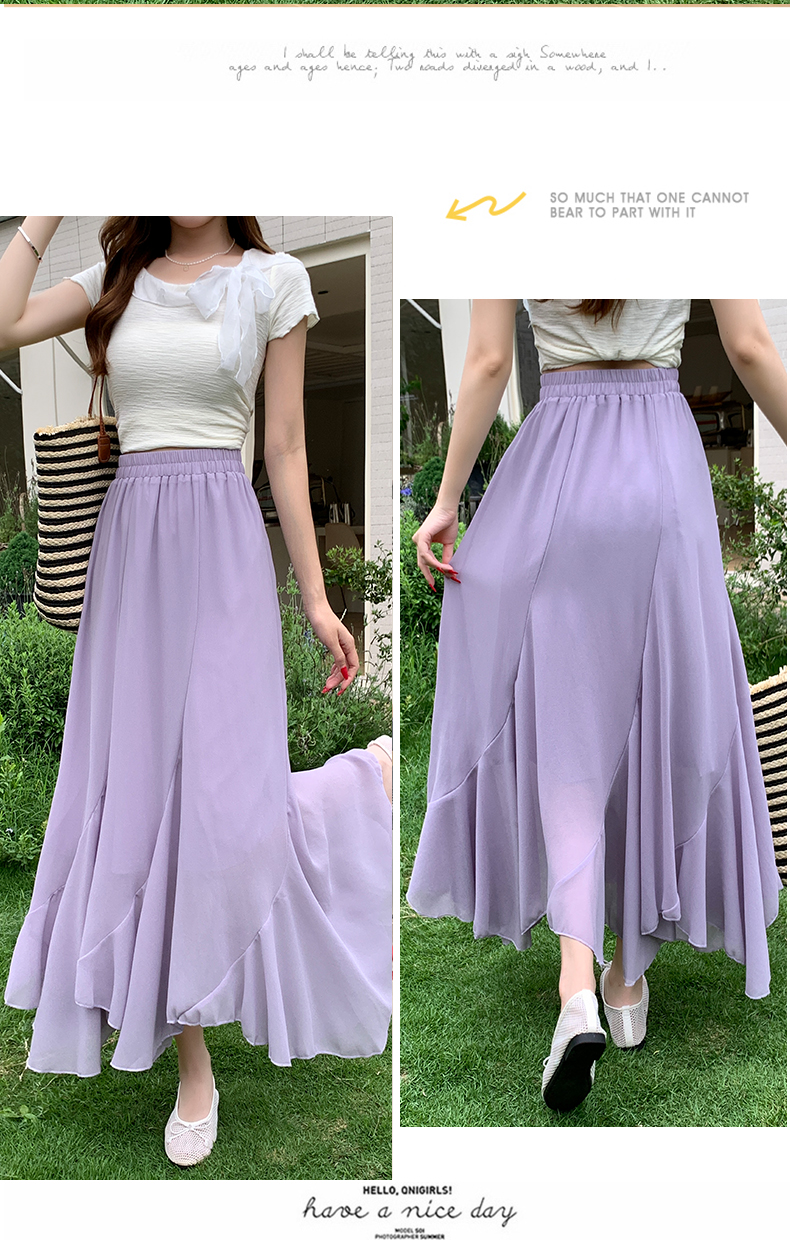 RY3554# 实拍荷叶边半身裙女夏季2026新款拼接设计感高腰垂坠雪纺鱼尾裙子