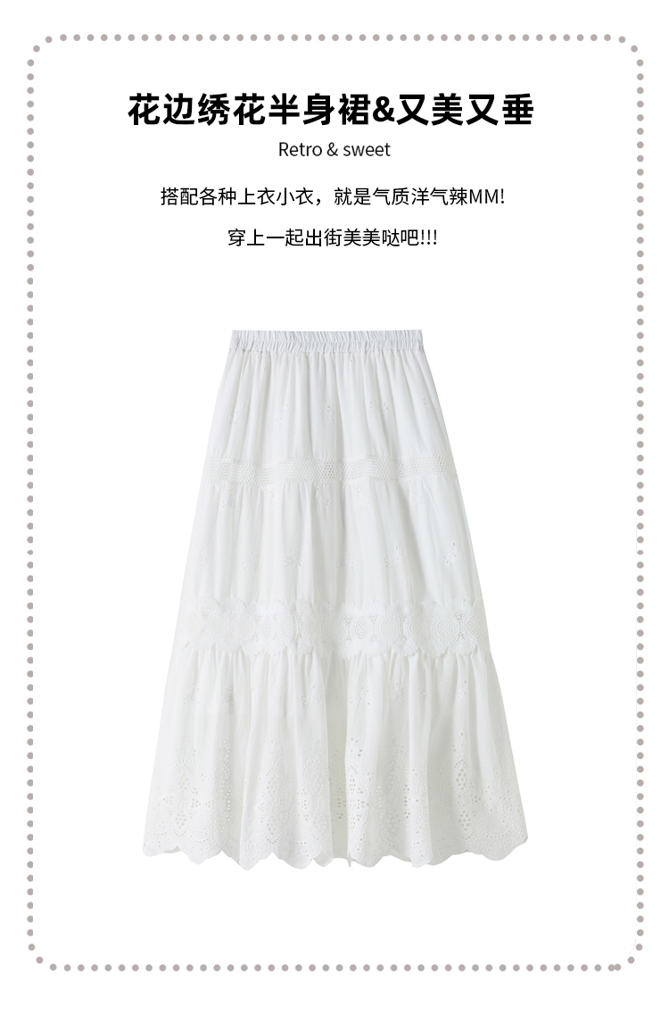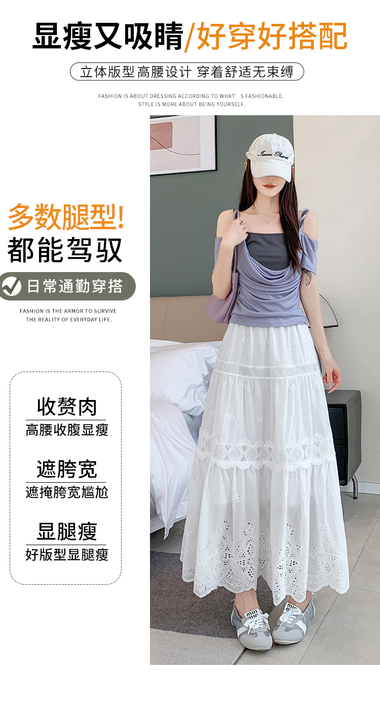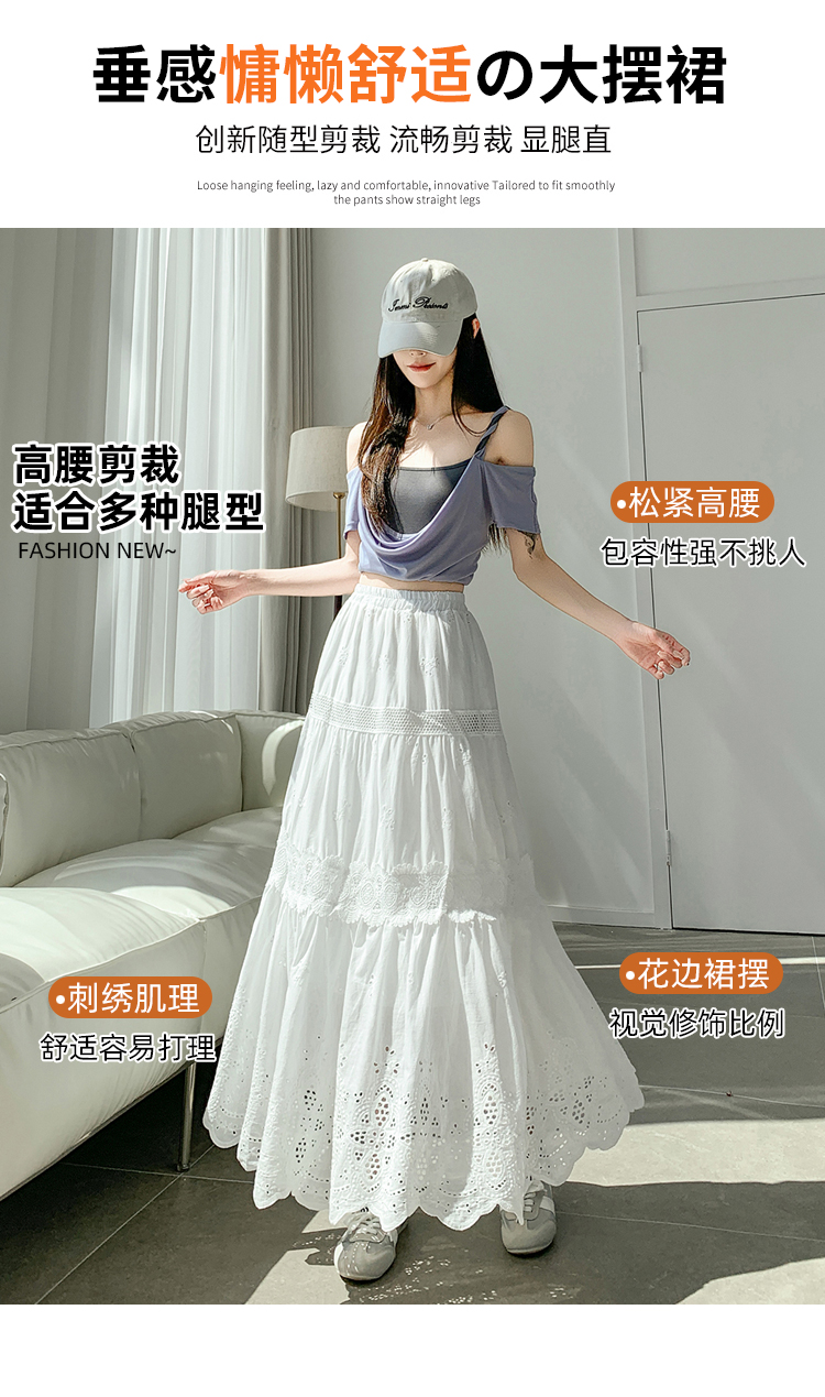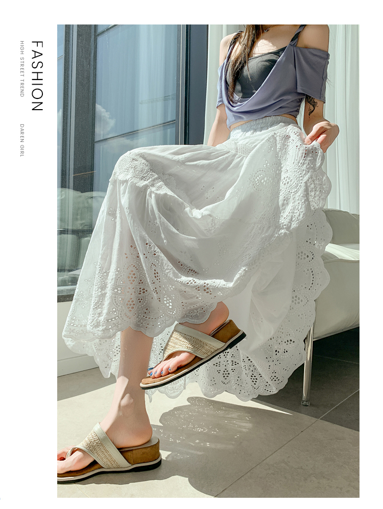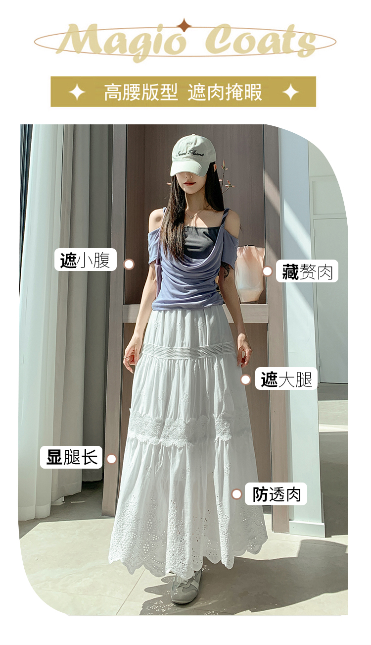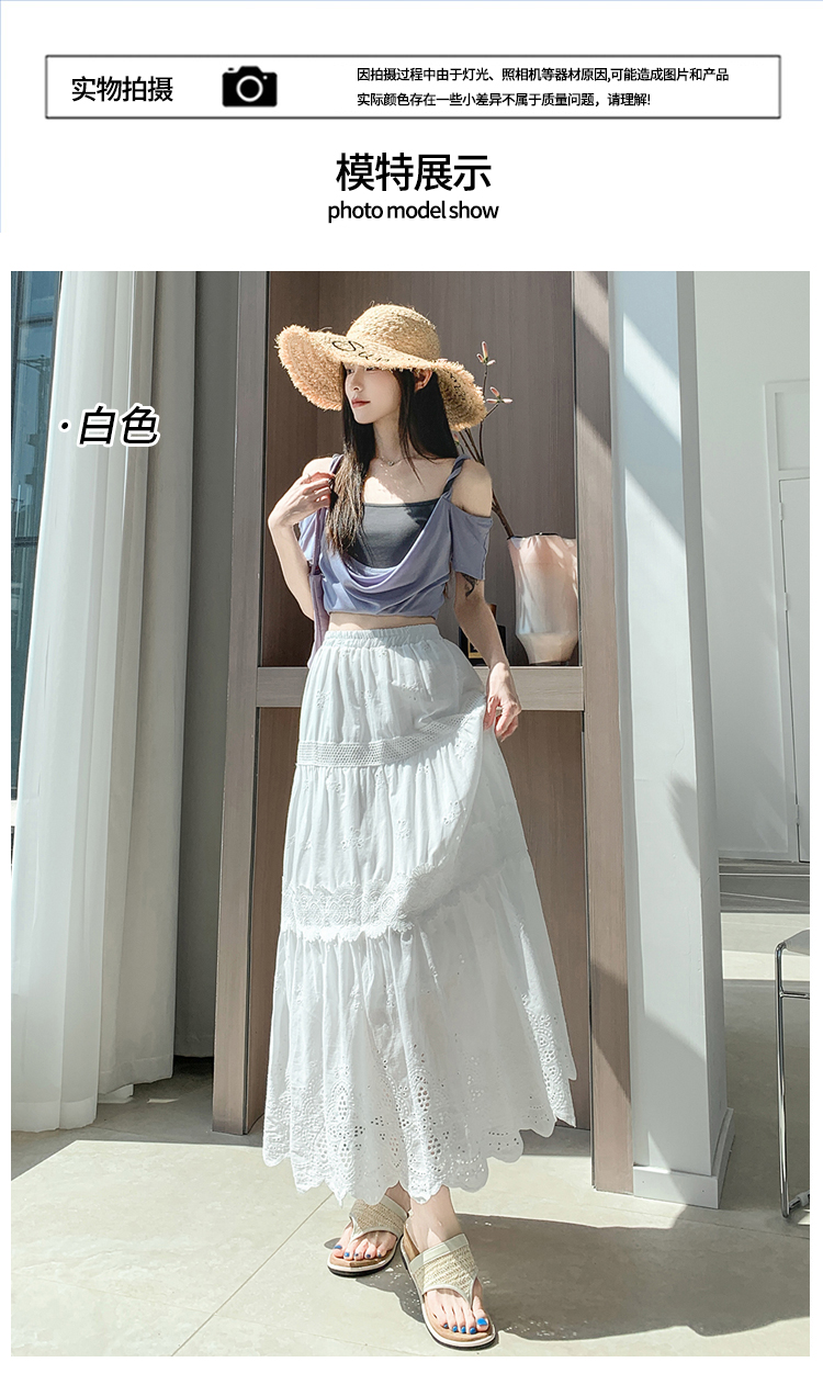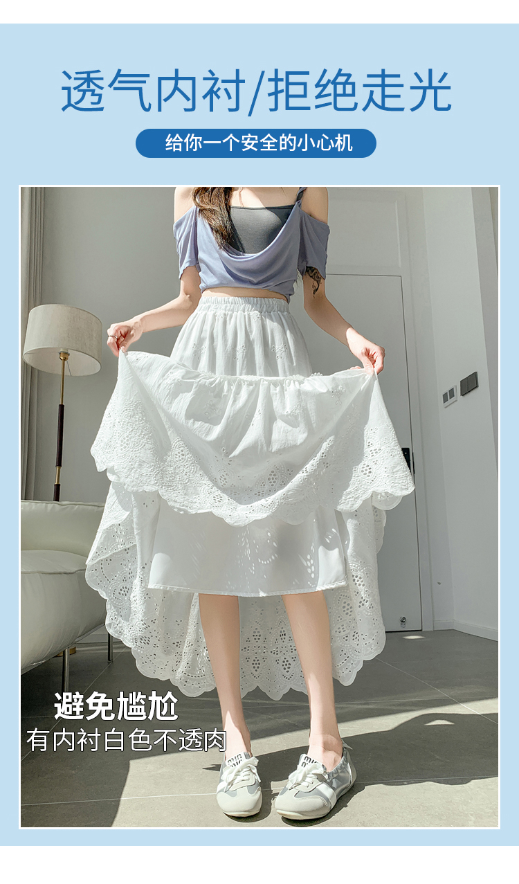 RY3580# 实拍白色蕾丝花边百褶蛋糕半身裙女夏季镂空垂感长裙a字大摆伞裙