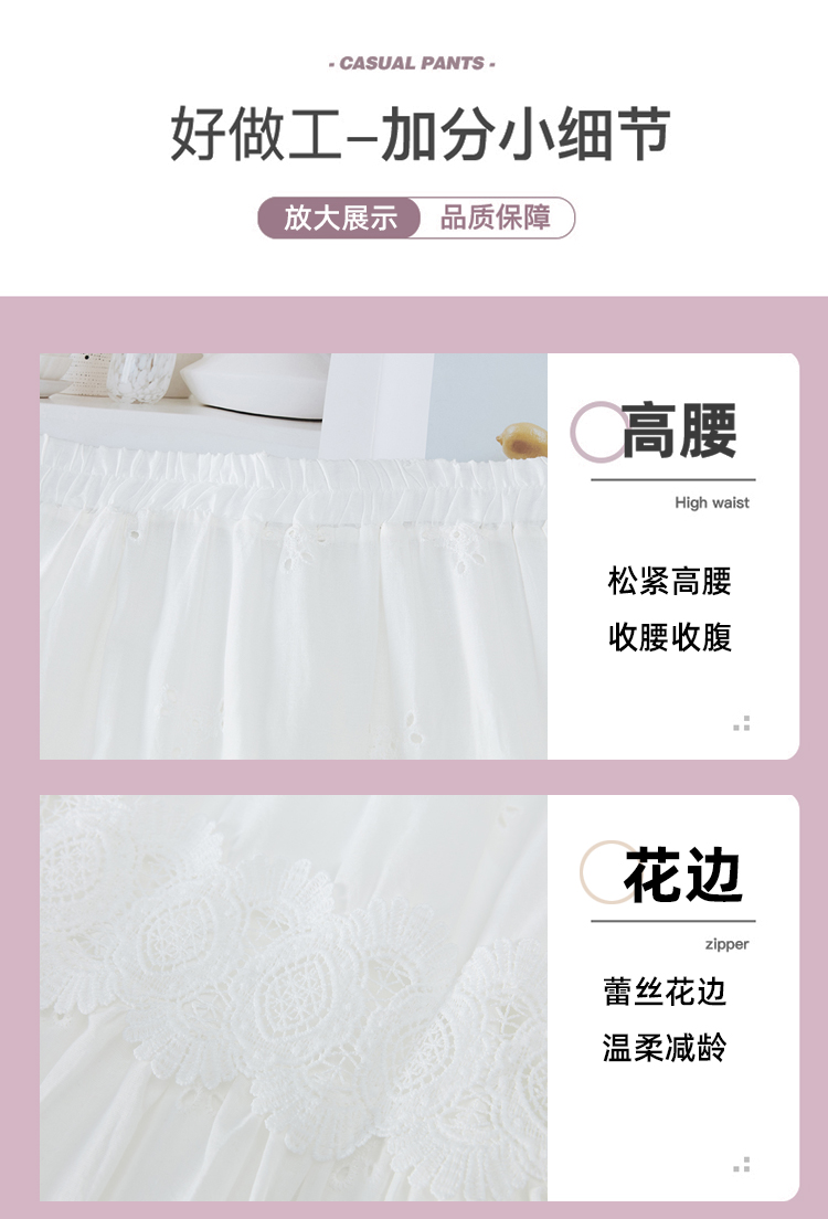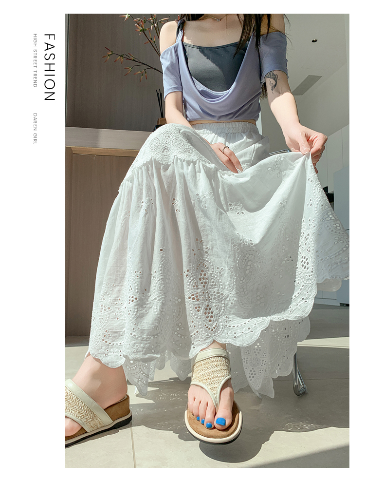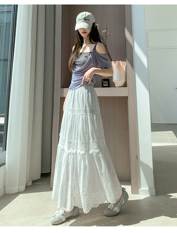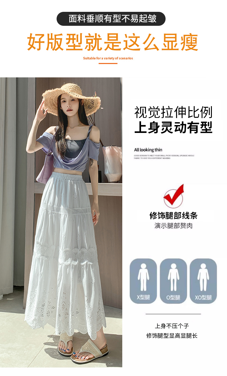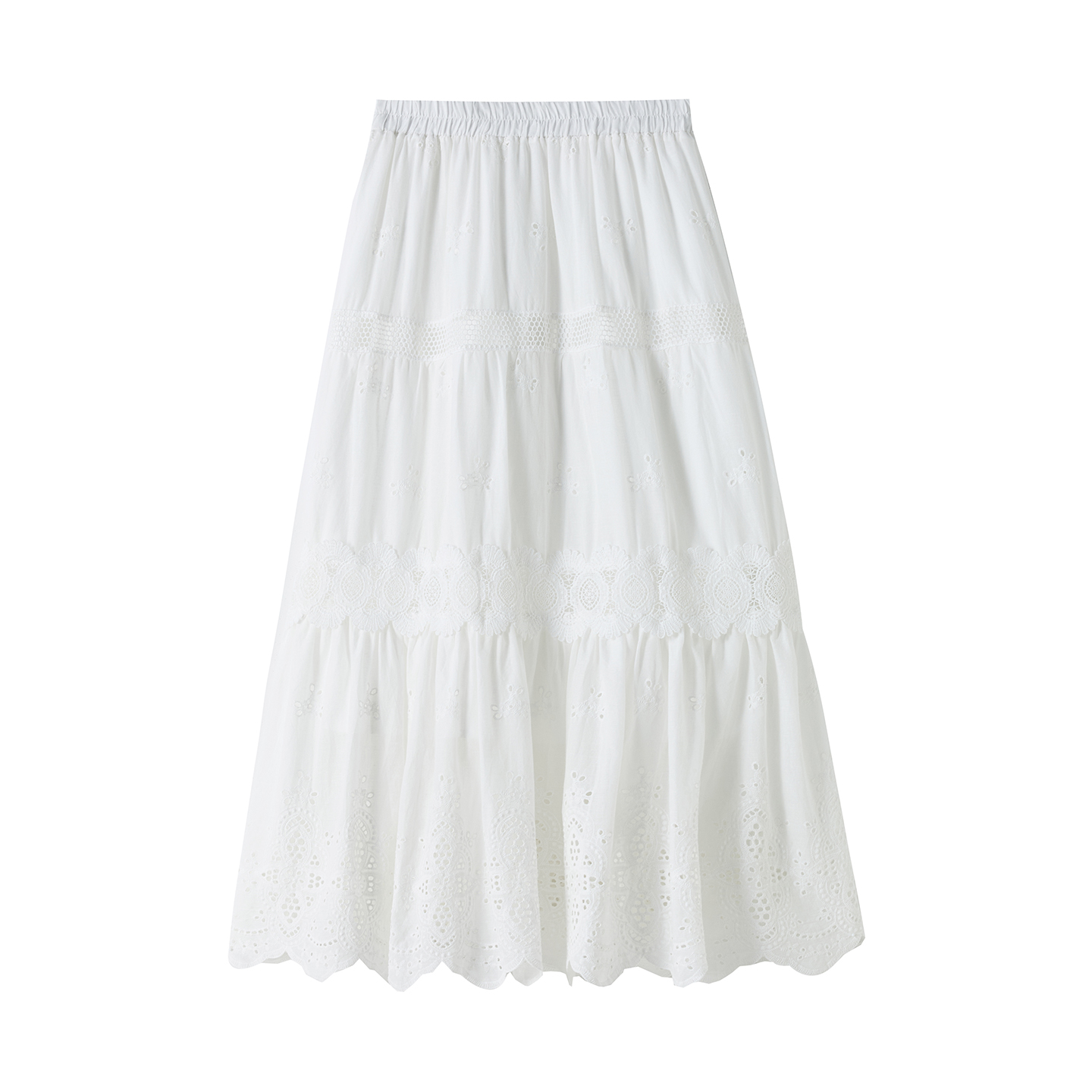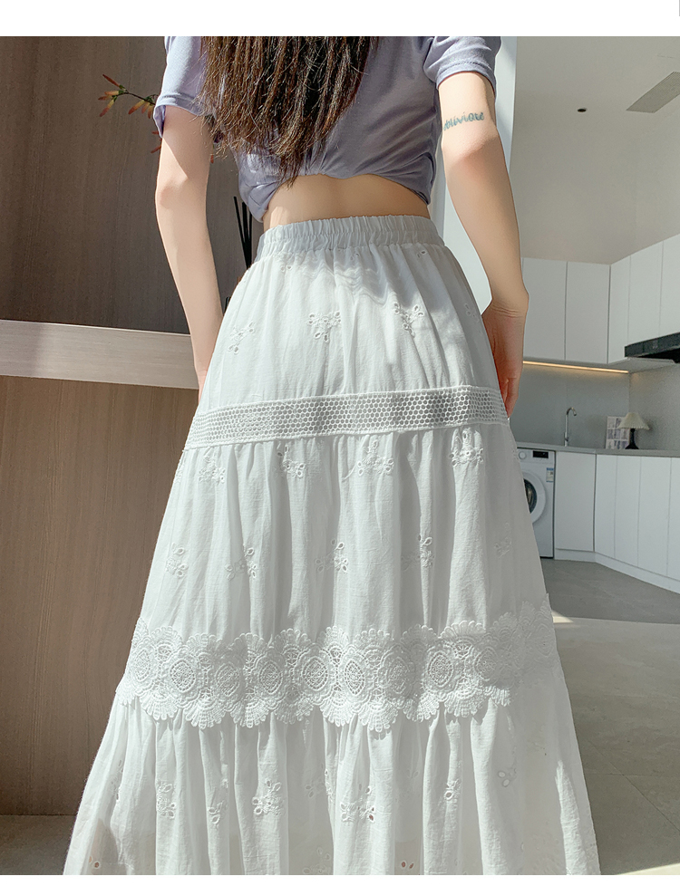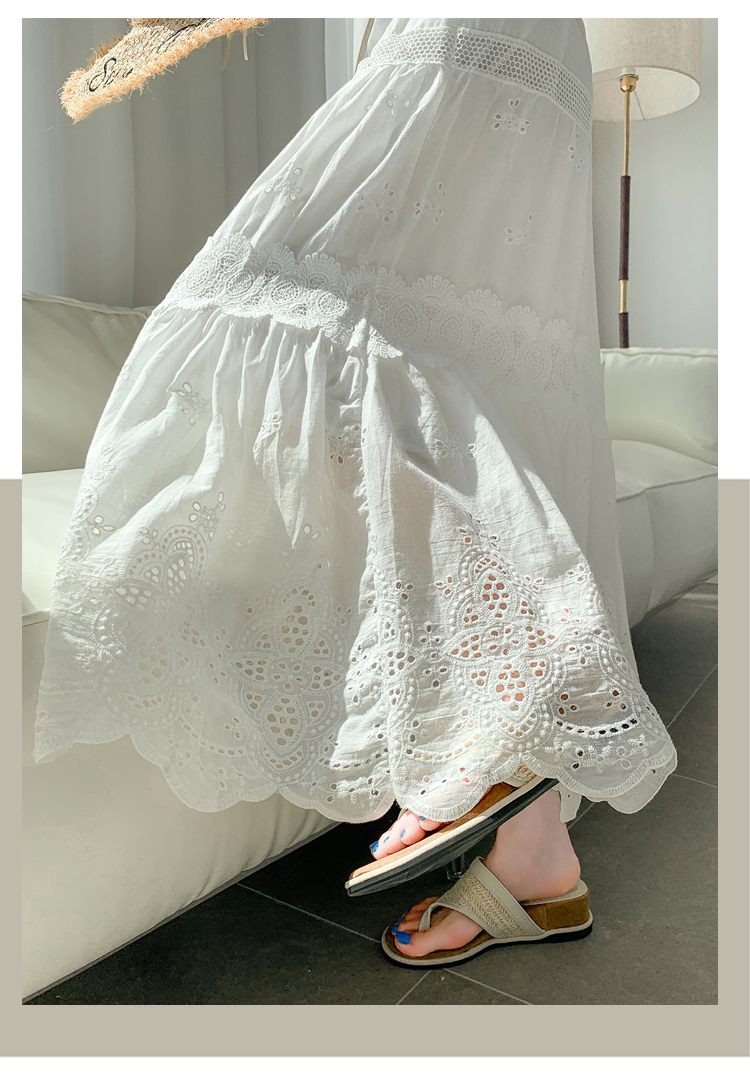 RY3580# 实拍白色蕾丝花边百褶蛋糕半身裙女夏季镂空垂感长裙a字大摆伞裙