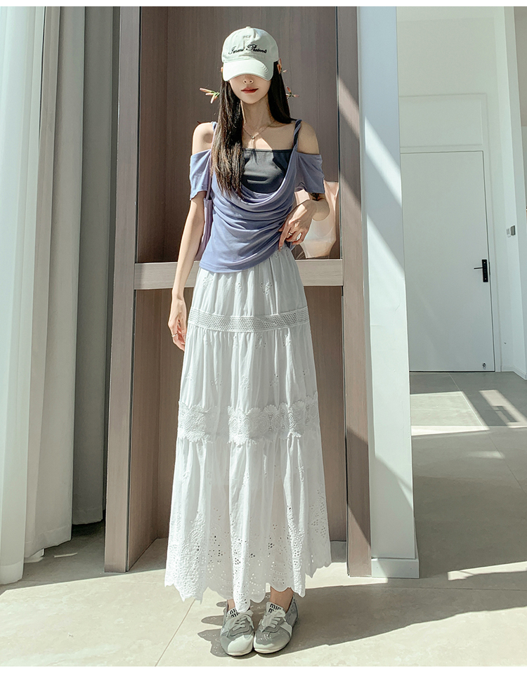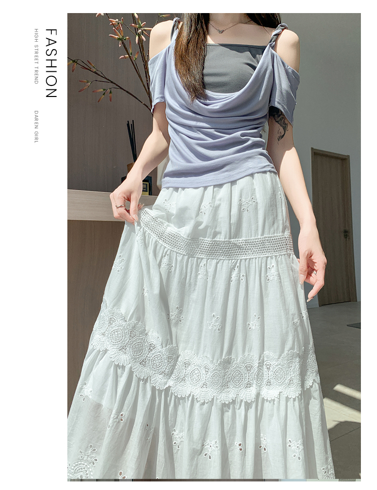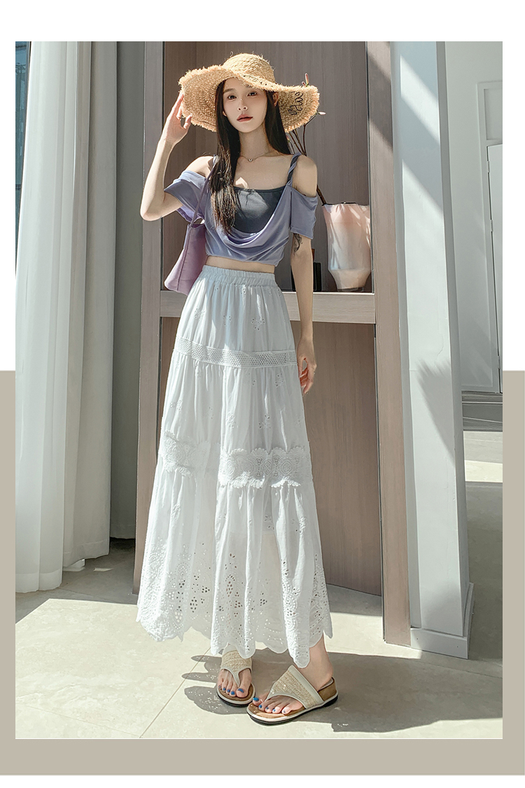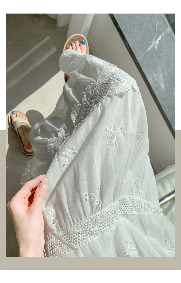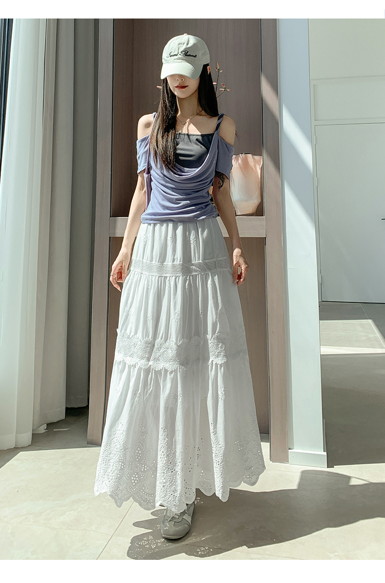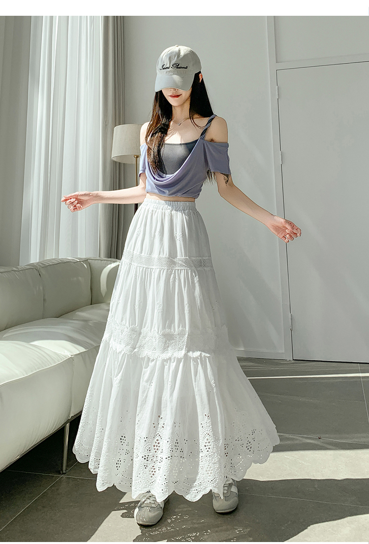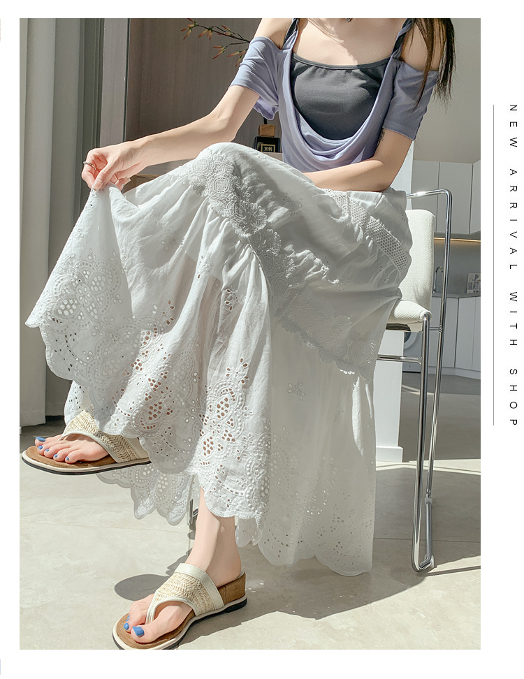 RY3580# 实拍白色蕾丝花边百褶蛋糕半身裙女夏季镂空垂感长裙a字大摆伞裙