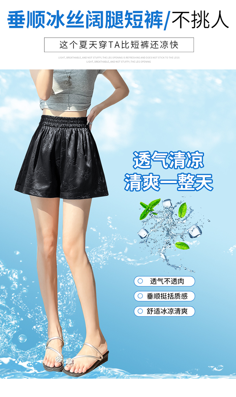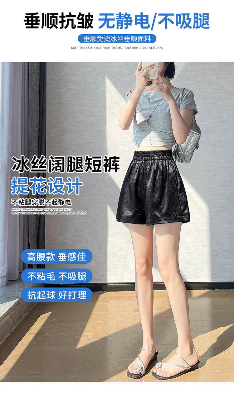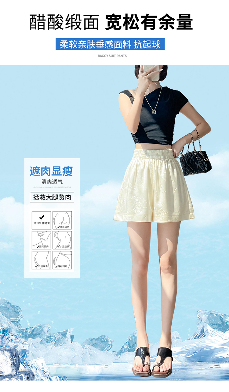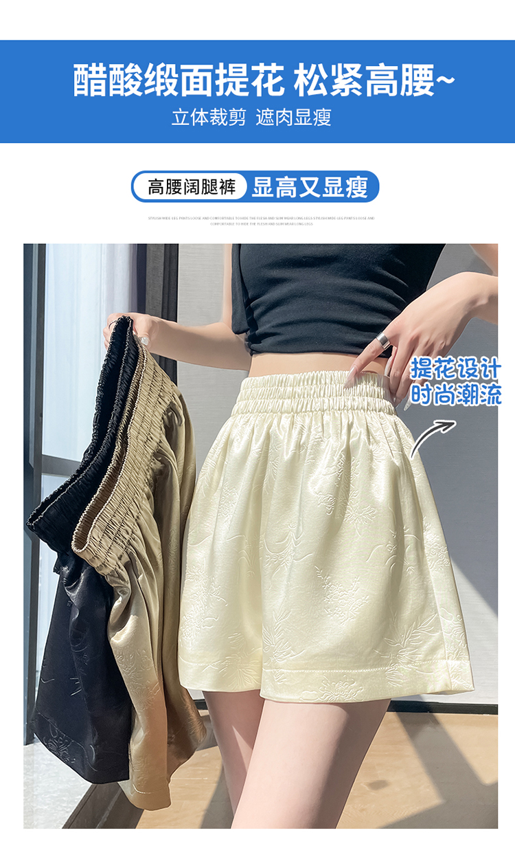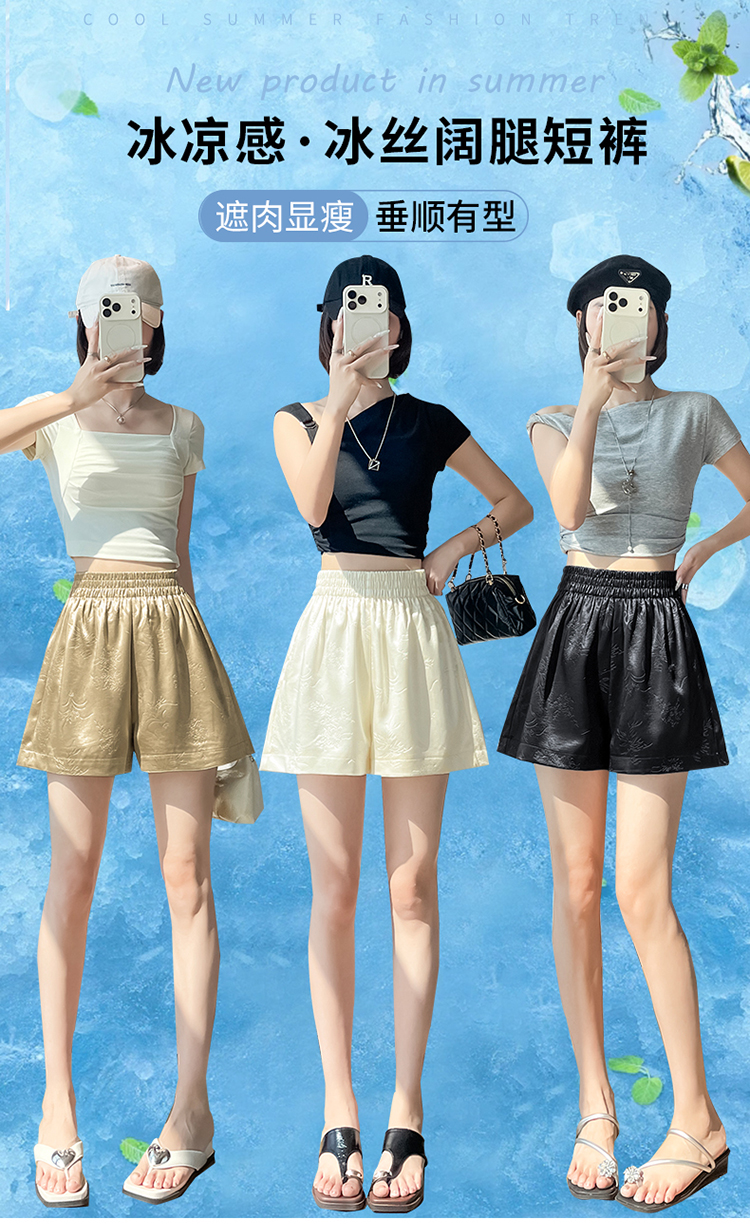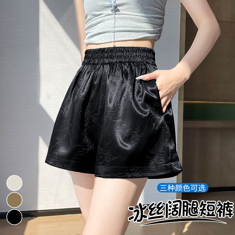 RY3600# 冰丝醋酸缎面阔腿短裤女夏松紧高腰a字裤小个子宽松薄款休闲中裤