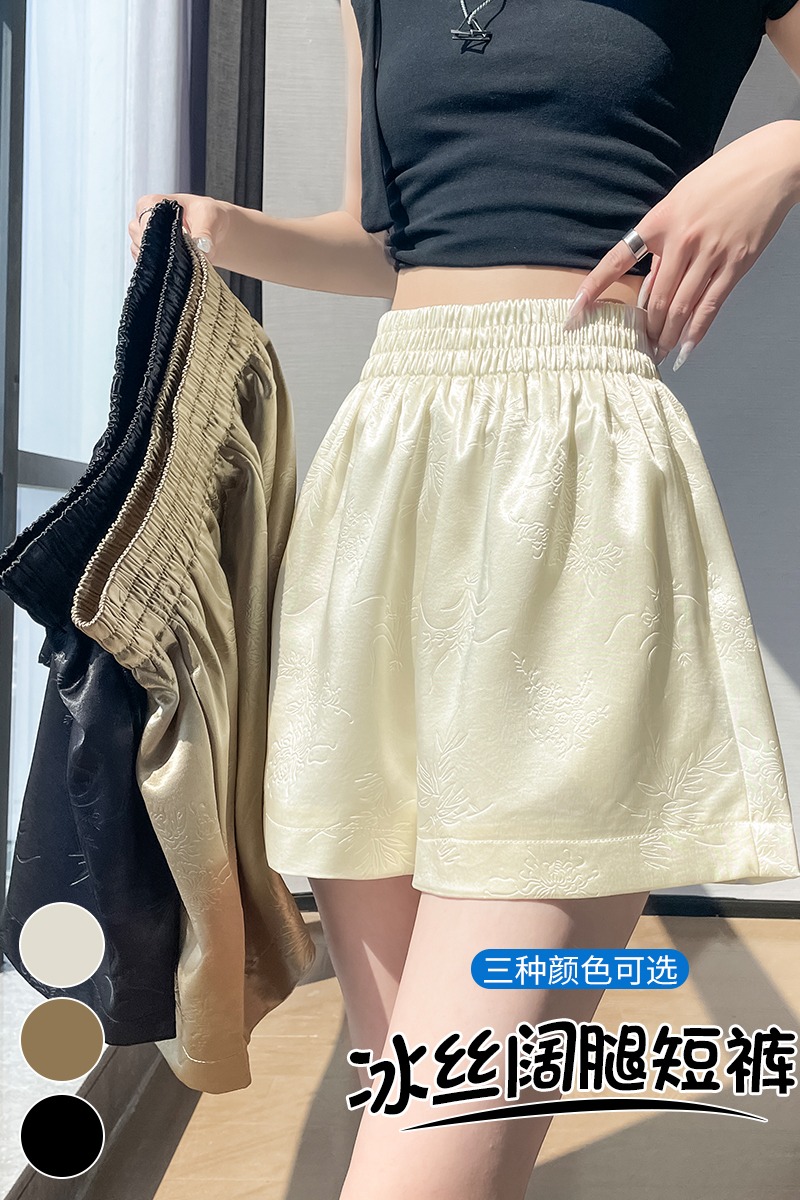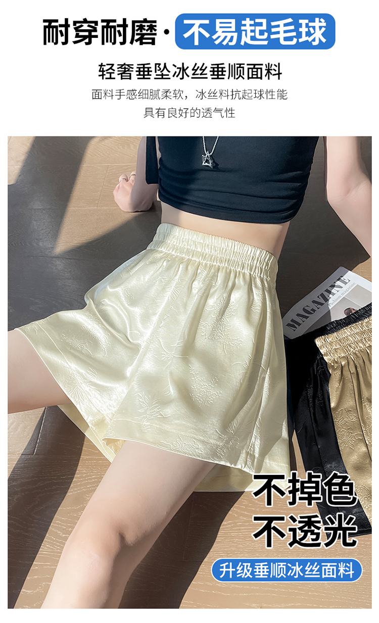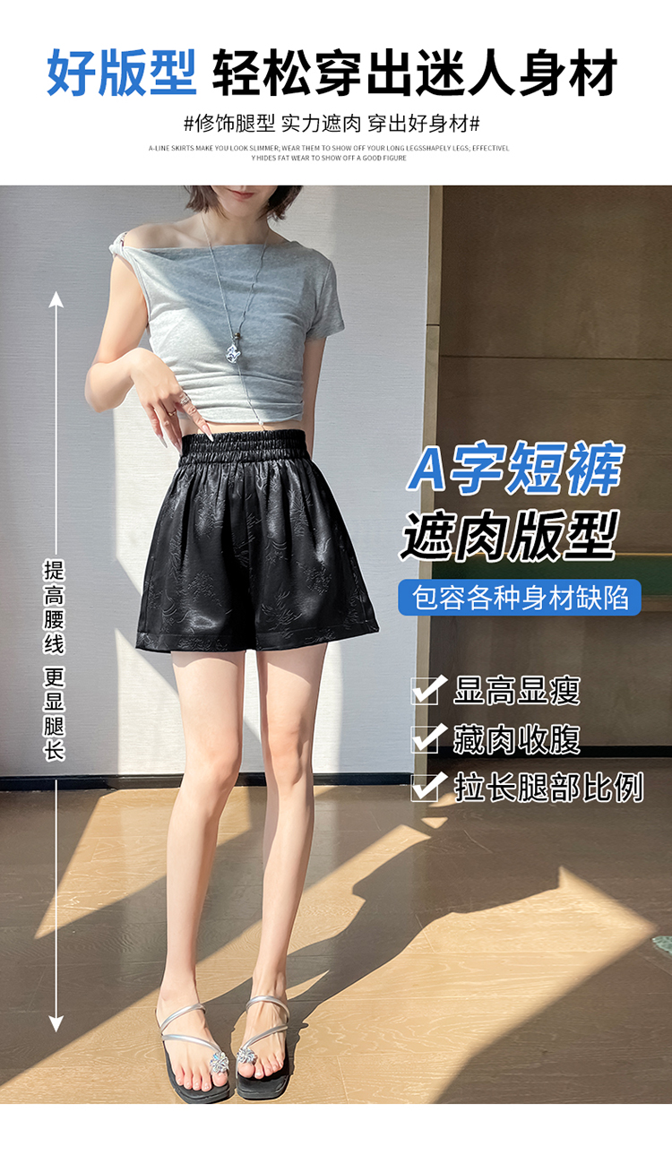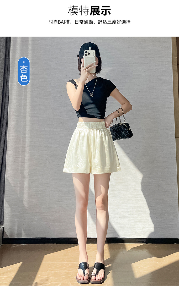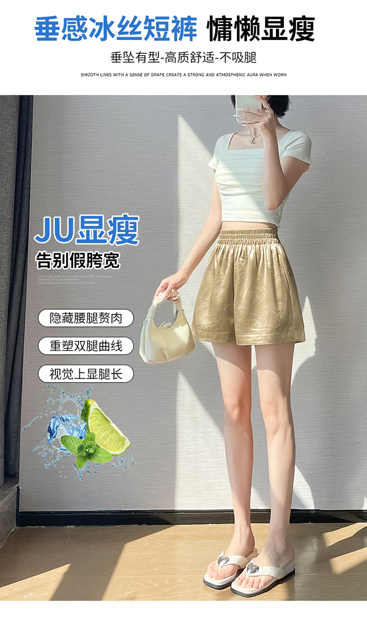 RY3600# 冰丝醋酸缎面阔腿短裤女夏松紧高腰a字裤小个子宽松薄款休闲中裤