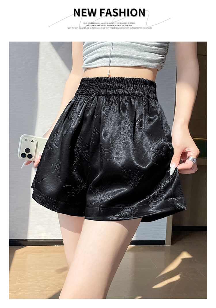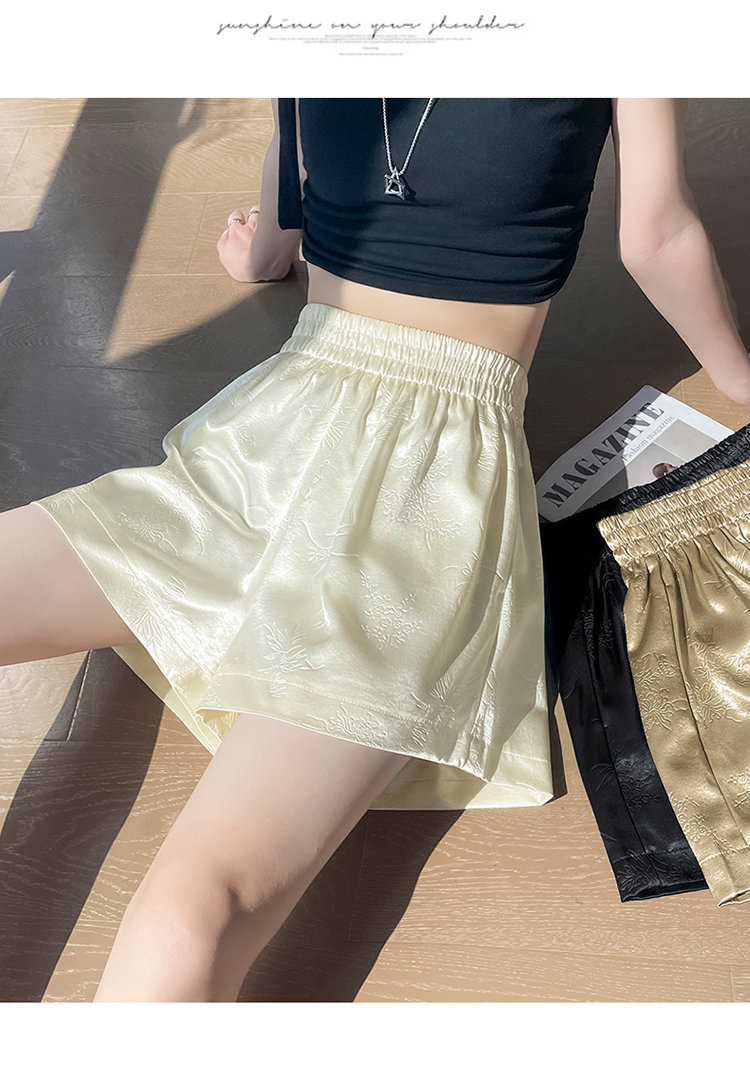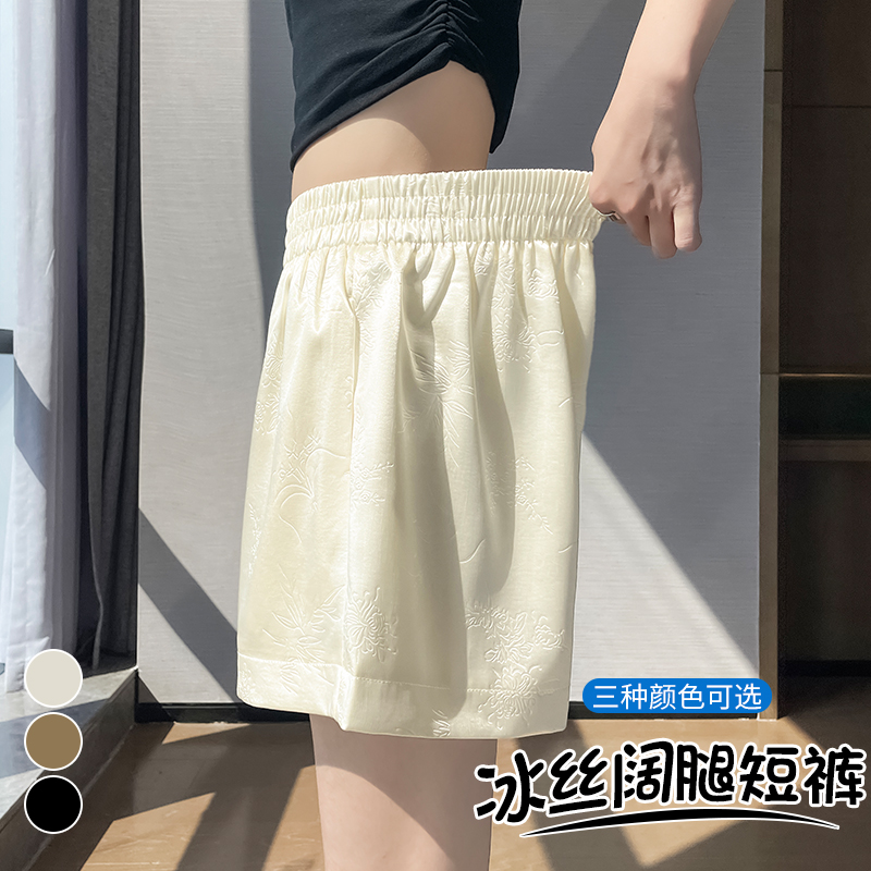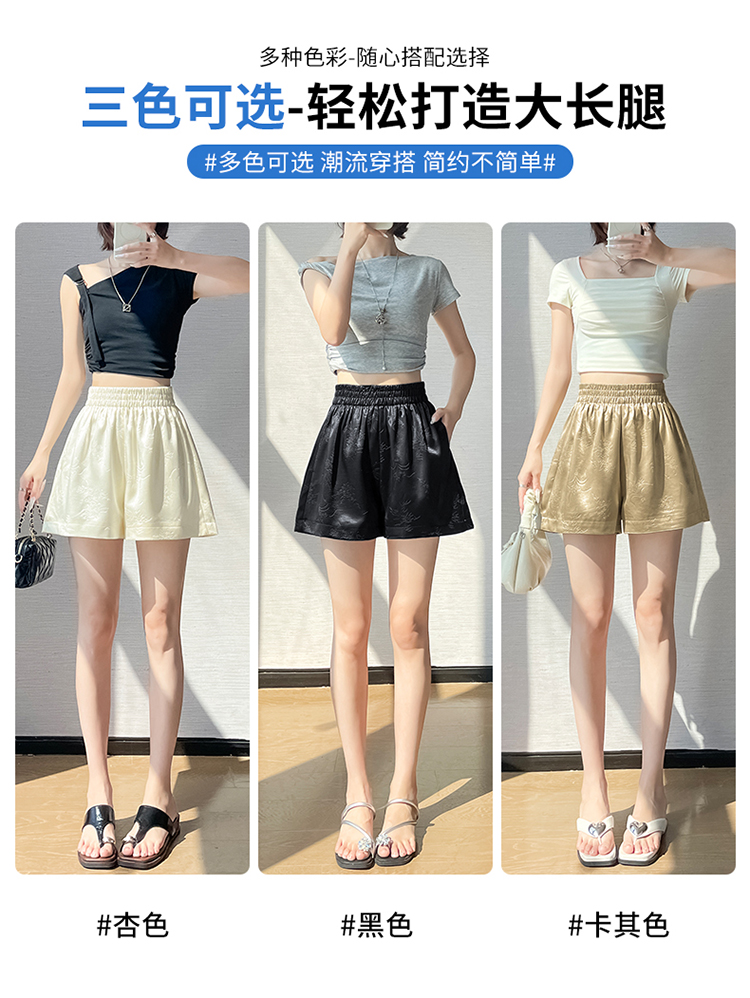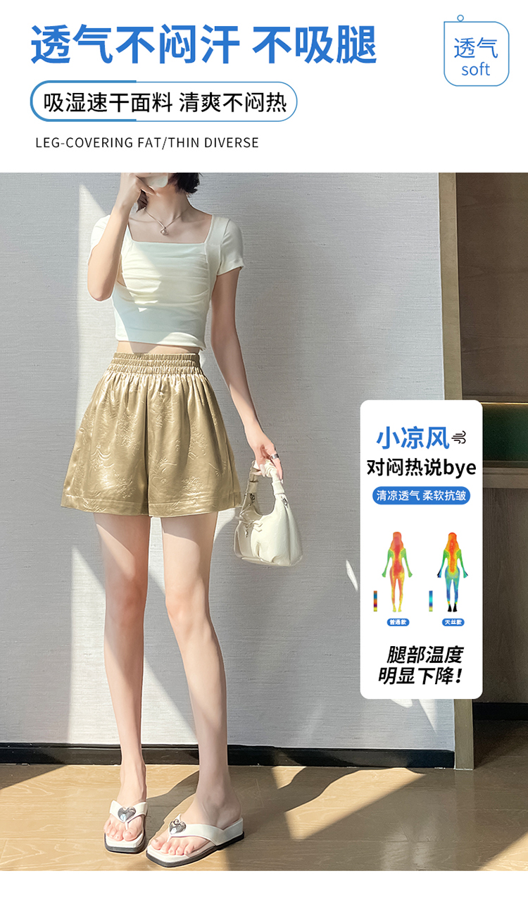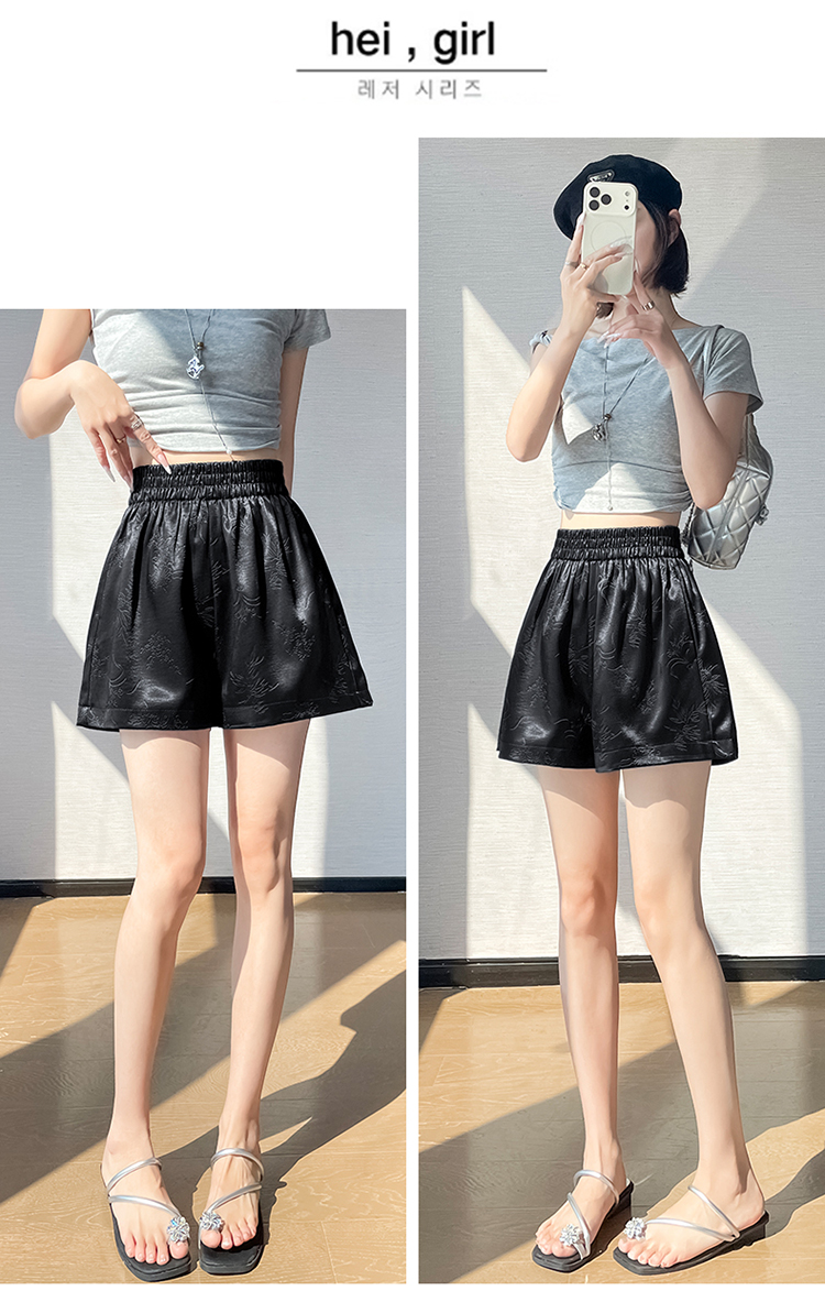 RY3600# 冰丝醋酸缎面阔腿短裤女夏松紧高腰a字裤小个子宽松薄款休闲中裤