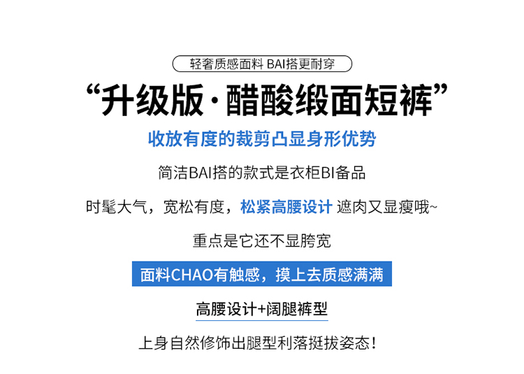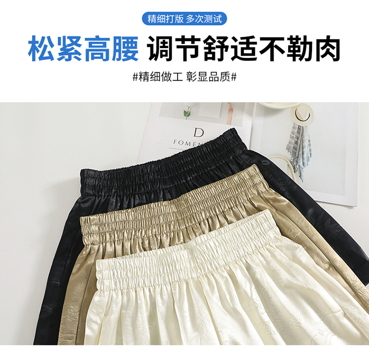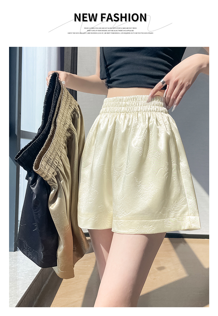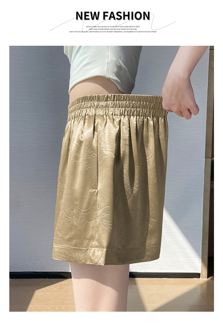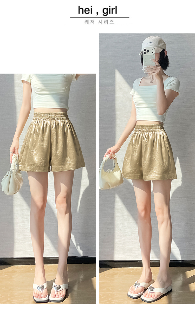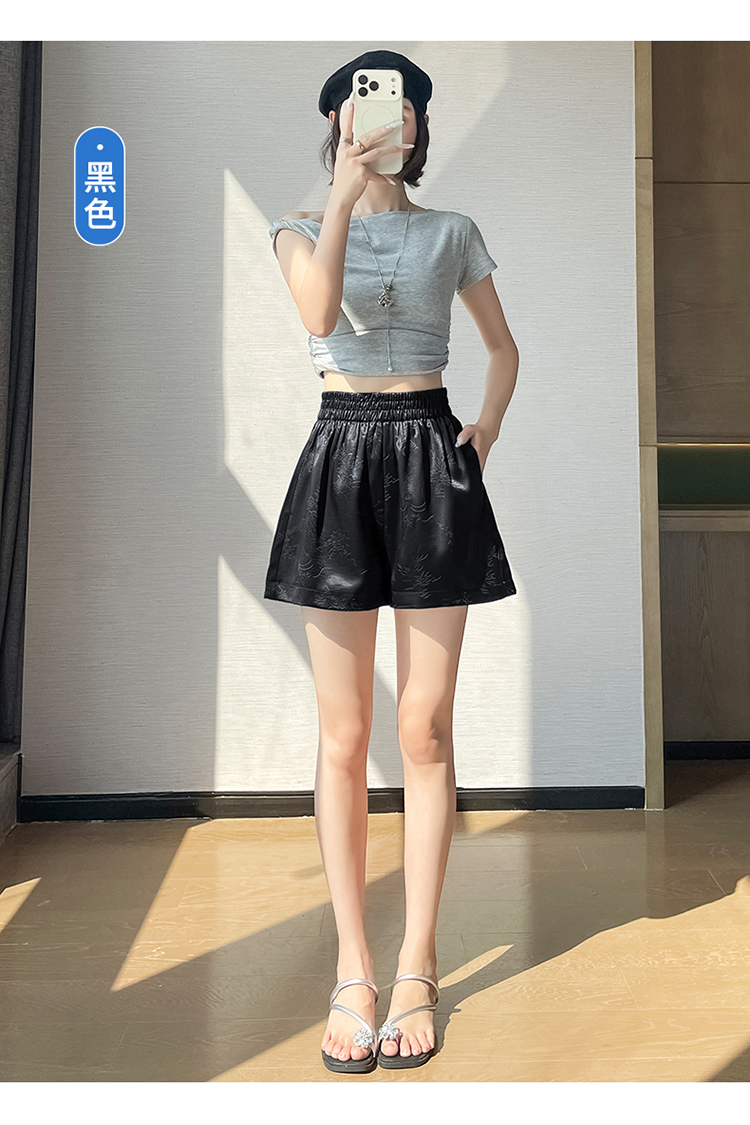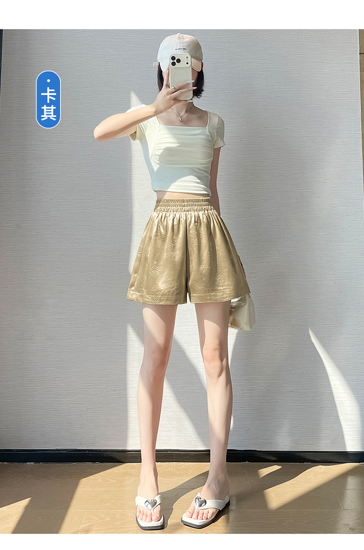RY3600# 冰丝醋酸缎面阔腿短裤女夏松紧高腰a字裤小个子宽松薄款休闲中裤