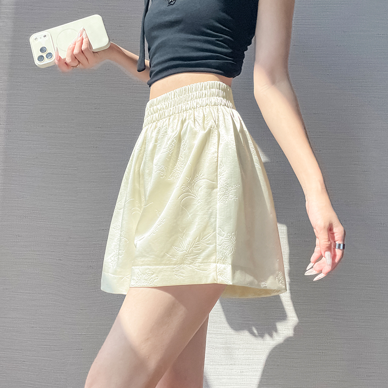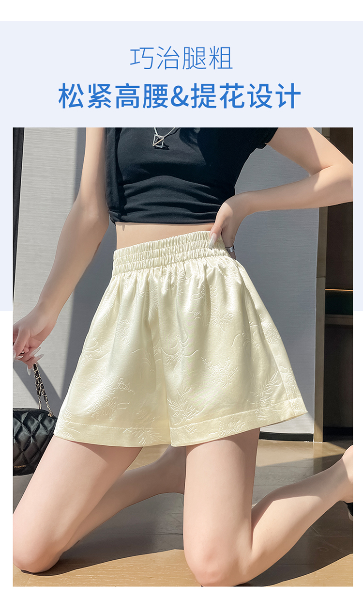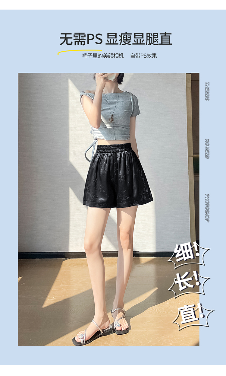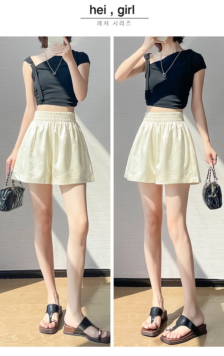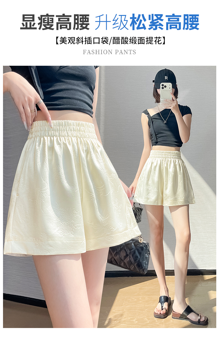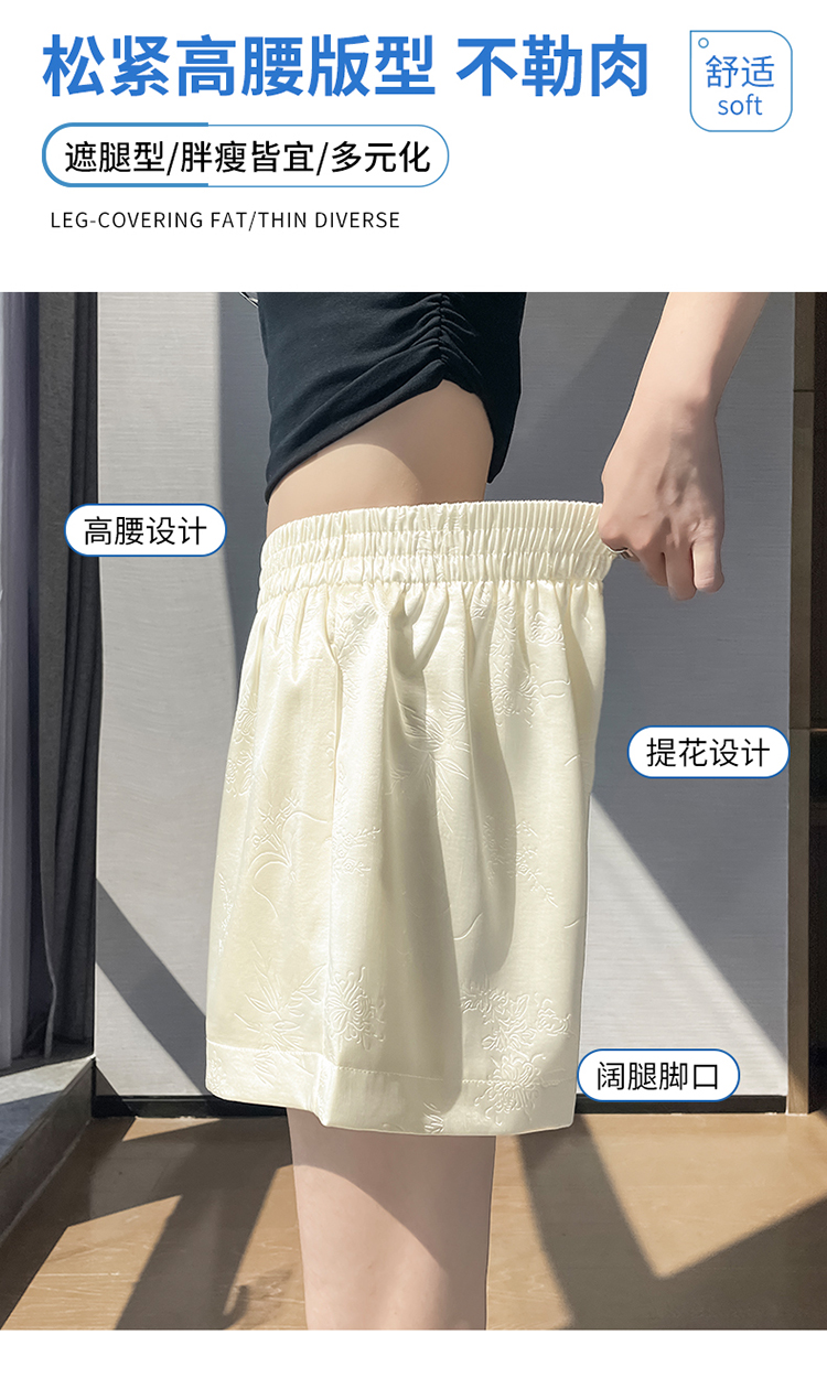RY3600# 冰丝醋酸缎面阔腿短裤女夏松紧高腰a字裤小个子宽松薄款休闲中裤
