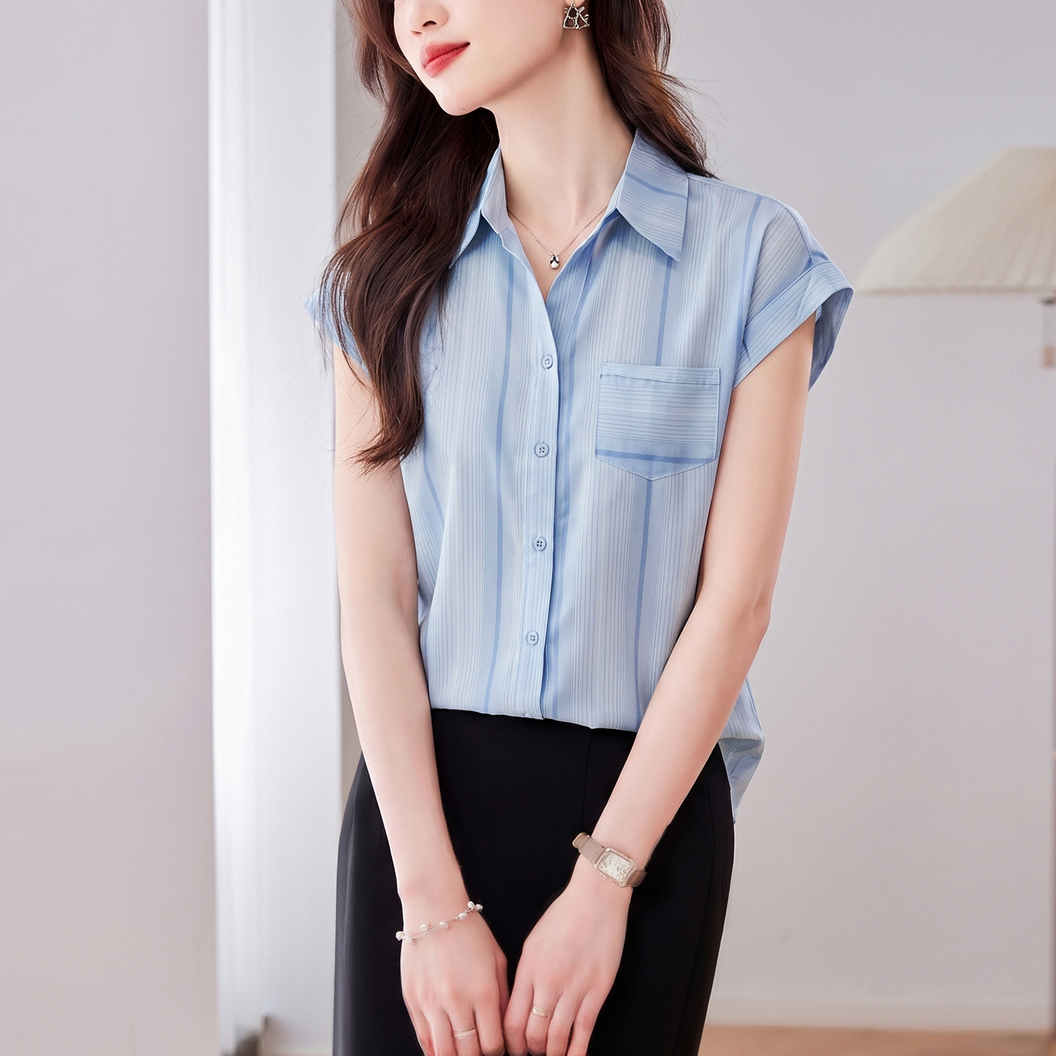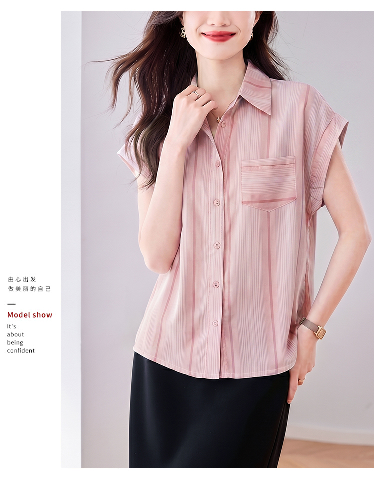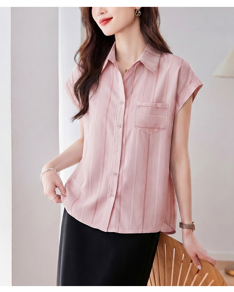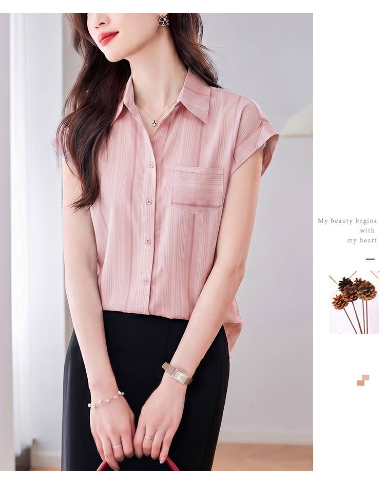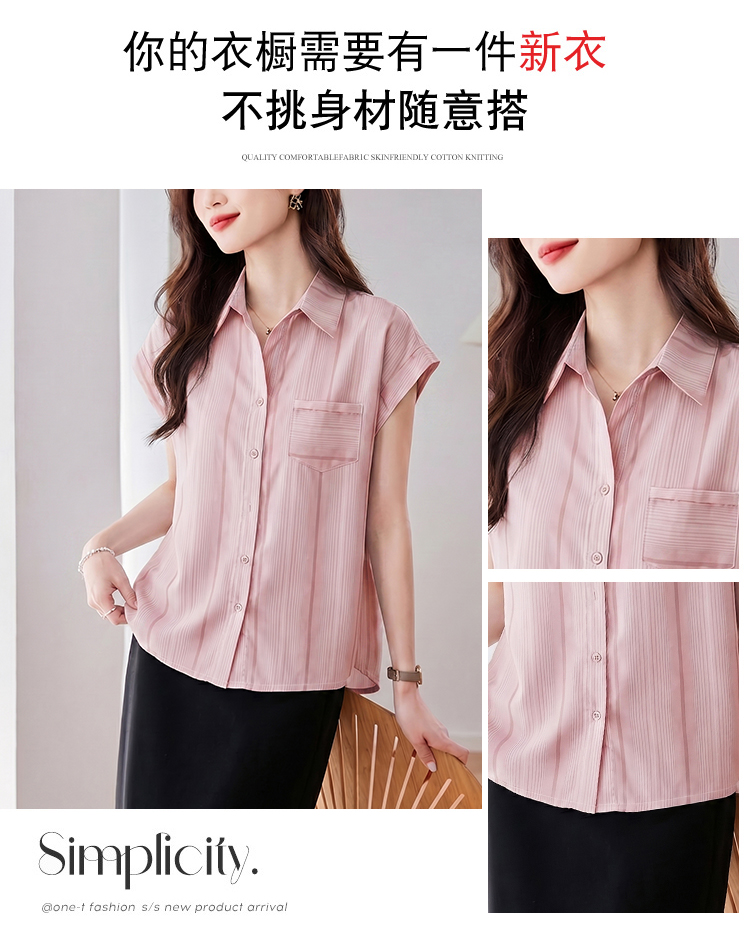 RY3613# 实拍港风复古短袖衬衫女20246夏季新款宽松显瘦上衣