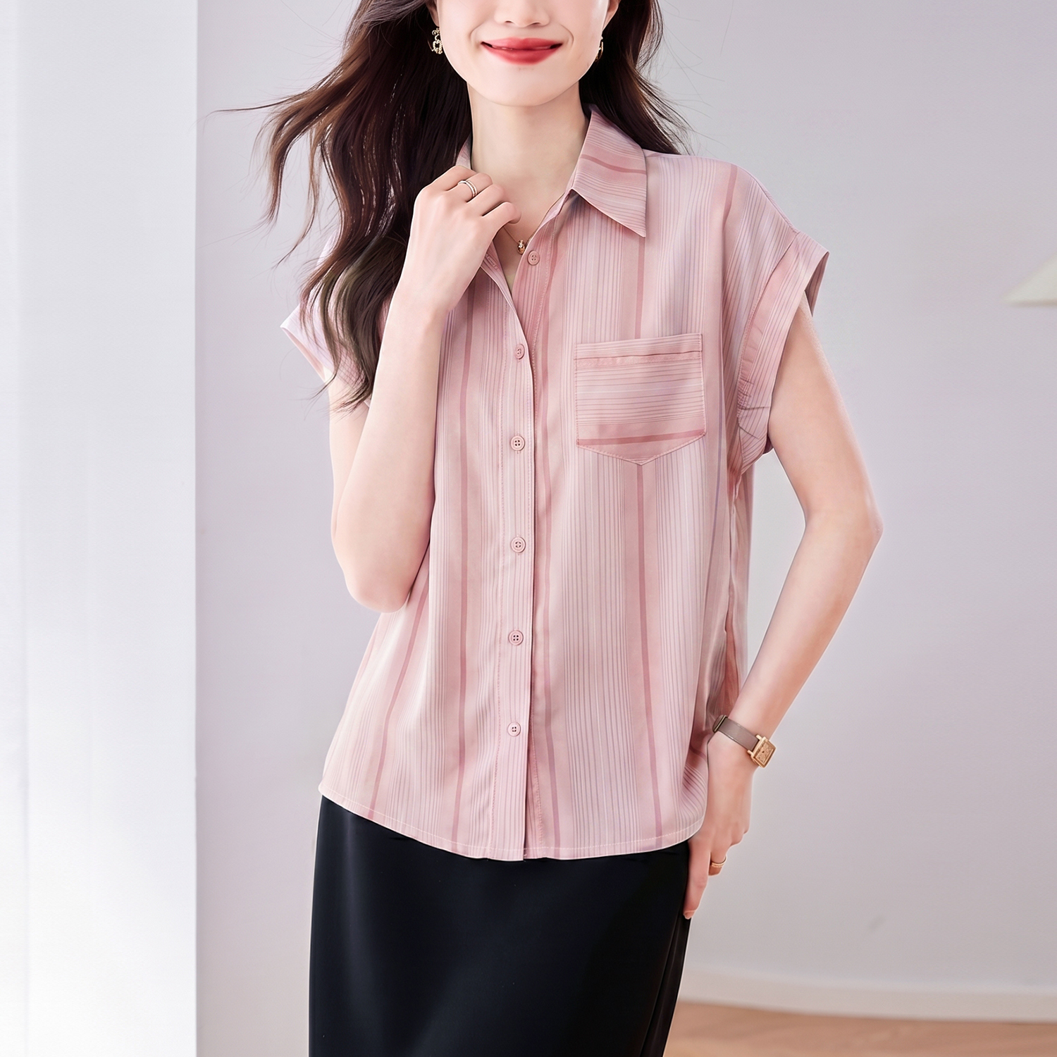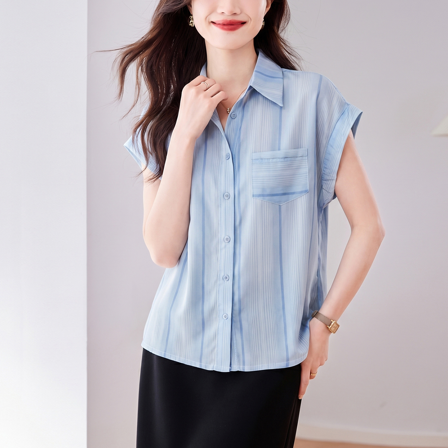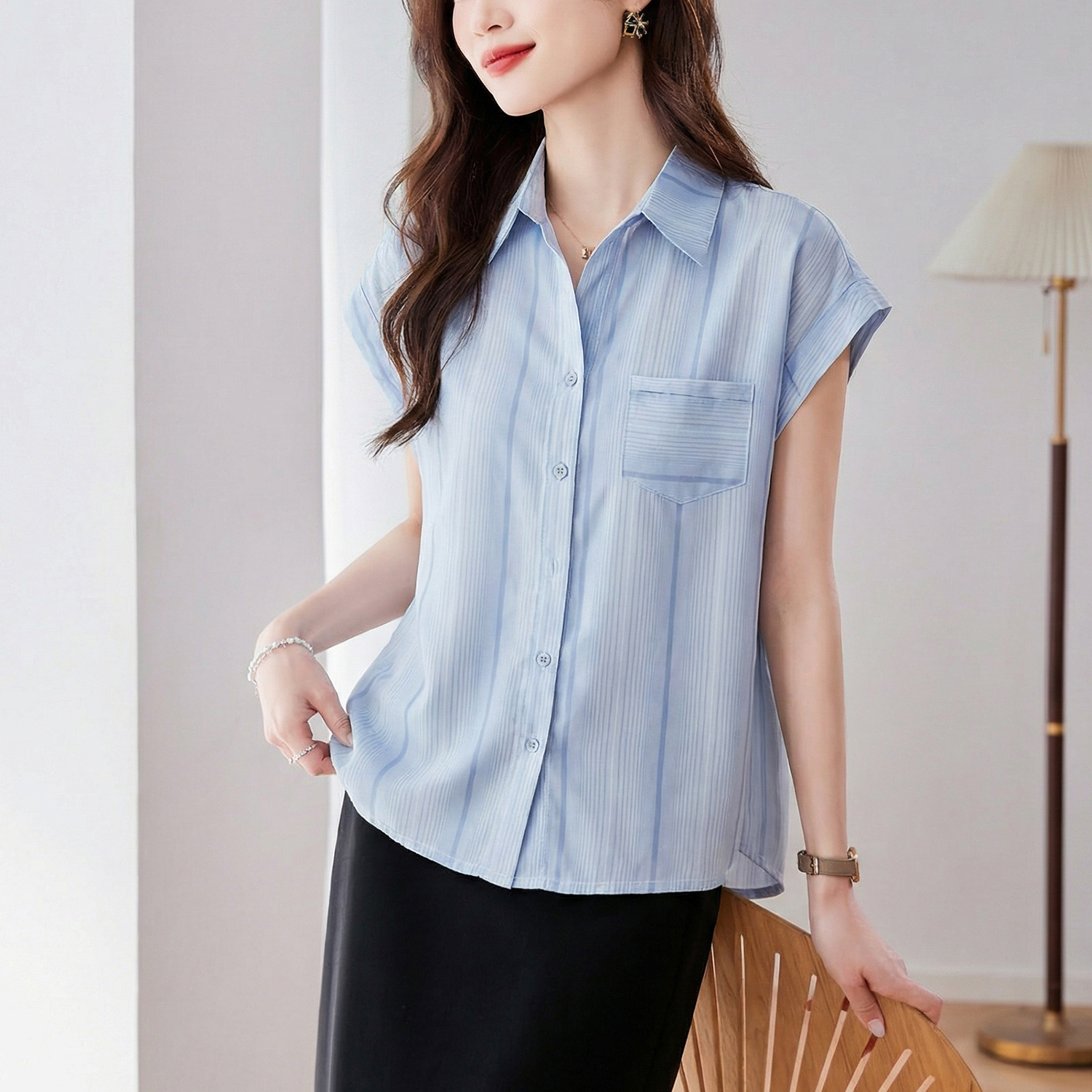 RY3613# 实拍港风复古短袖衬衫女20246夏季新款宽松显瘦上衣