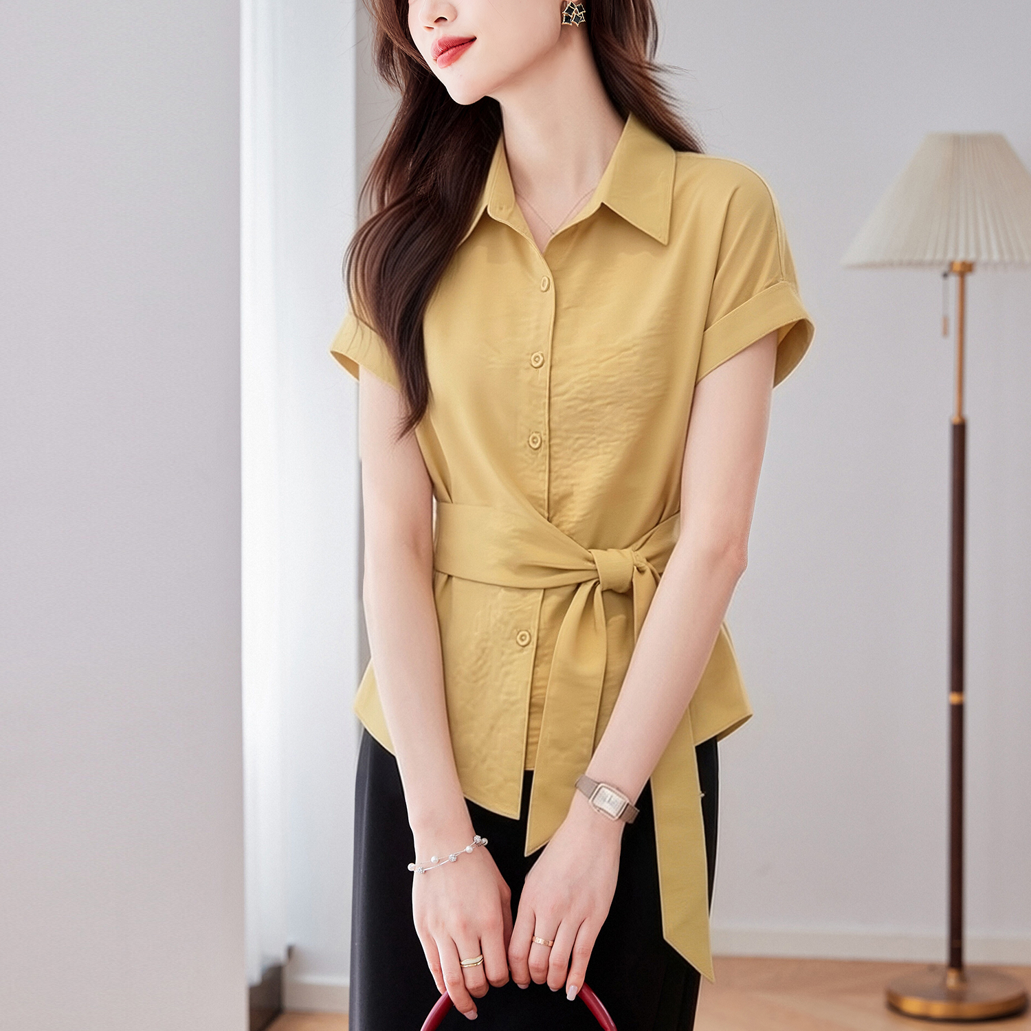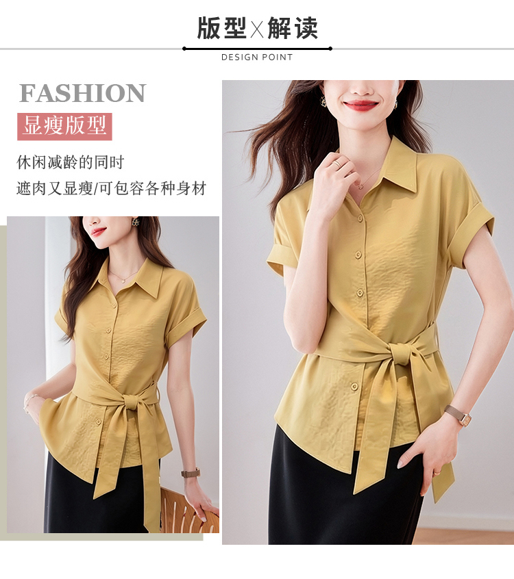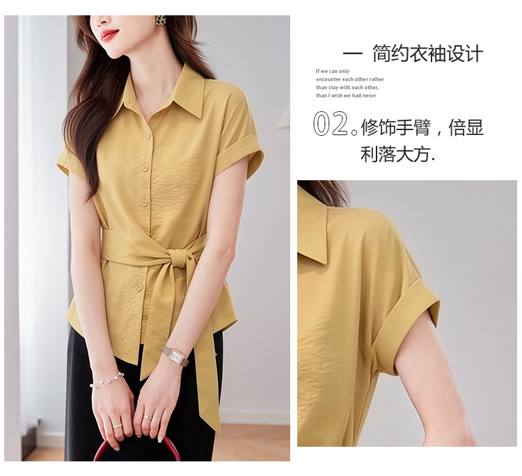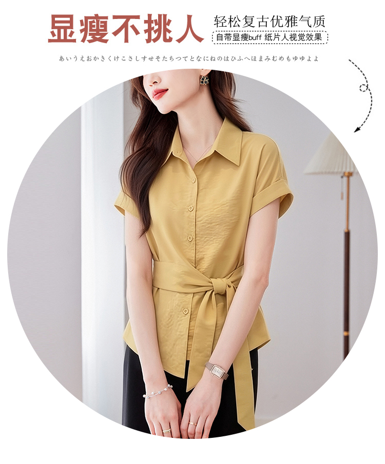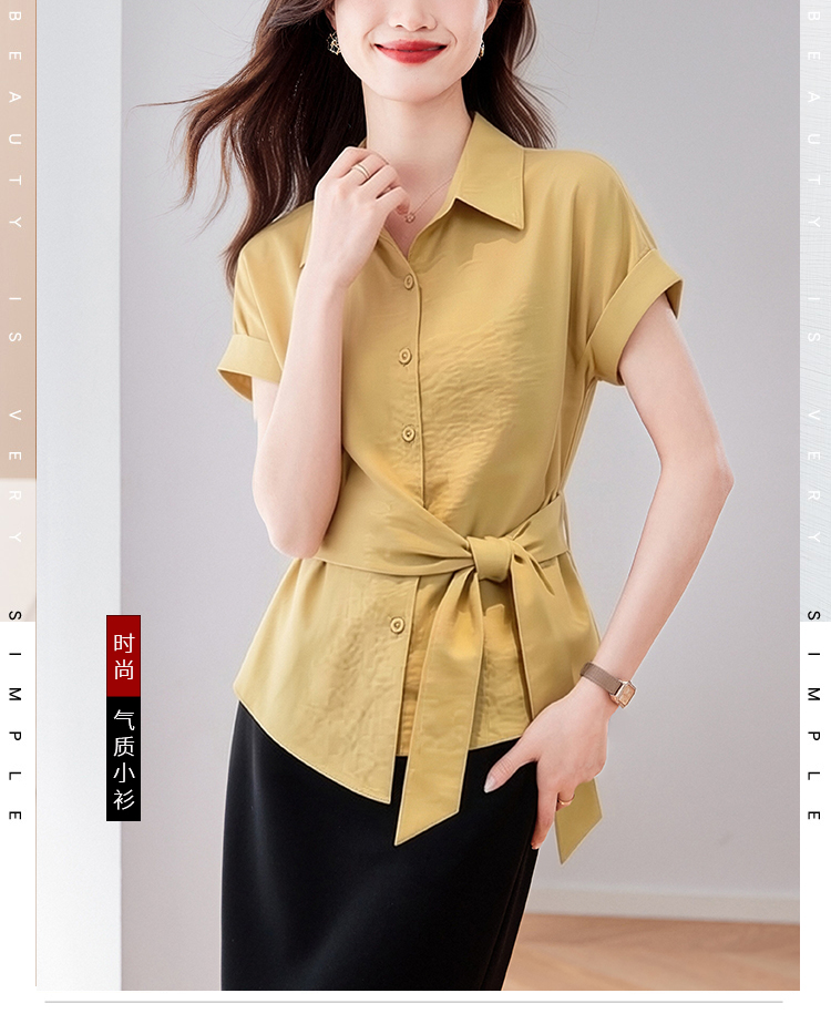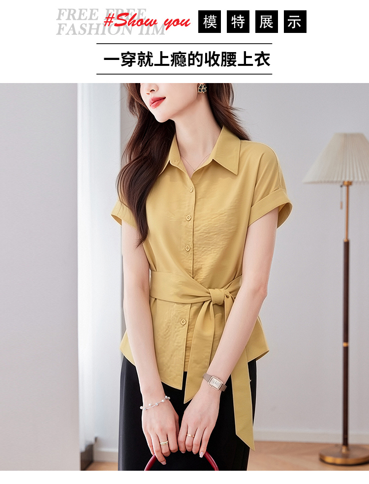 RY3614# 实拍独特漂亮气质黄色收腰短袖衬衫2026夏季新款休闲百搭显瘦上衣