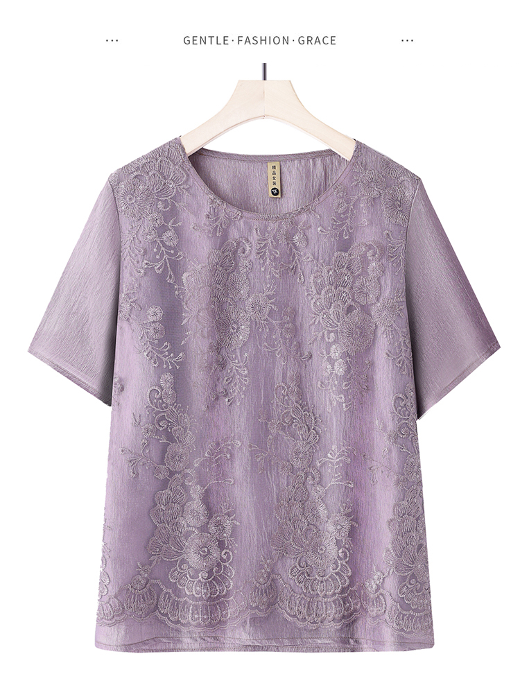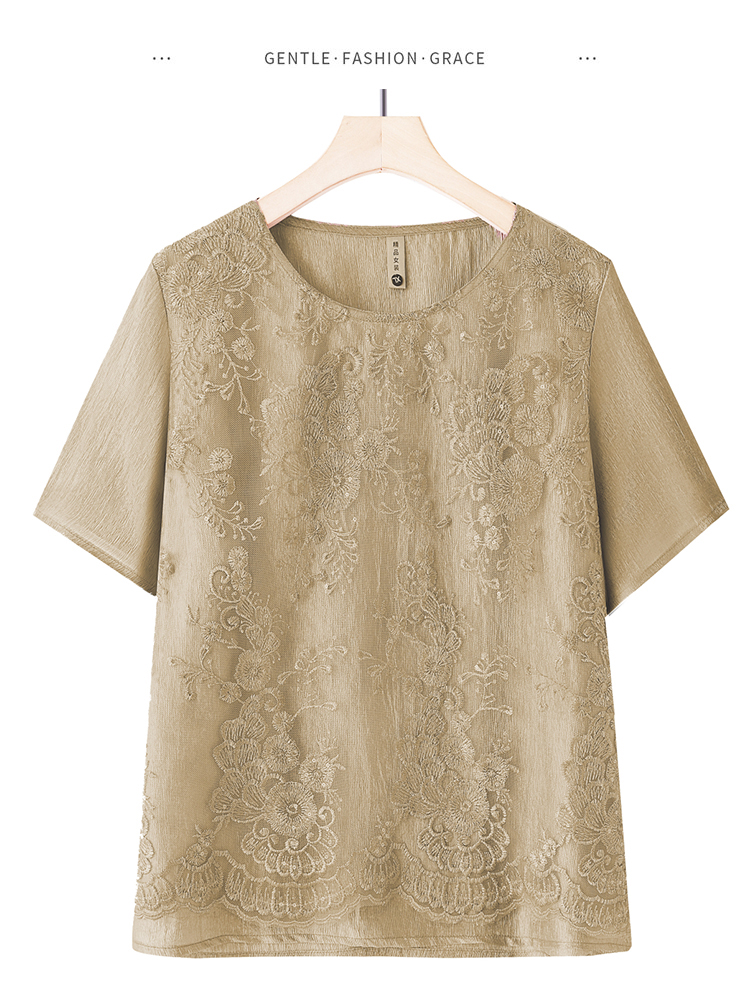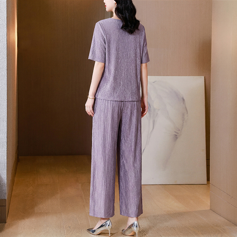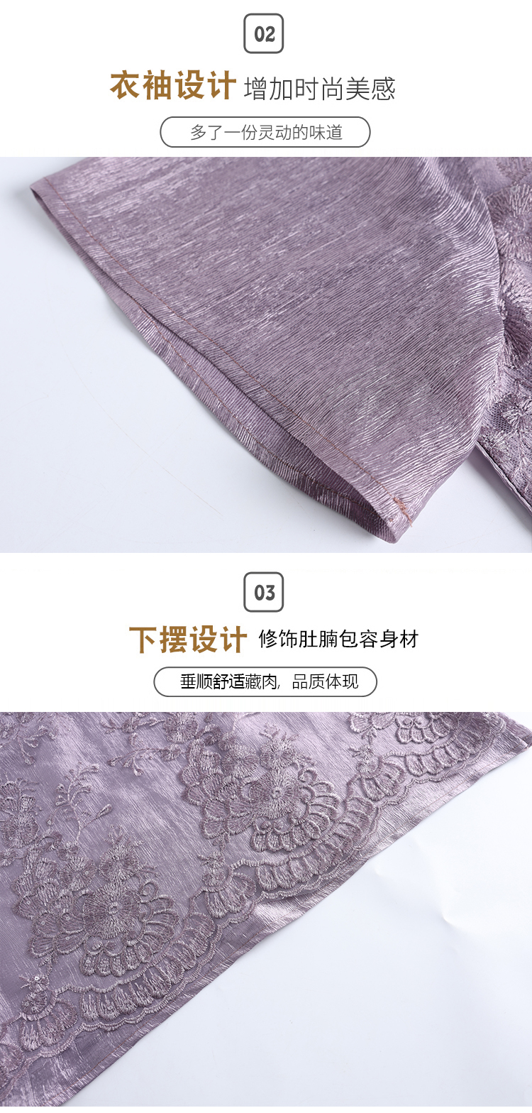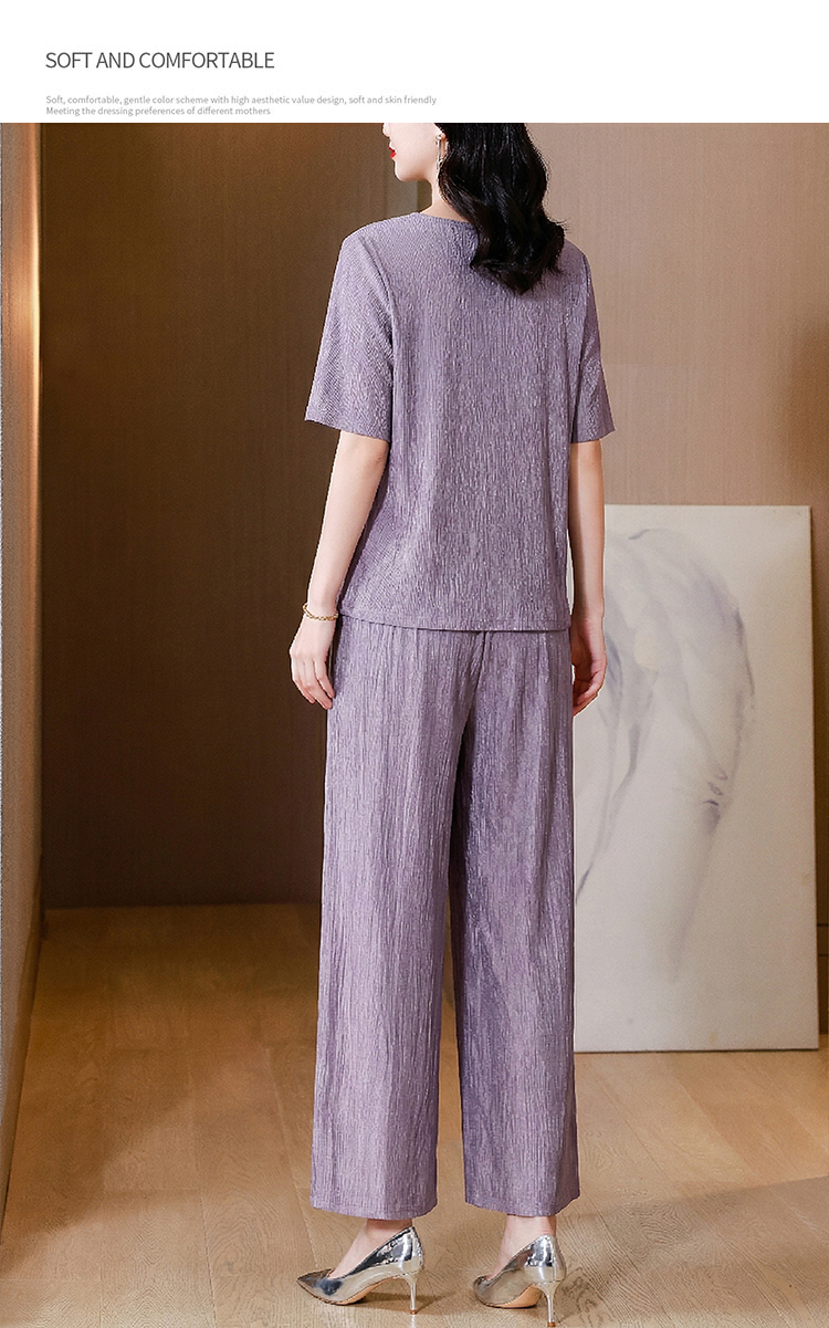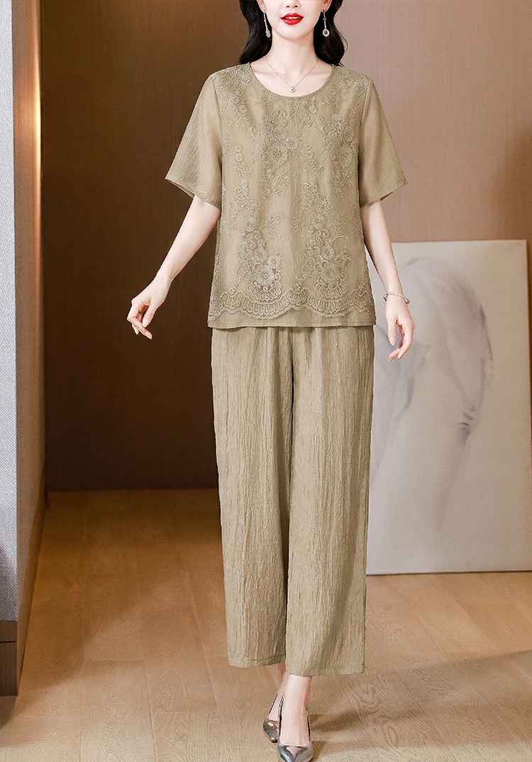 RY3618# 中年妈妈装2026夏装薄款套装阔太太洋气蕾丝拼接短袖阔腿裤两件套
