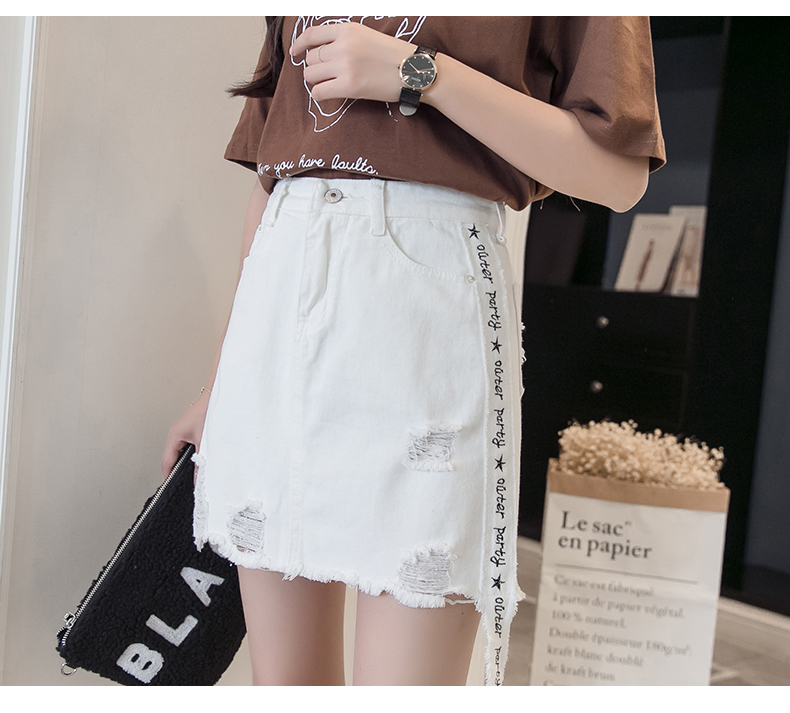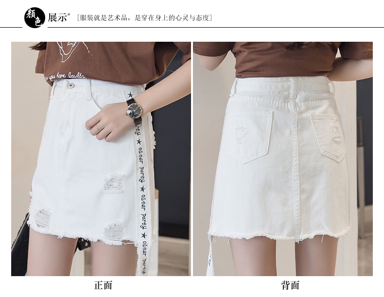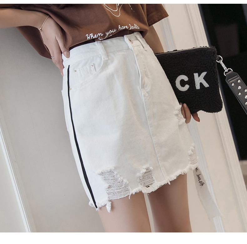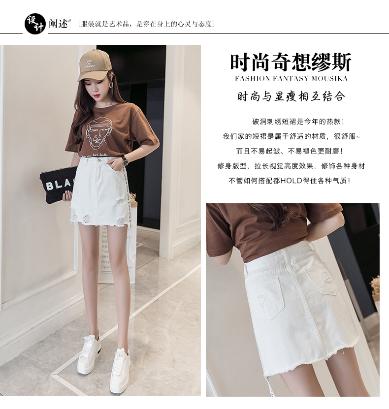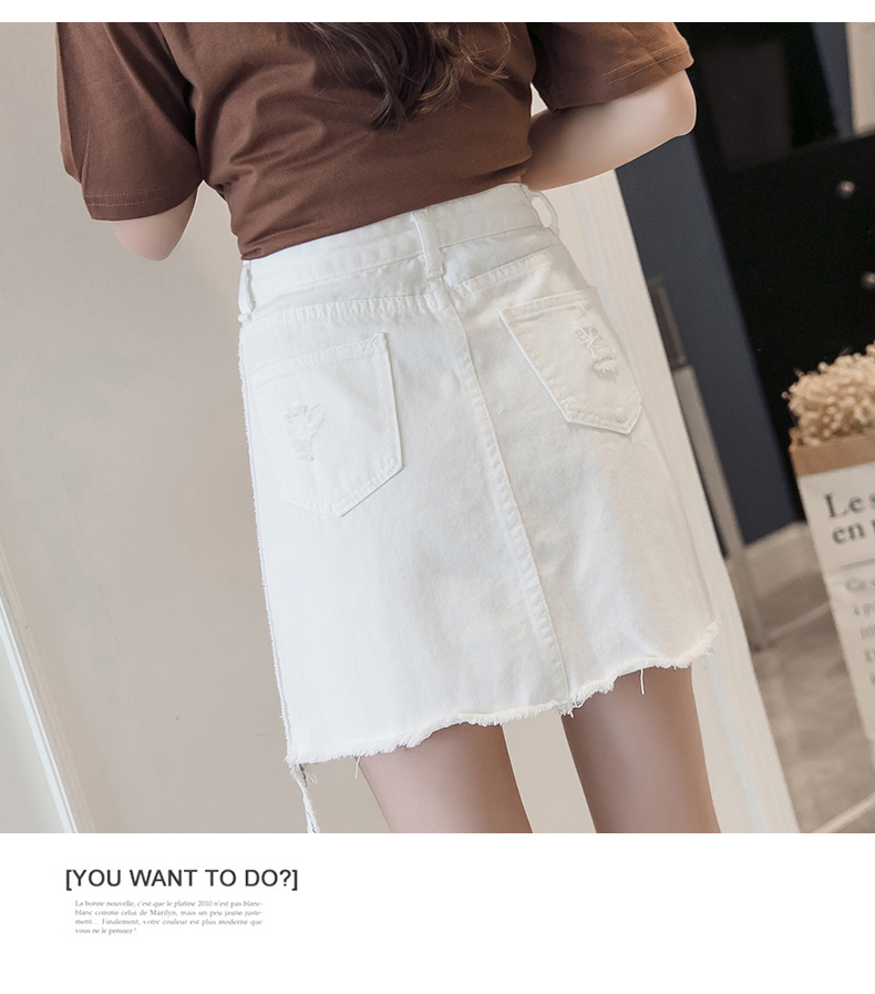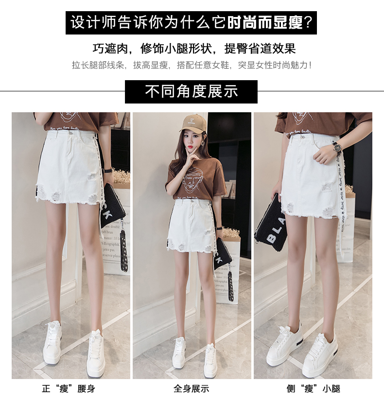 RY3697# 实拍破洞牛仔半身裙女2026夏季韩版小个子高腰显瘦米白a字短裙ins