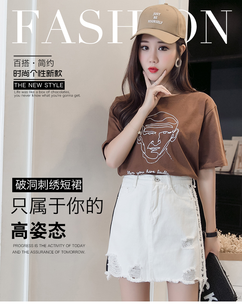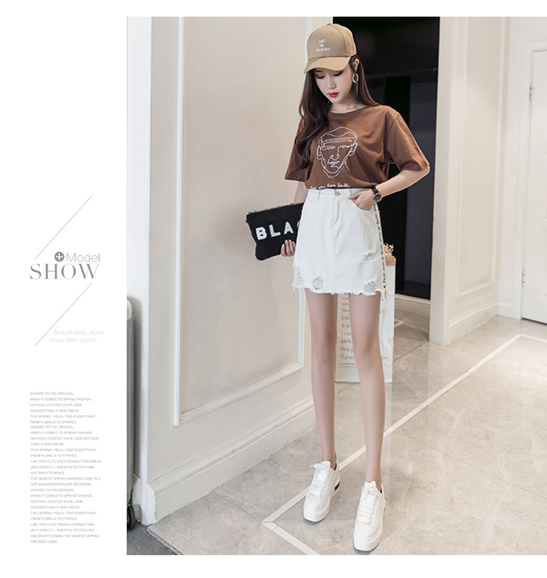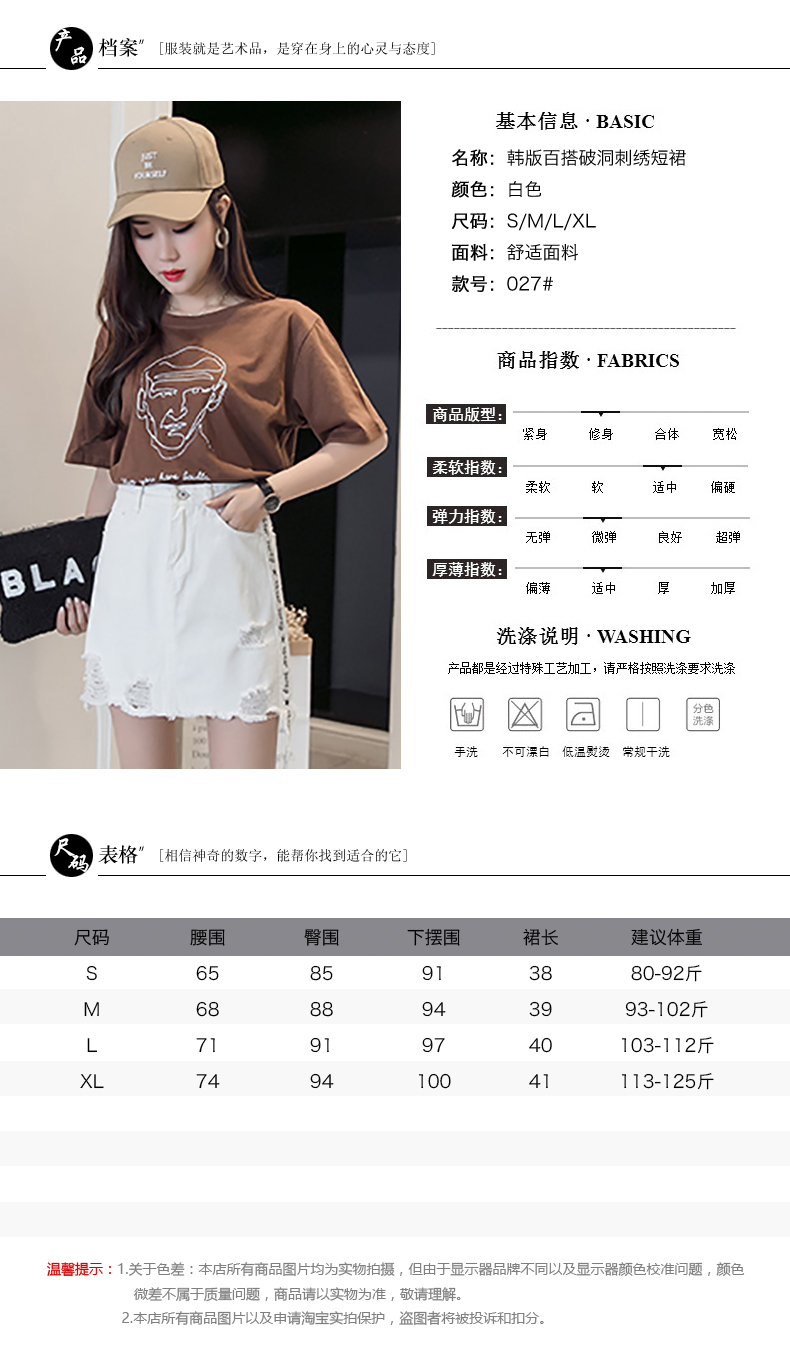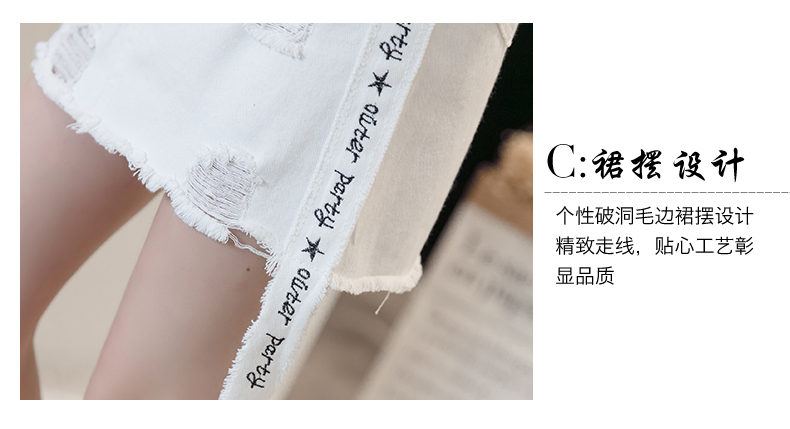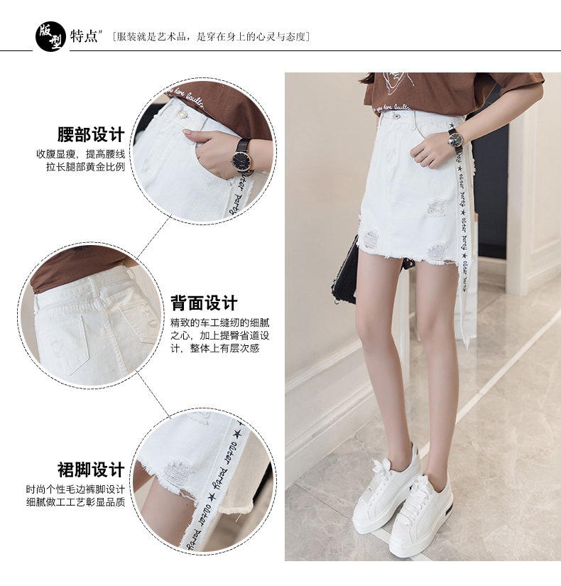 RY3697# 实拍破洞牛仔半身裙女2026夏季韩版小个子高腰显瘦米白a字短裙ins