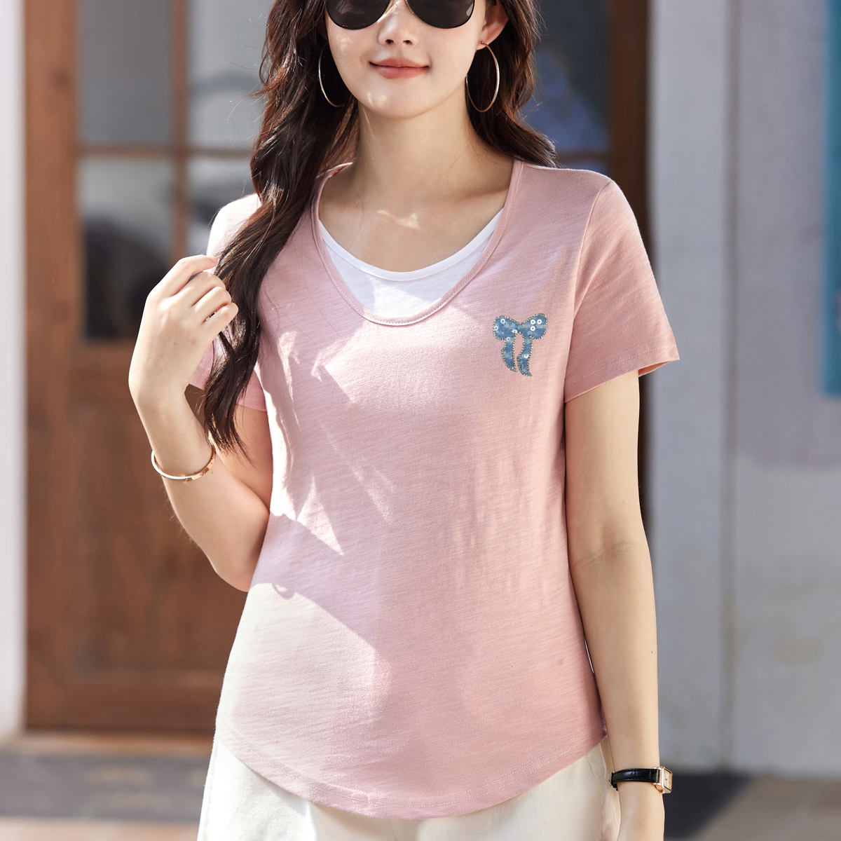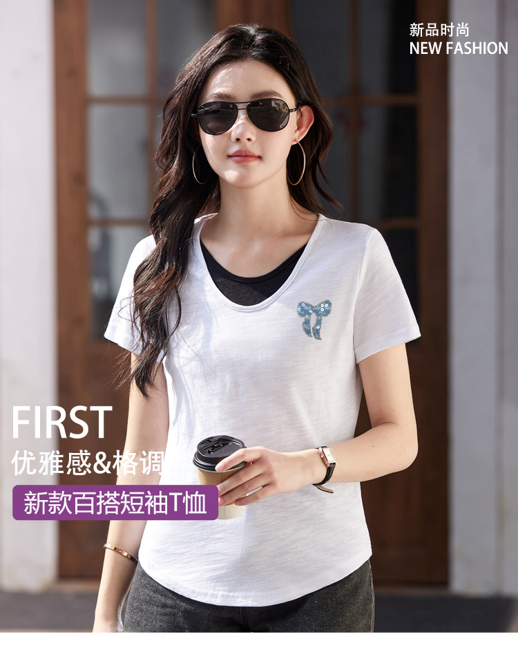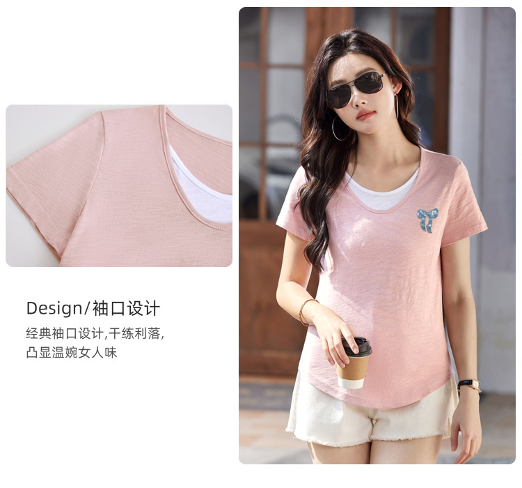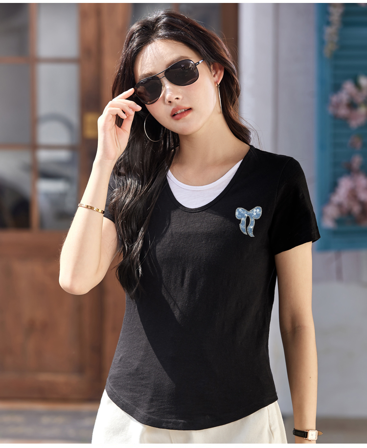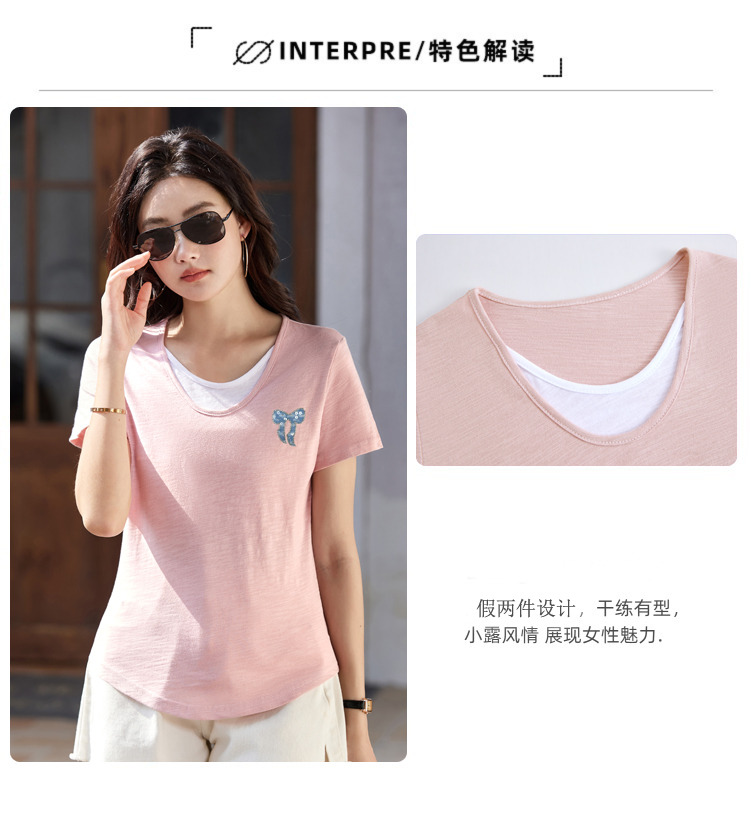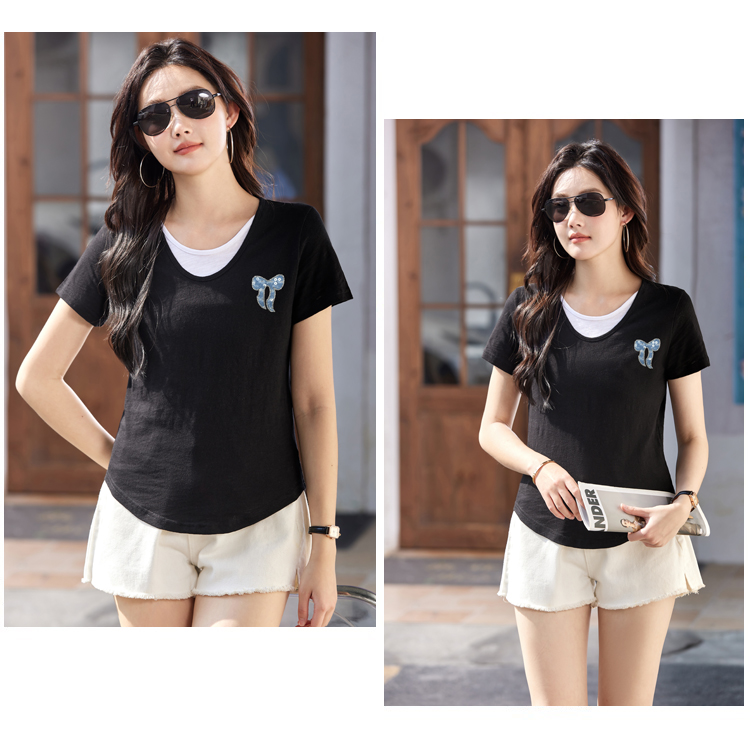 RY3712# 2026夏季新款设计感短袖t恤女黑色假两件半袖休闲女士纯棉上衣服