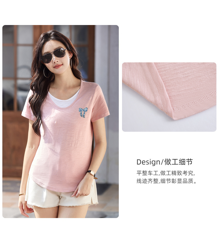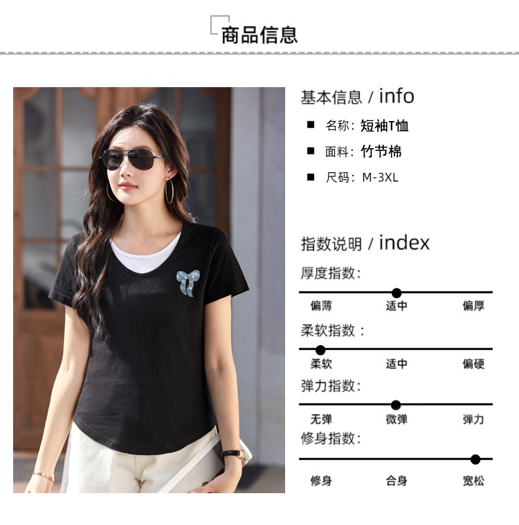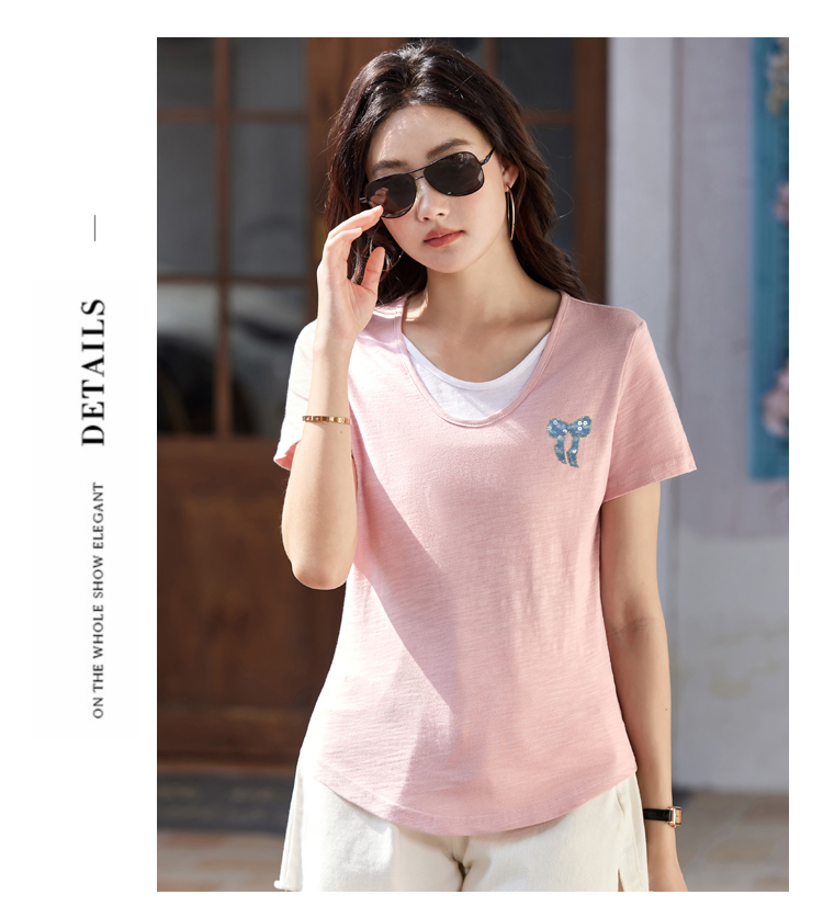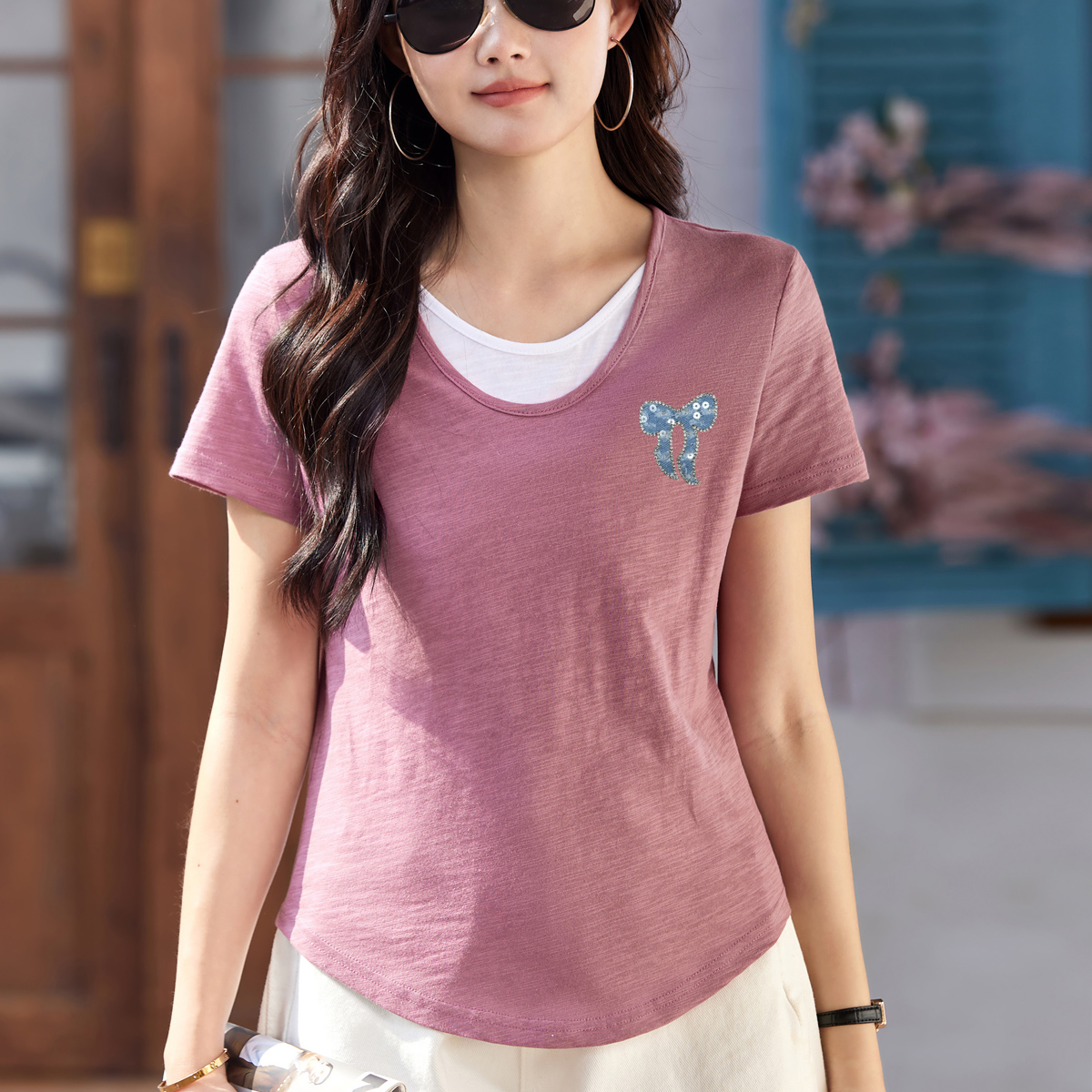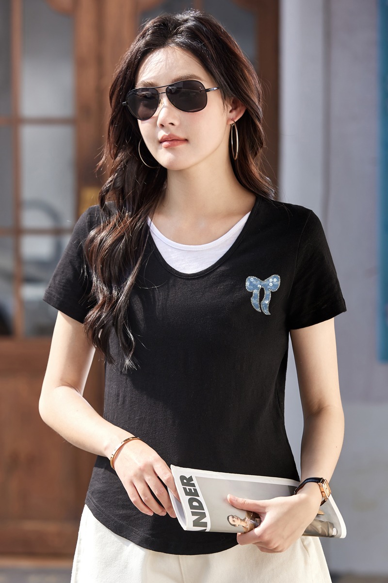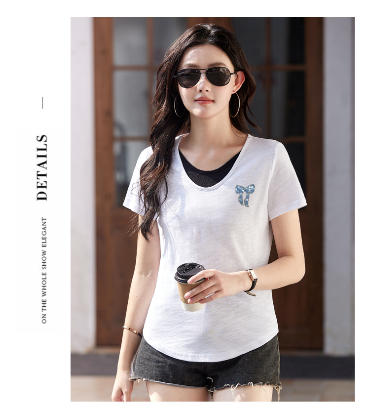 RY3712# 2026夏季新款设计感短袖t恤女黑色假两件半袖休闲女士纯棉上衣服