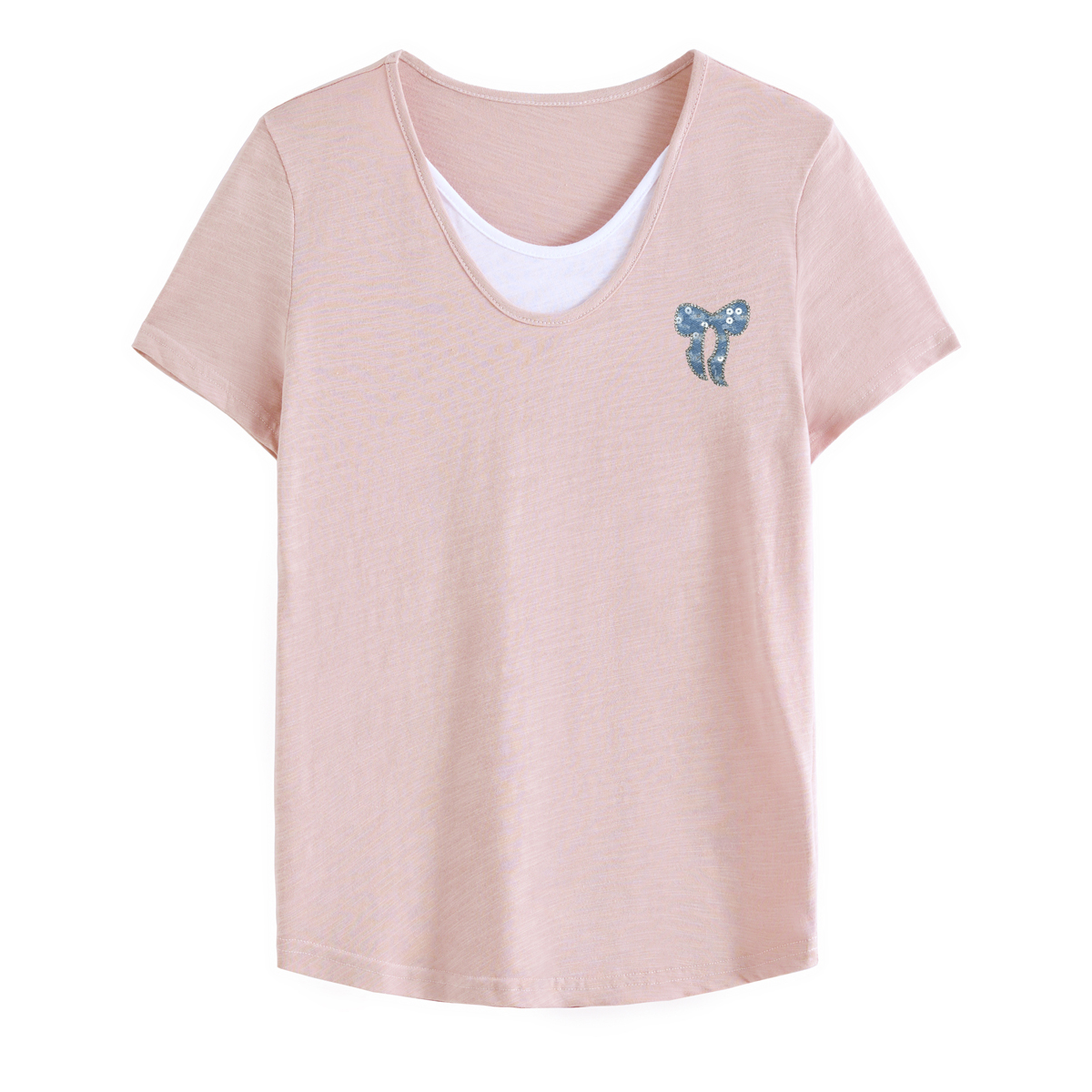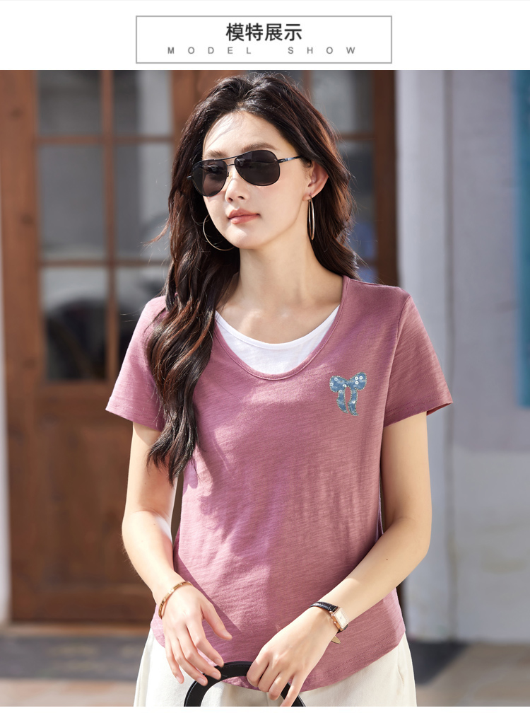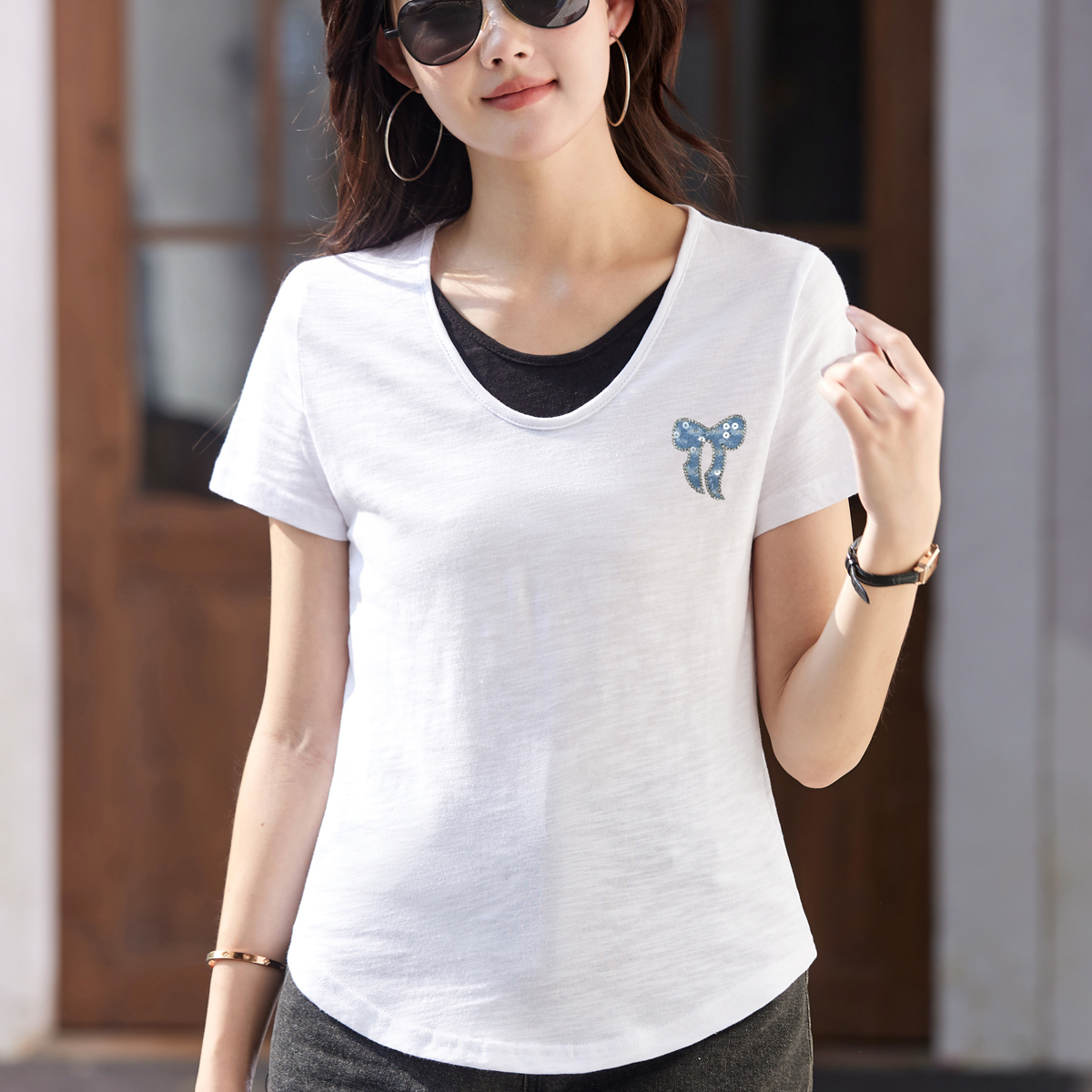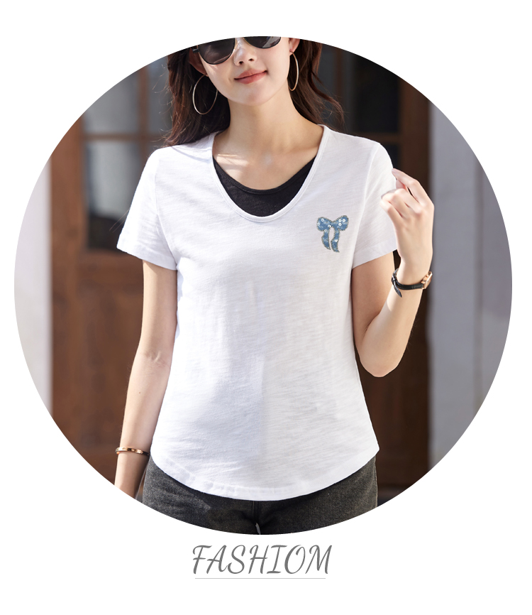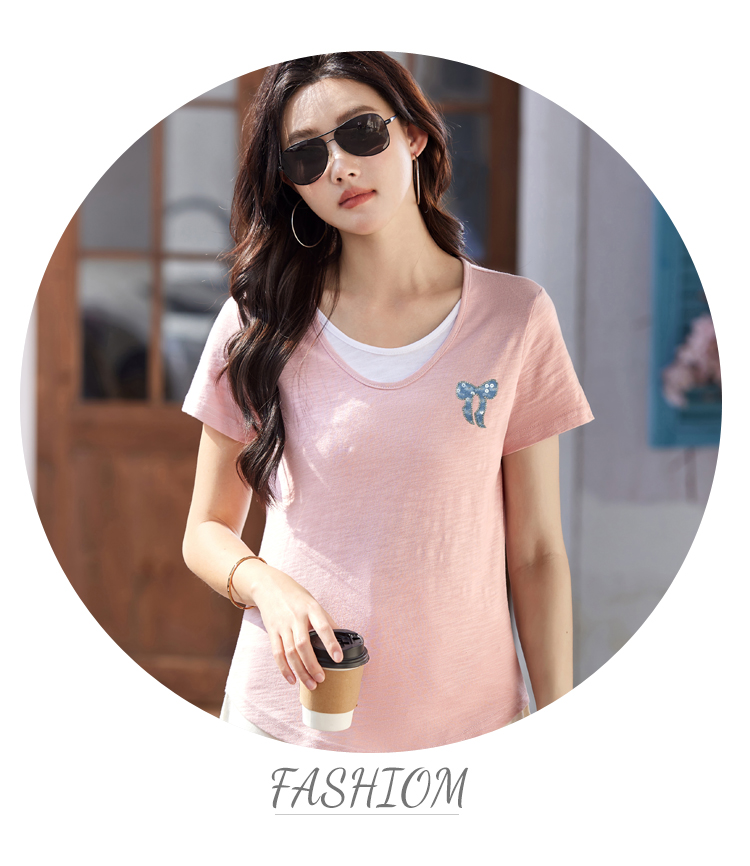 RY3712# 2026夏季新款设计感短袖t恤女黑色假两件半袖休闲女士纯棉上衣服