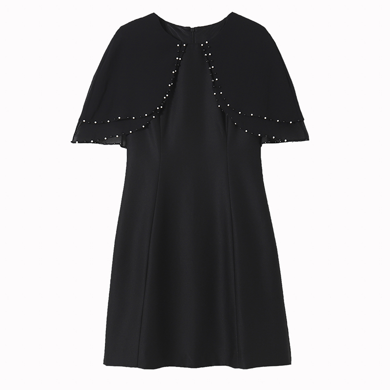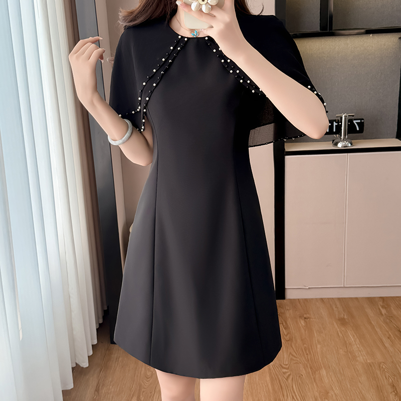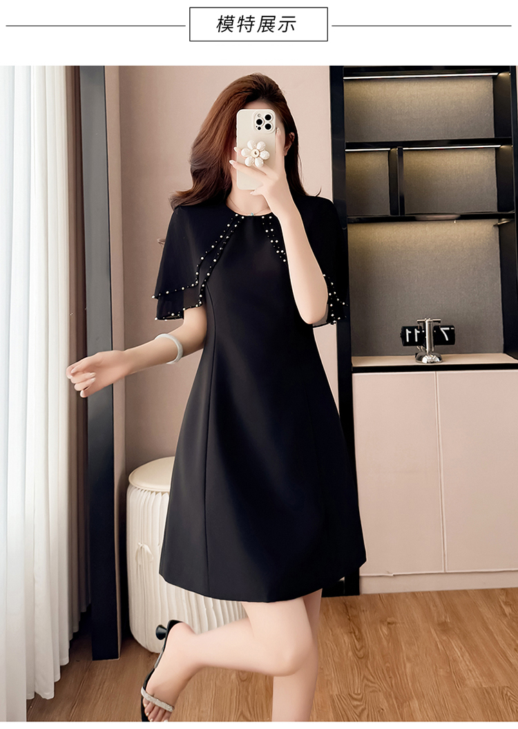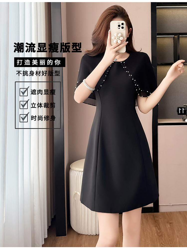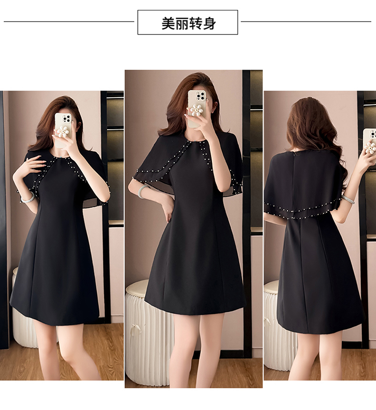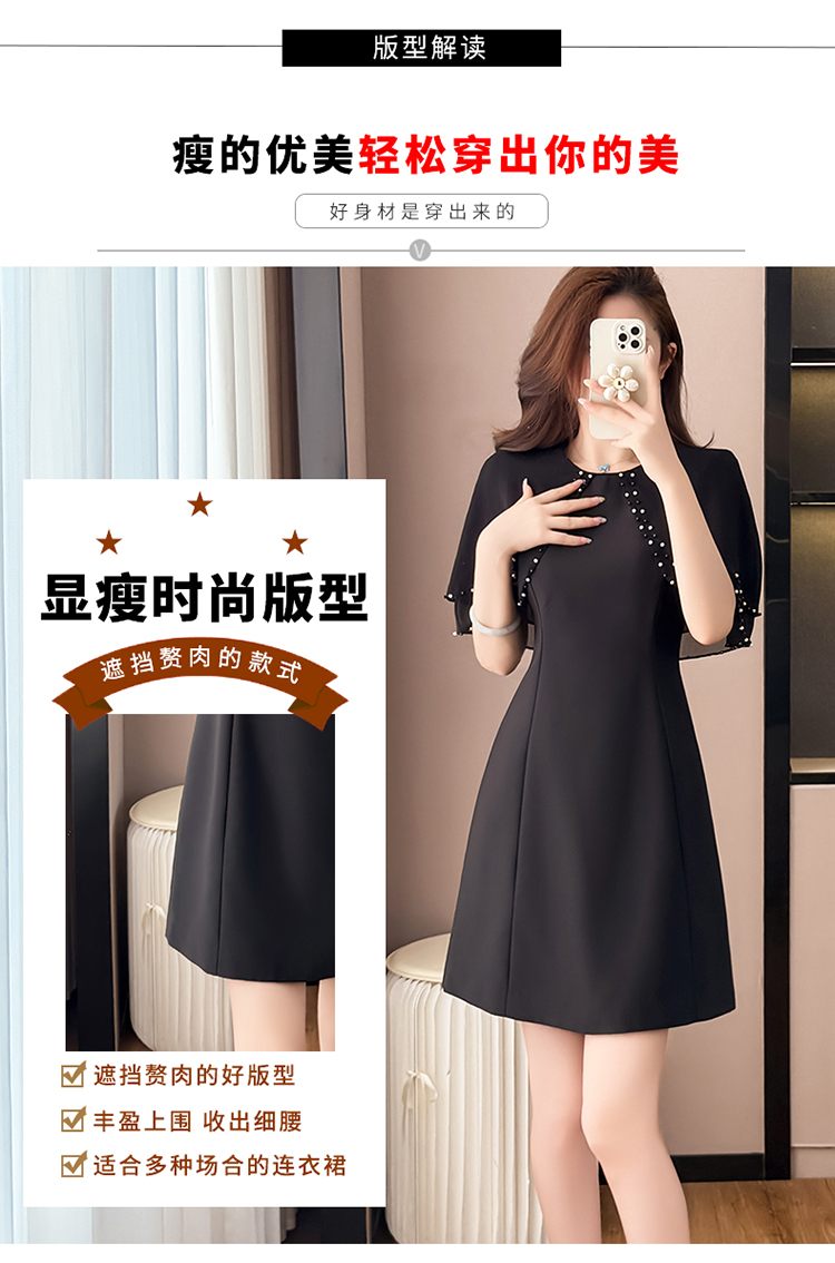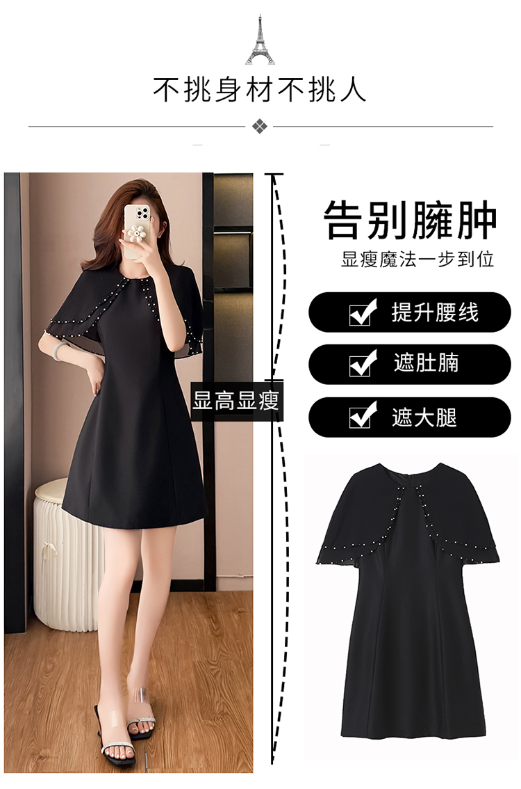 RY3774# 斗篷款假两件黑色气质修身显瘦短袖连衣裙大码女装胖mm夏新款泡珠