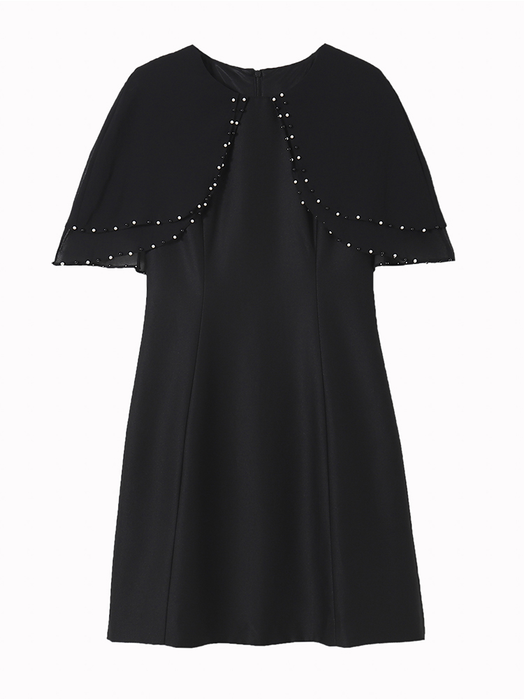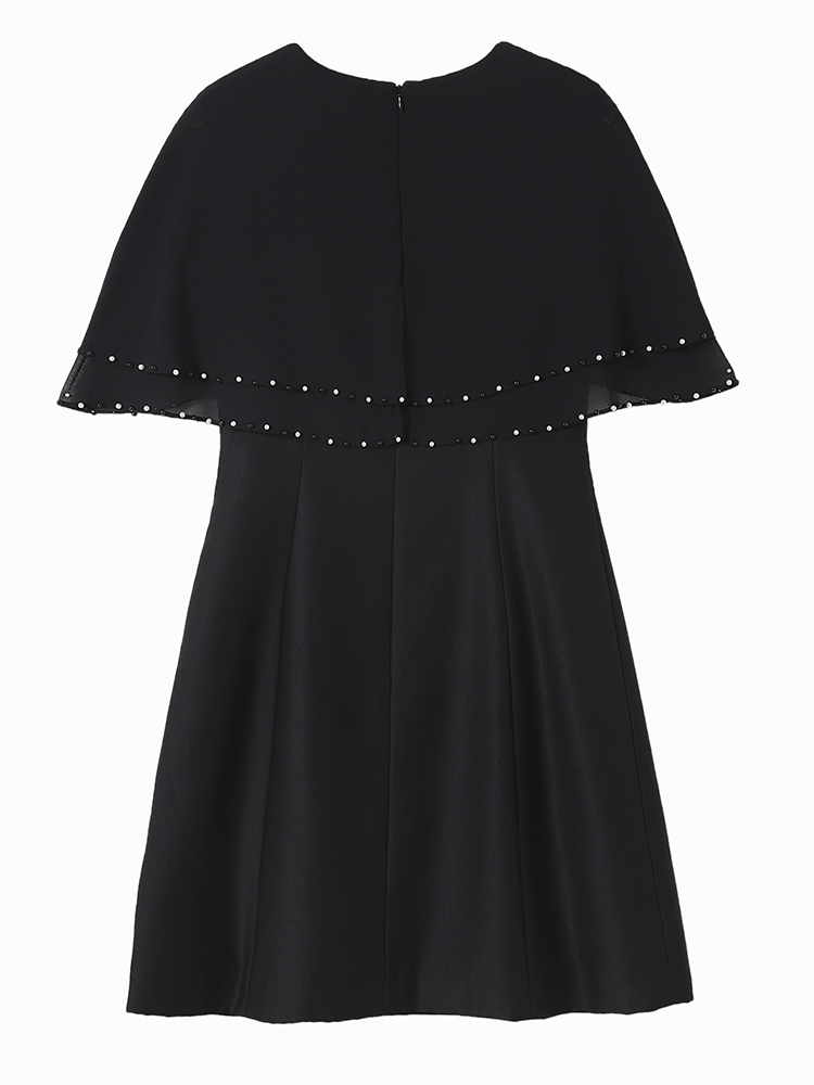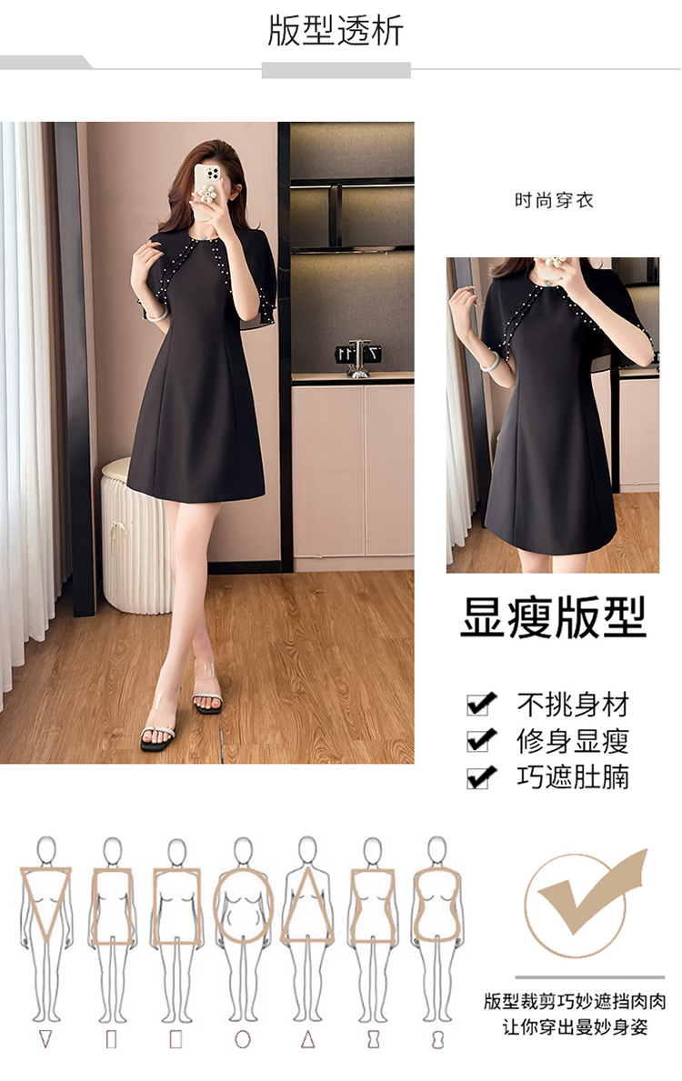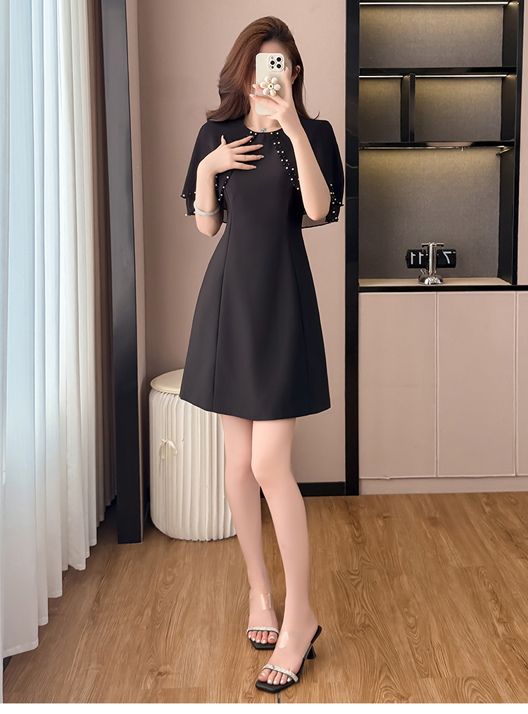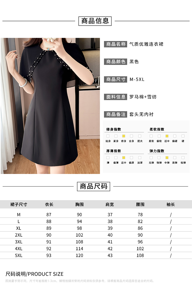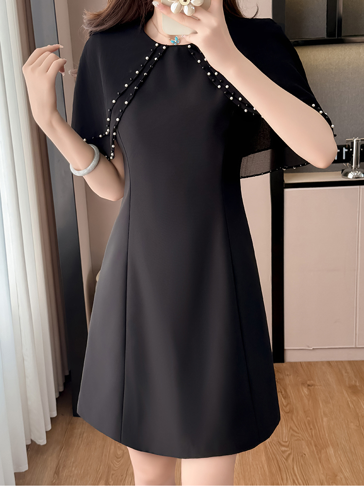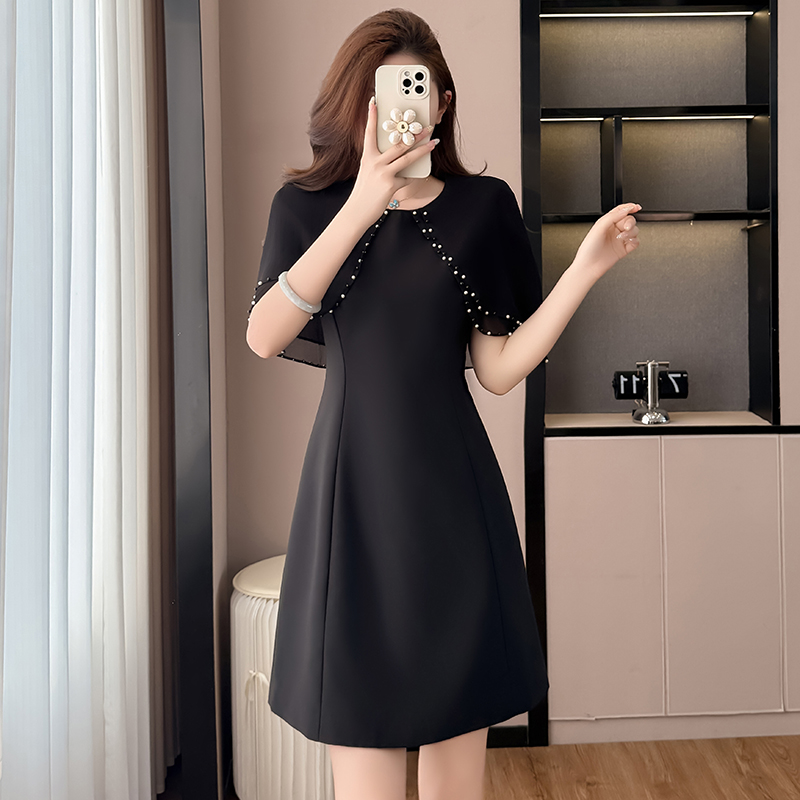 RY3774# 斗篷款假两件黑色气质修身显瘦短袖连衣裙大码女装胖mm夏新款泡珠