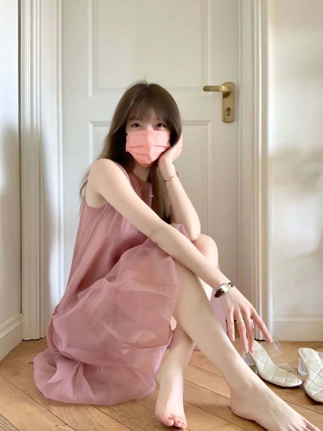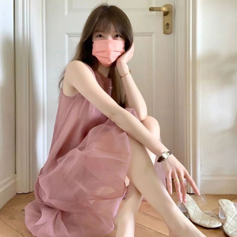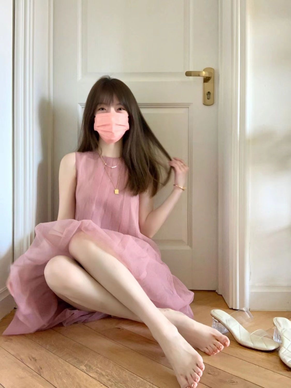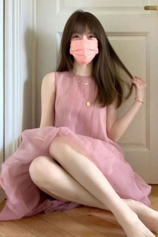 RY3785# 粉色圆领无袖连衣裙女2026年夏季新款女装气质设计感宽松连衣裙子