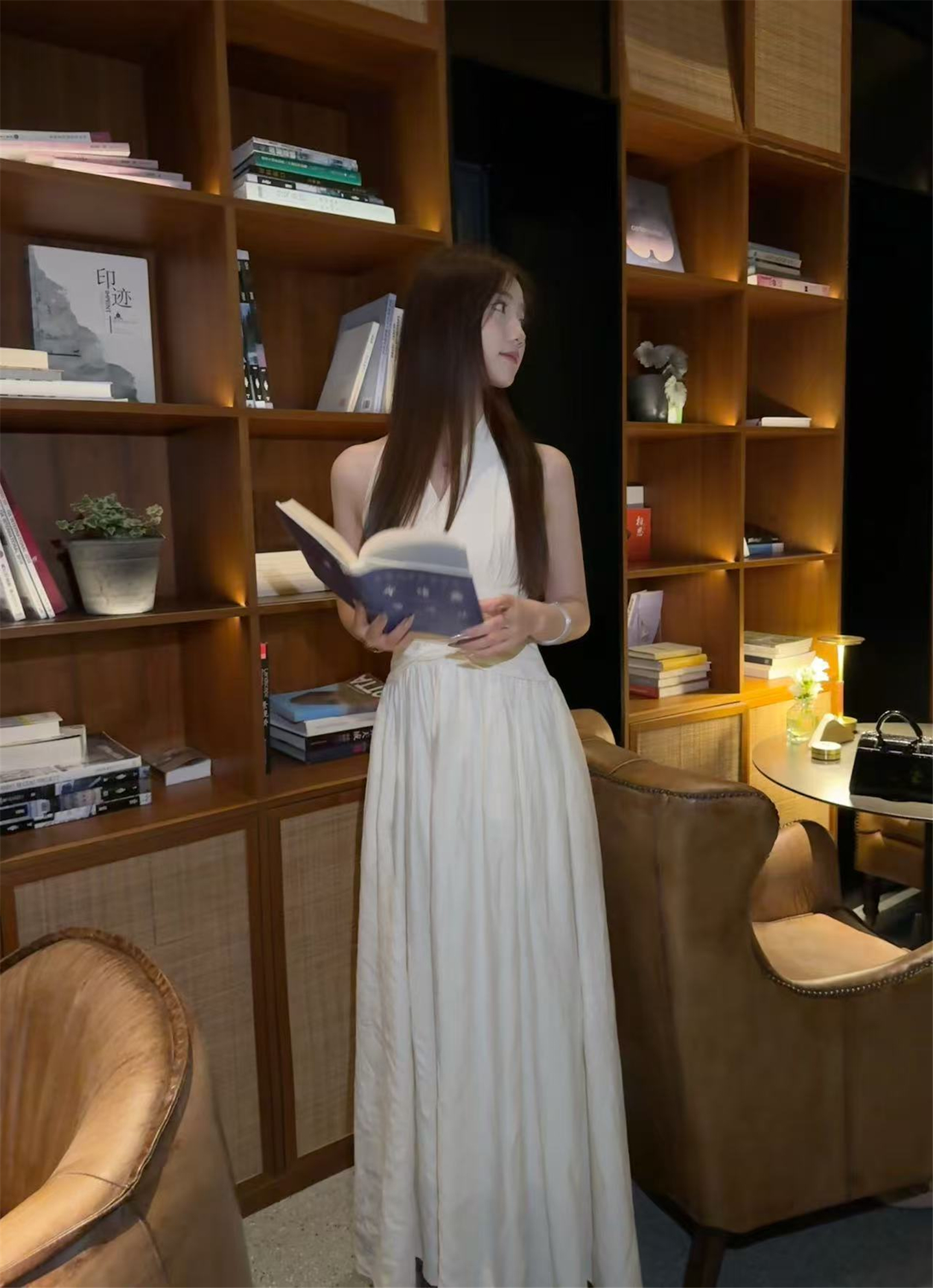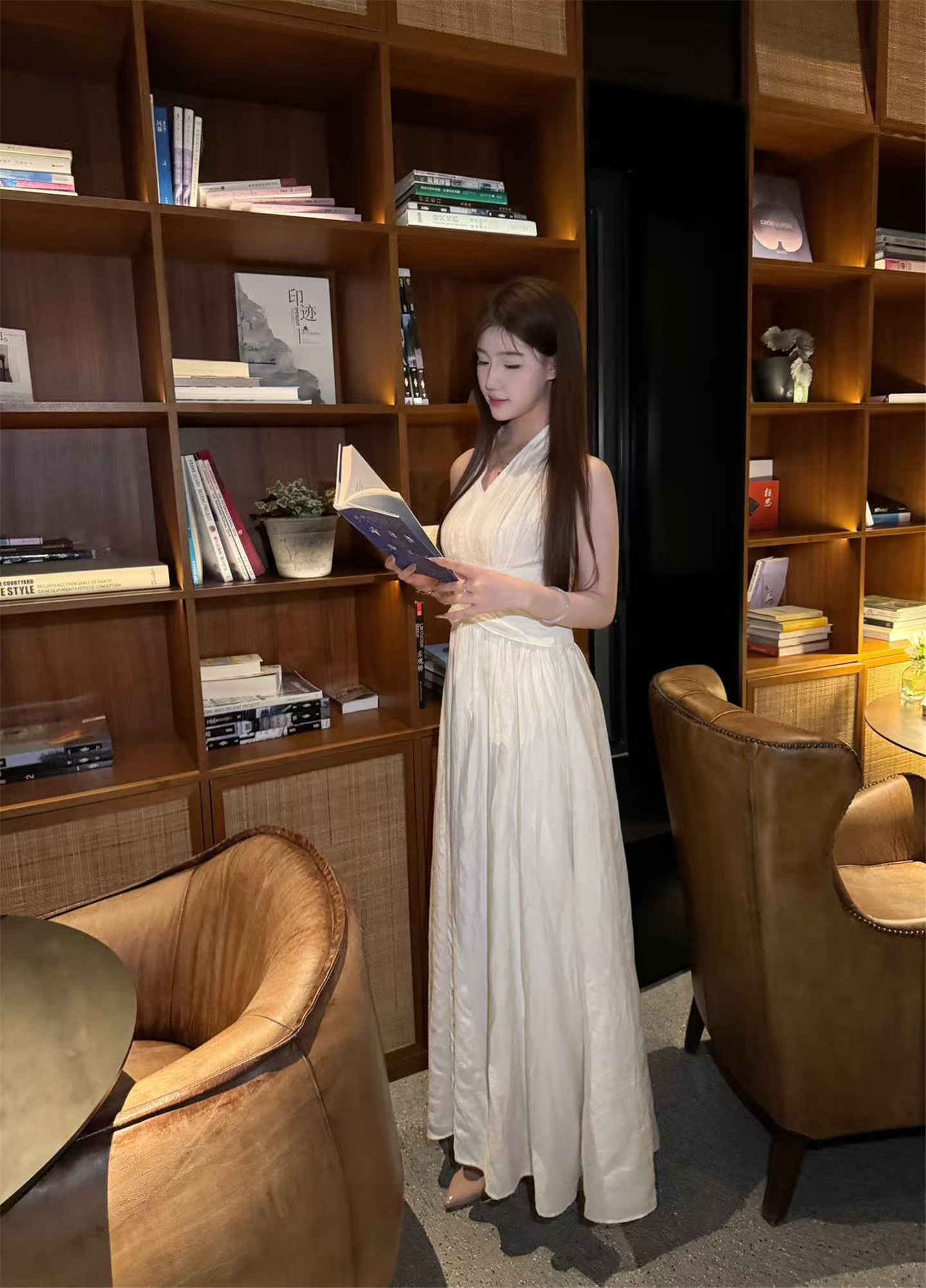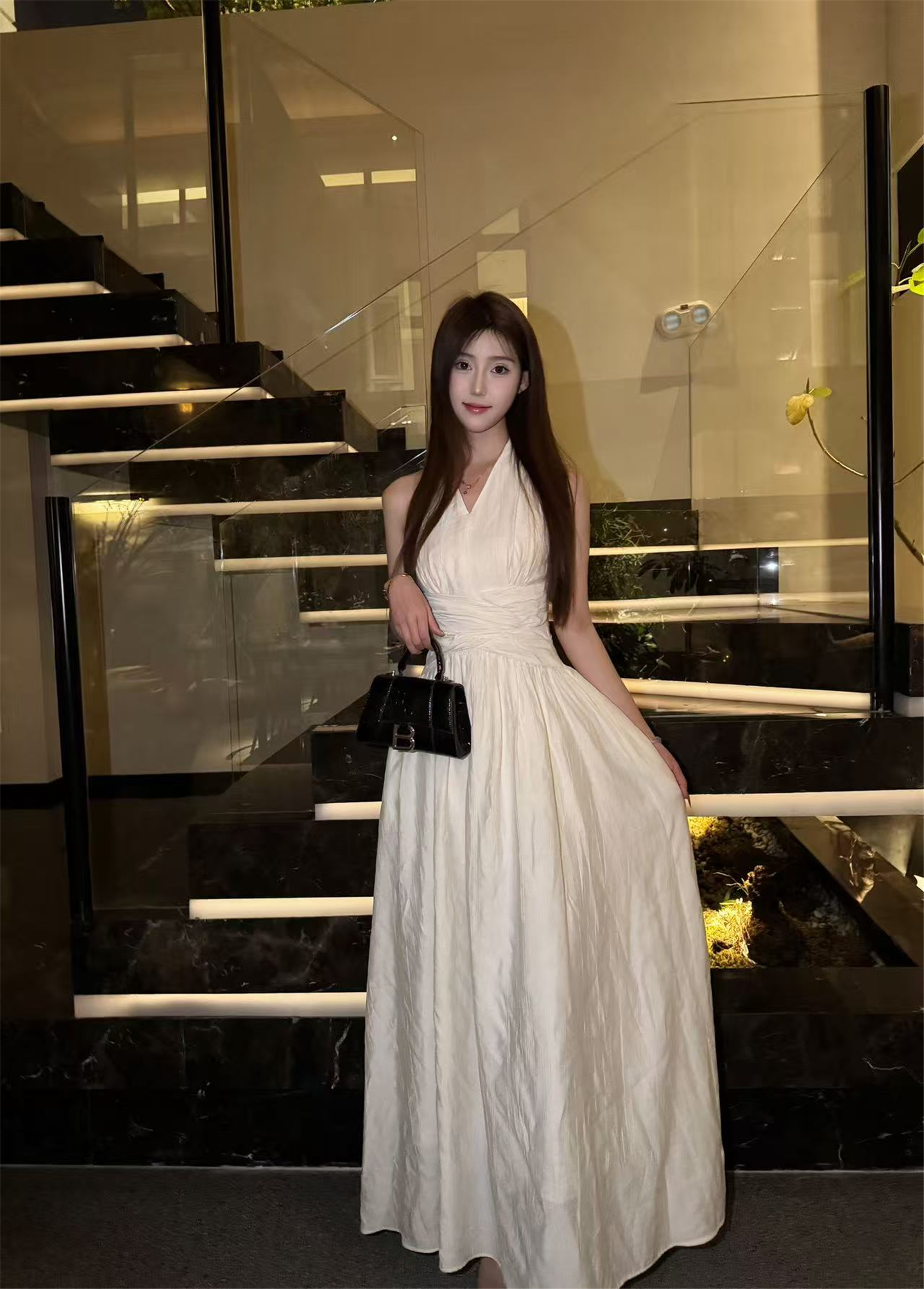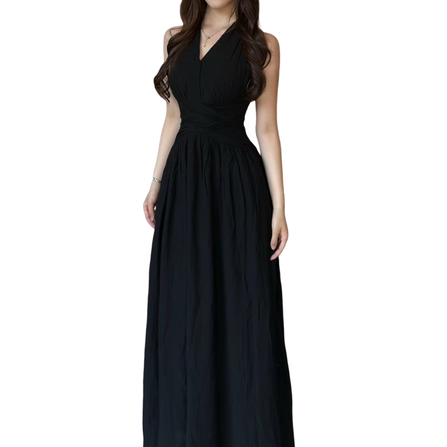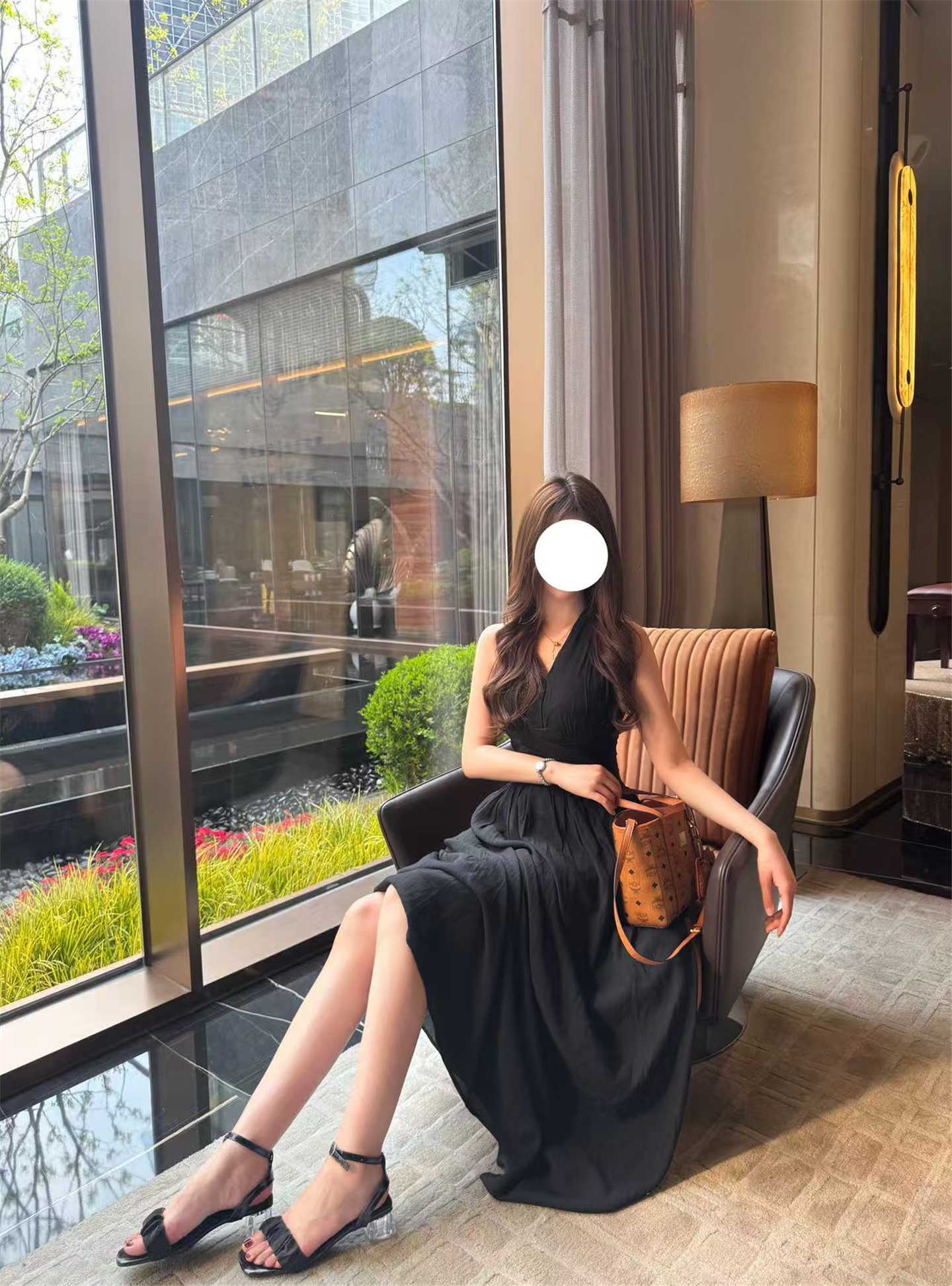 RY3786# 韩系漂亮冷淡系黑色无袖连衣裙子女夏季2026新款茶里茶气别致长裙