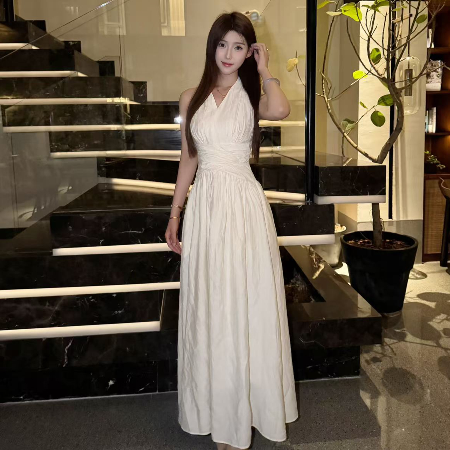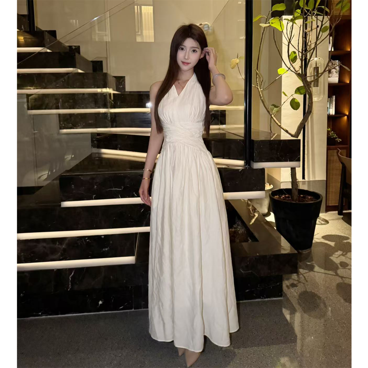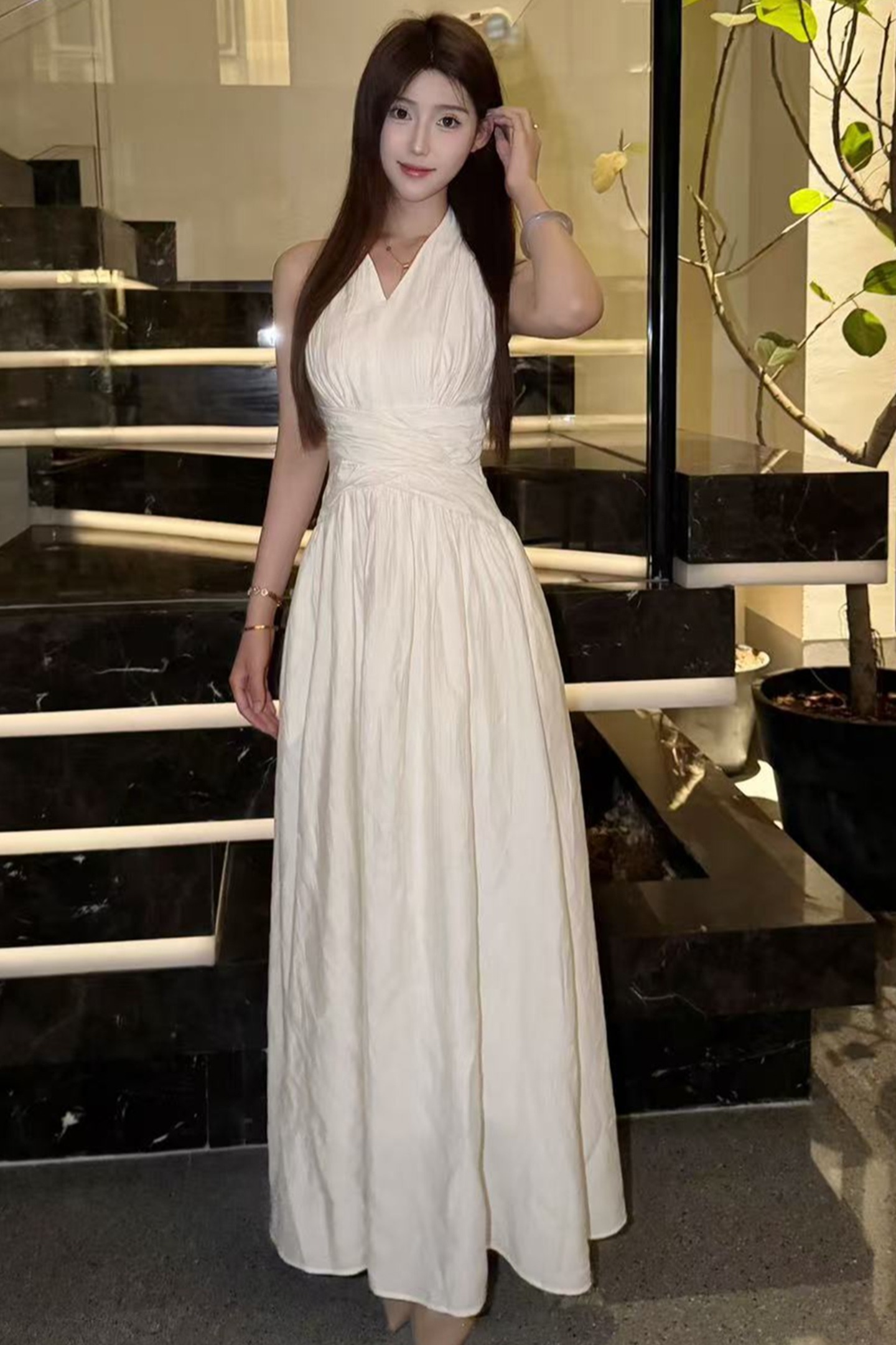 RY3819# 气质香槟色扭结连衣裙法式V领时尚收腰显瘦纯色裙子2026年...