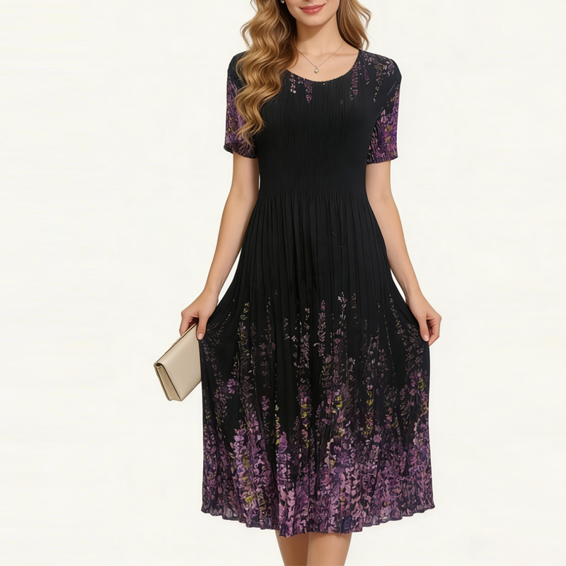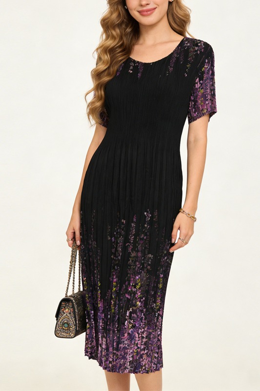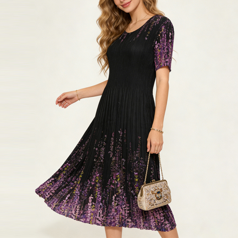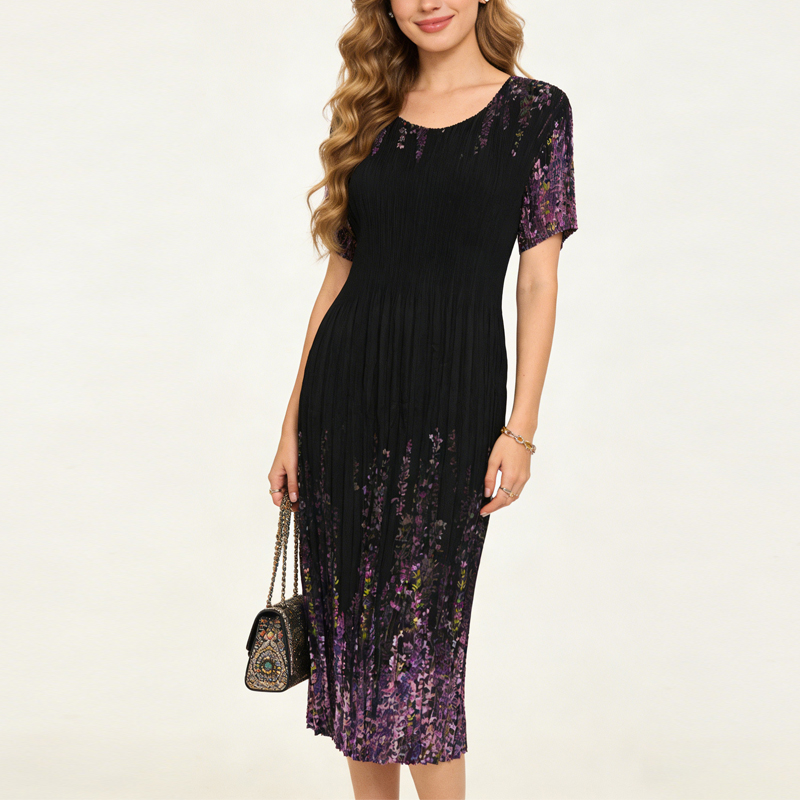 RY3799# 三宅褶皱连衣裙2026夏季新款高端名媛时尚气质中长收腰显瘦魔术裙