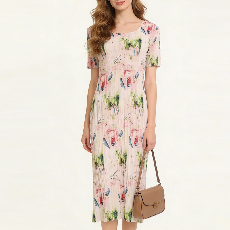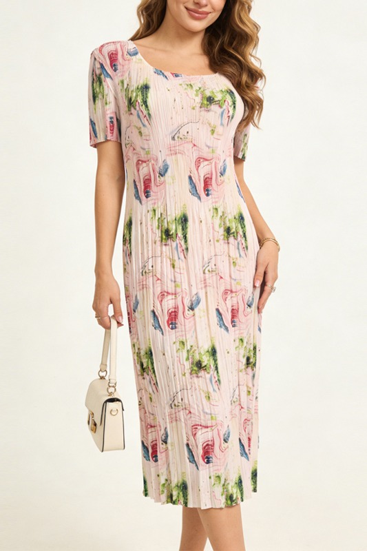 RY3801# 贵妇人褶皱连衣裙2026夏季新款高端气质名媛大码百褶裙妈妈装裙子