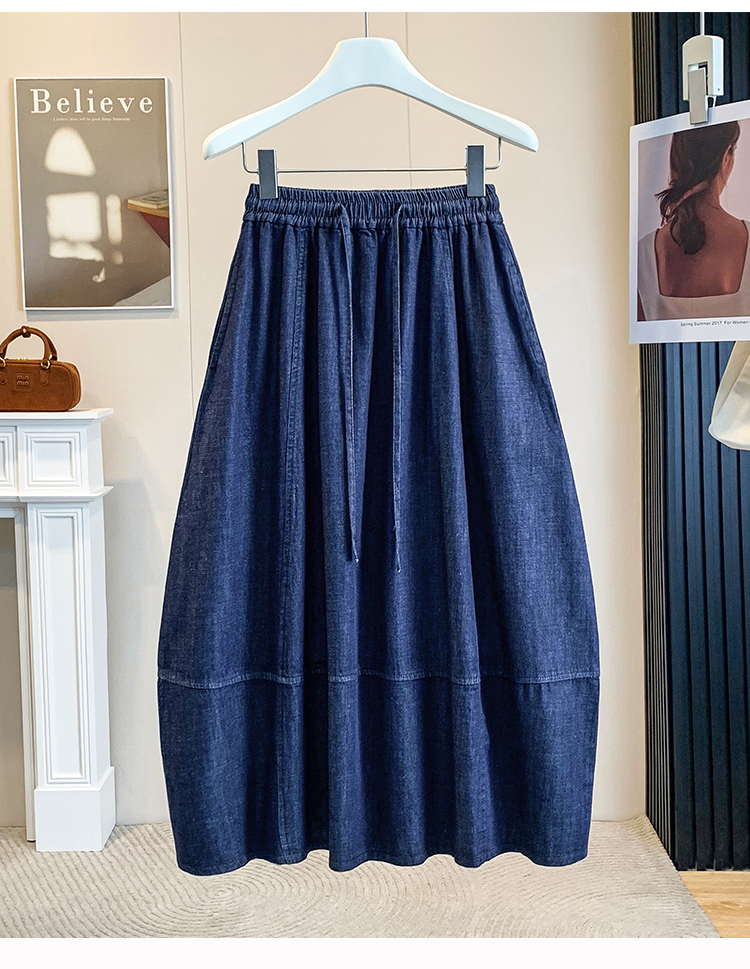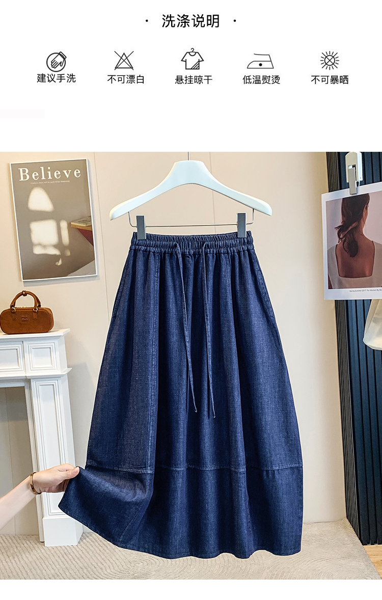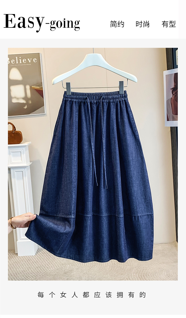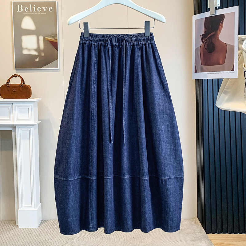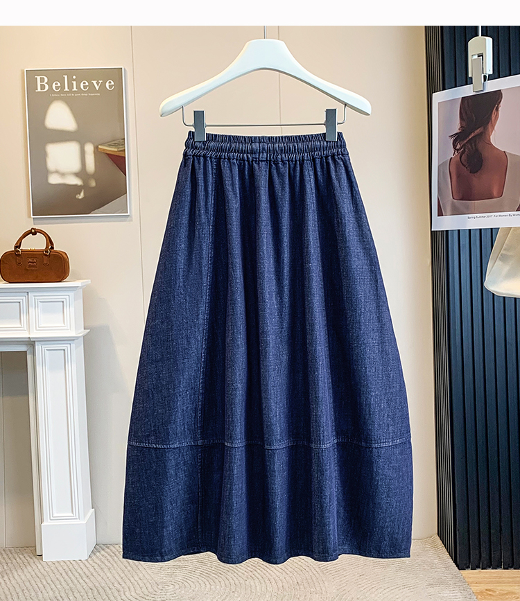 RY3809# 实拍牛仔不掉色半身裙中长款裙显瘦春季小个子宽松显瘦a字伞裙女