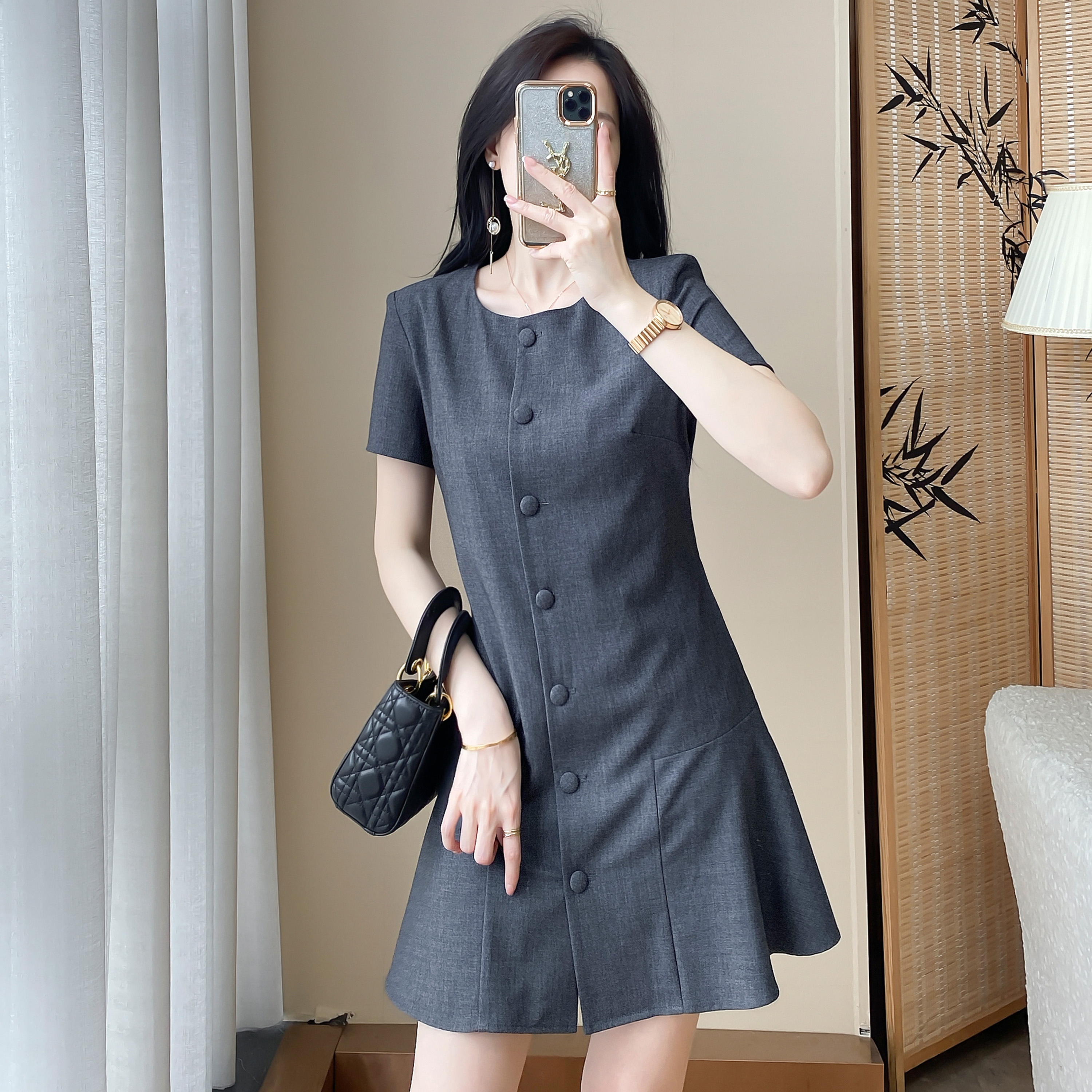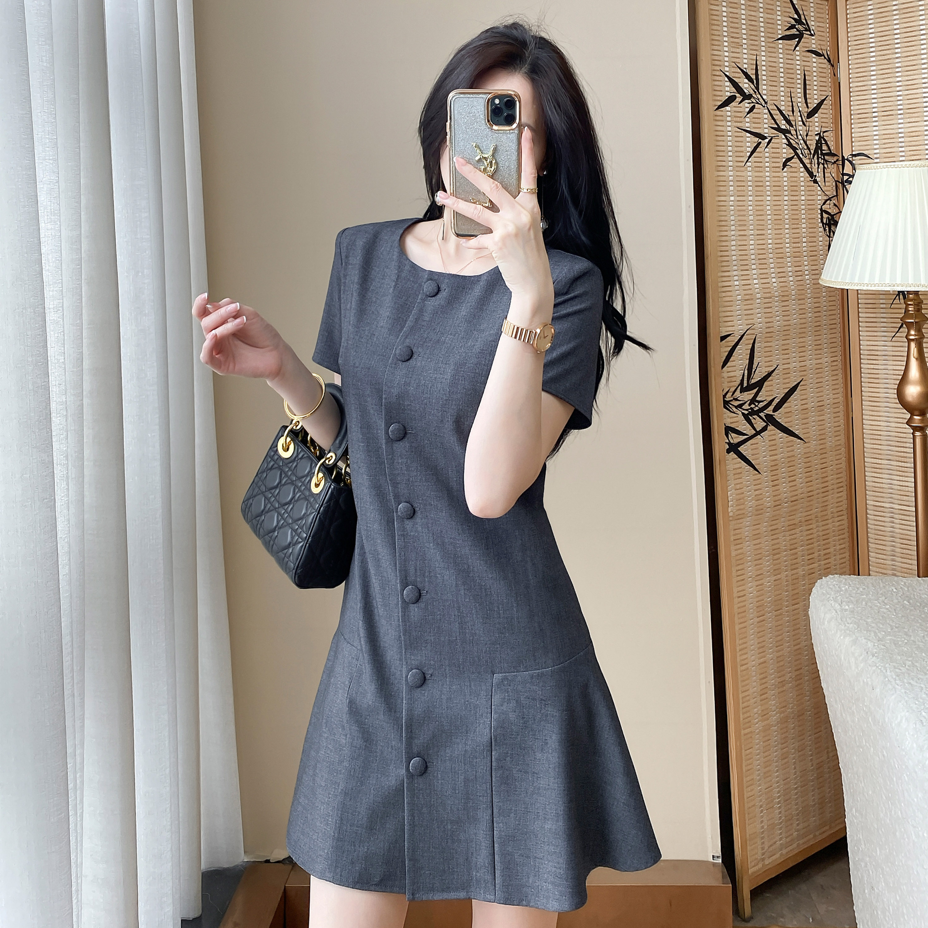 RY3817# 气质感连衣裙25夏季新款轻奢女装高级感法式收腰显瘦A字裙女
