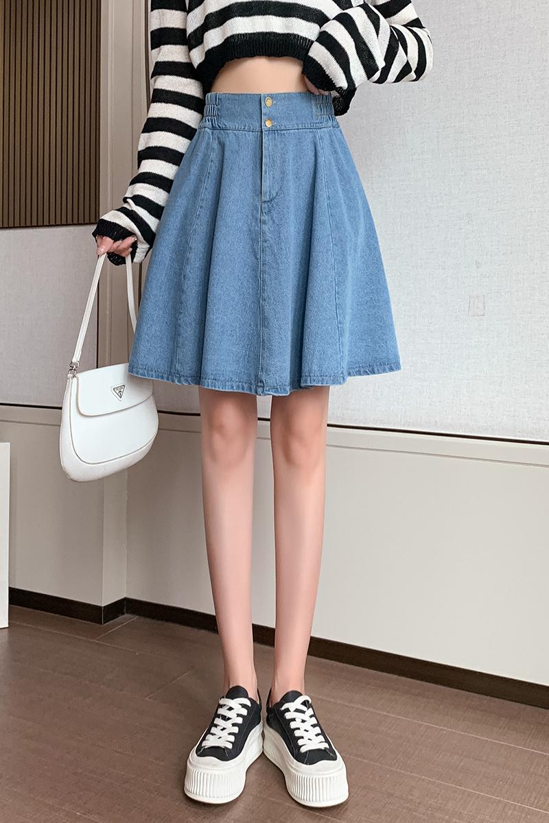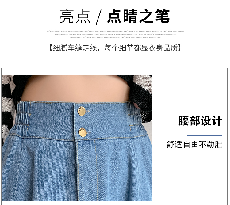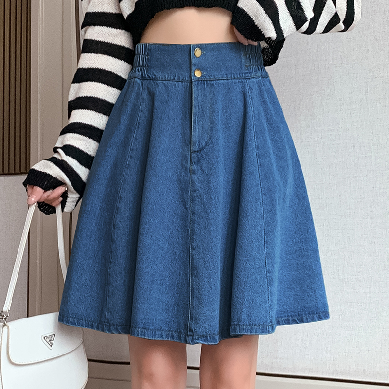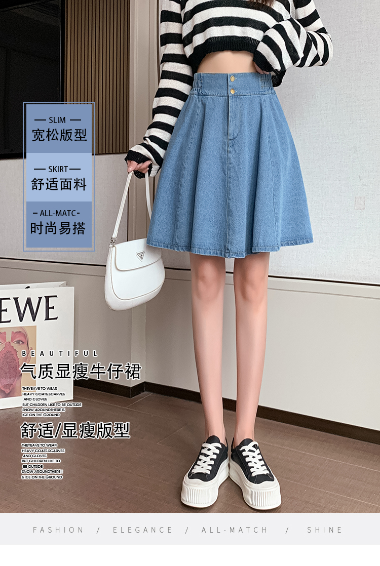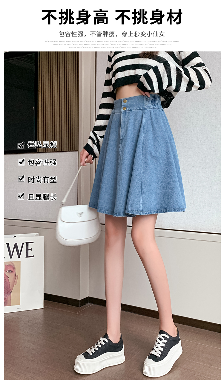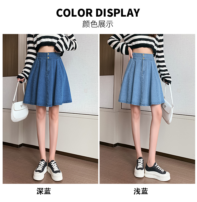 RY3838# 复古水洗牛仔a字半身裙女2026新款夏季韩版高腰显瘦百褶裙短裙子