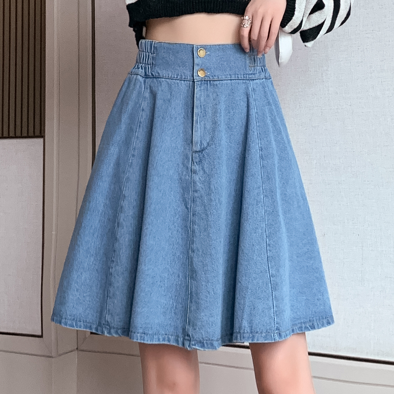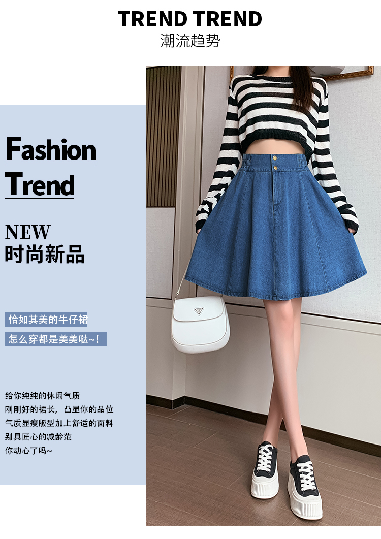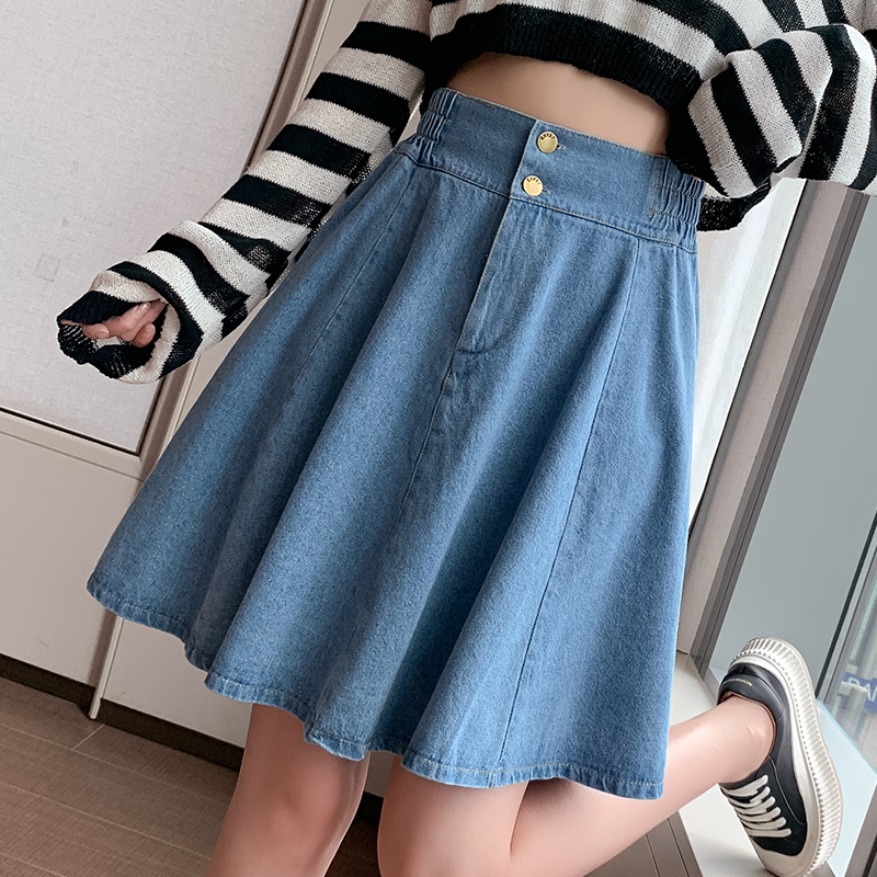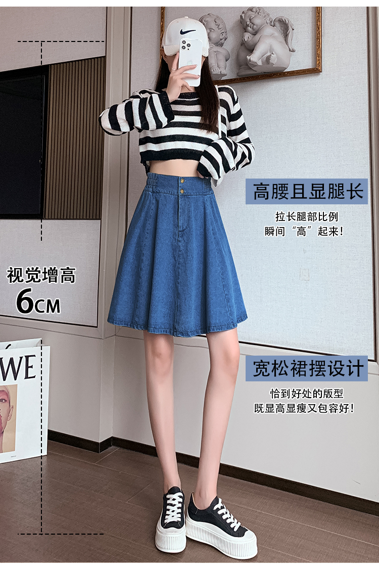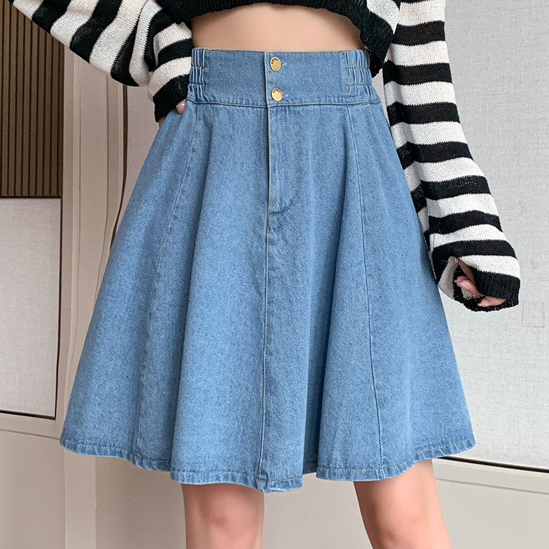 RY3838# 复古水洗牛仔a字半身裙女2026新款夏季韩版高腰显瘦百褶裙短裙子