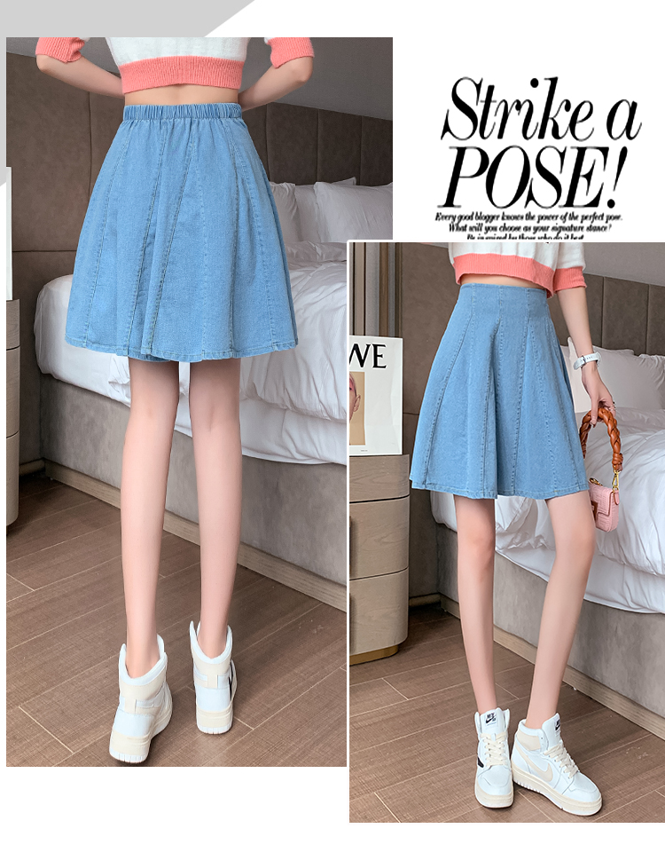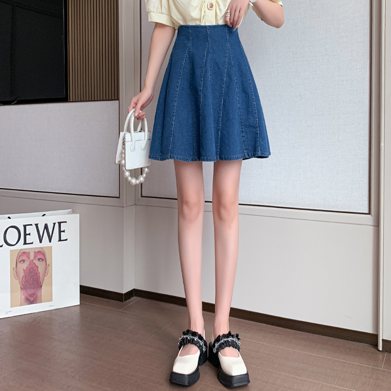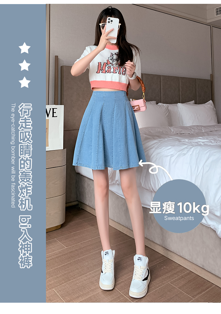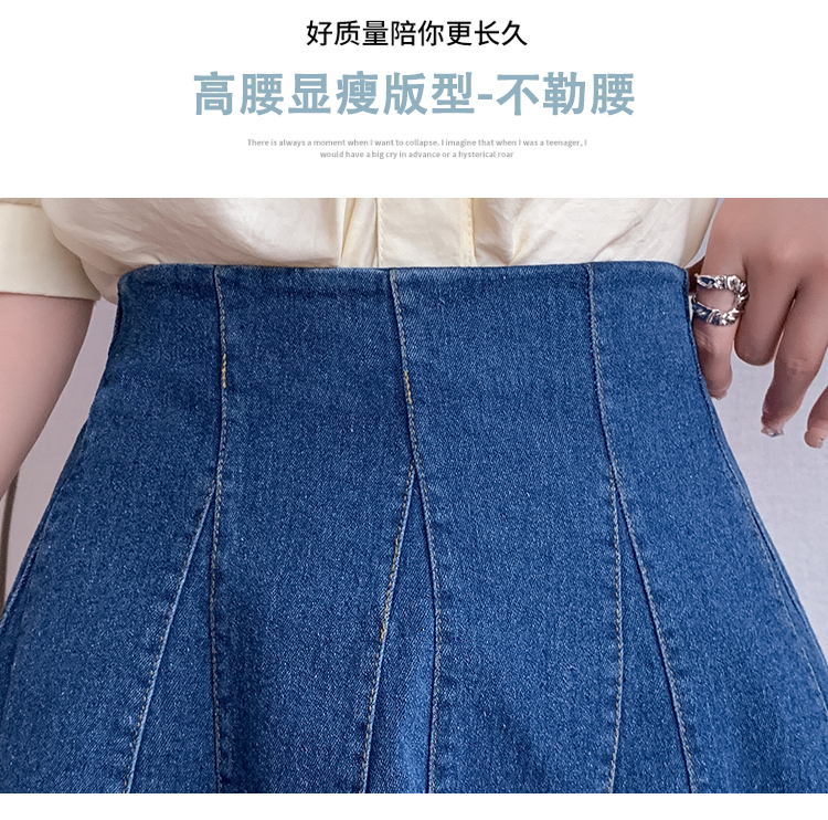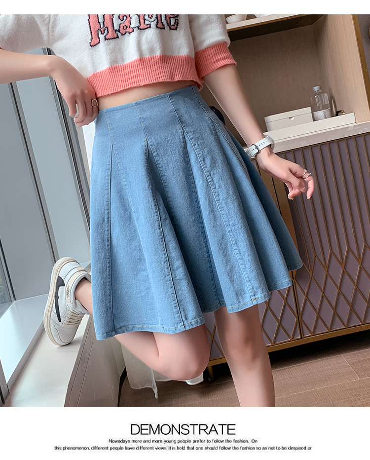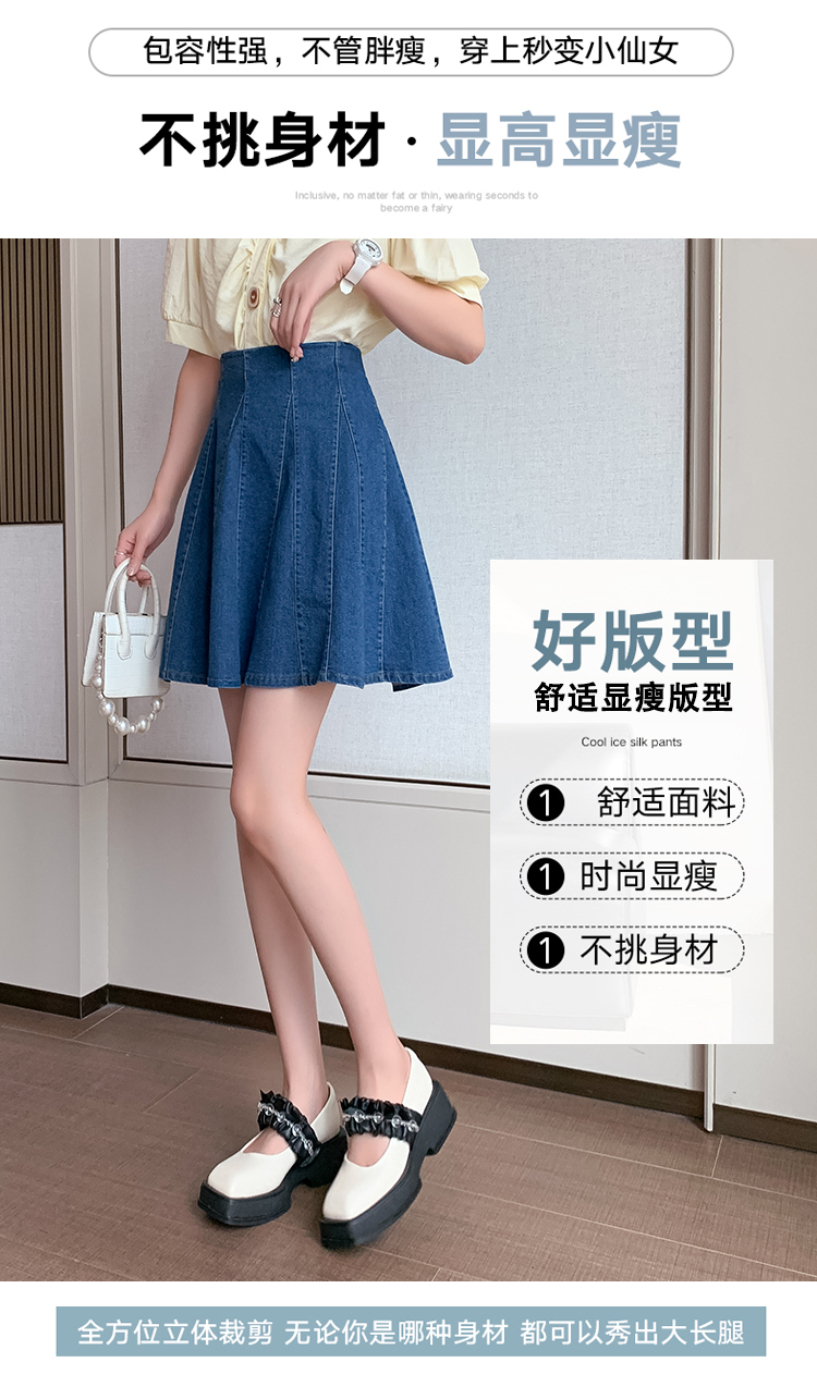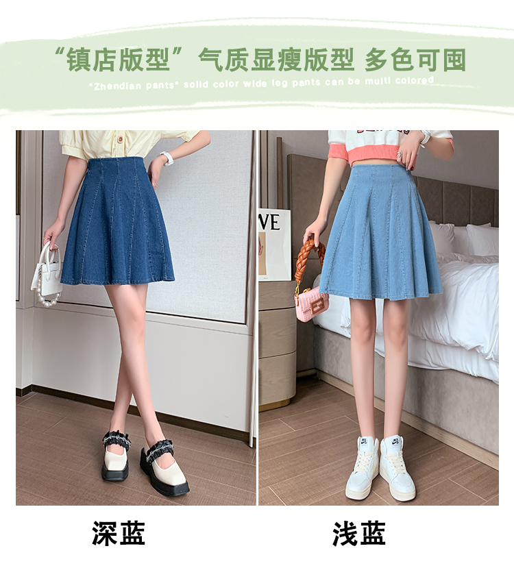 RY3839# 蓝色牛仔半身裙女春夏季2026年新款a字短裙裤百褶女小个子伞裙子
