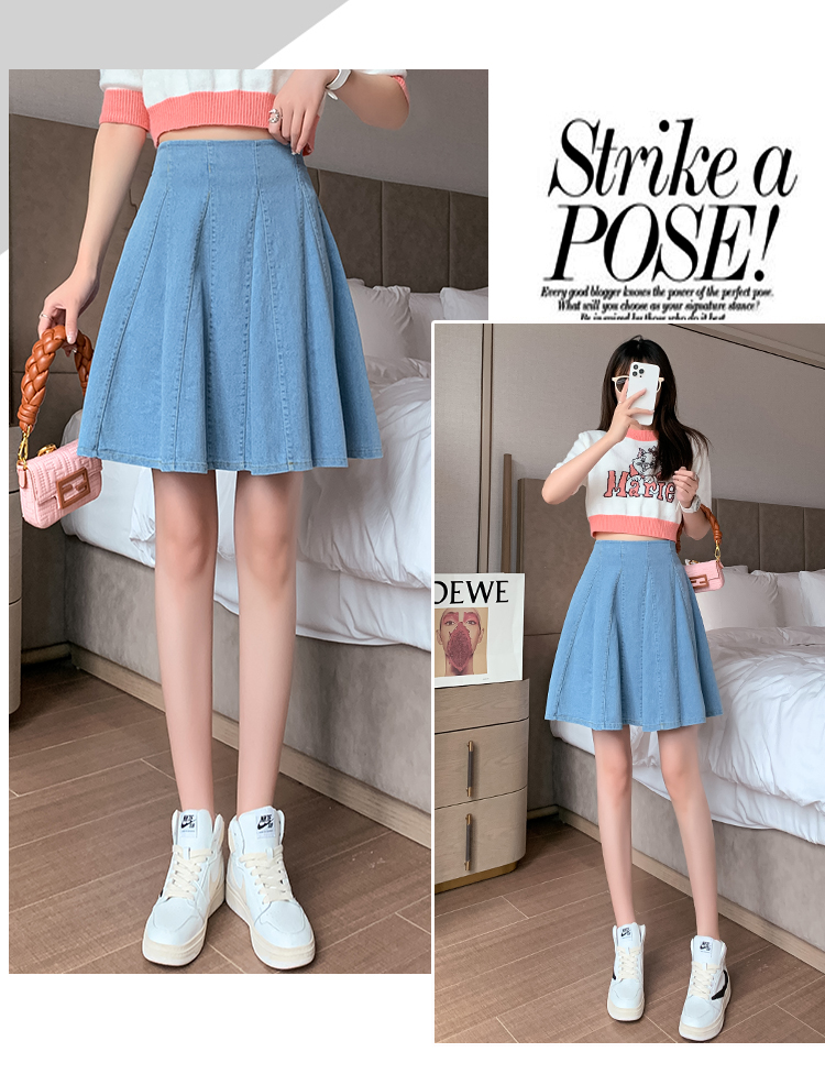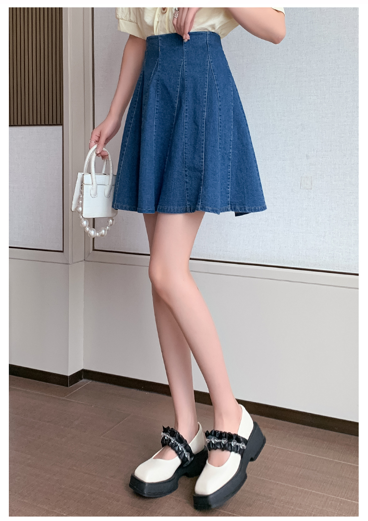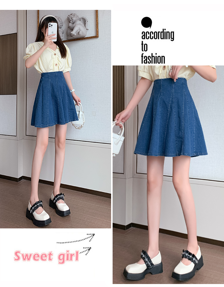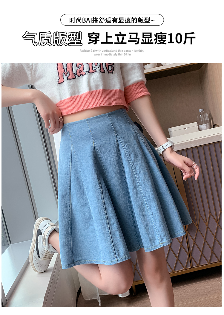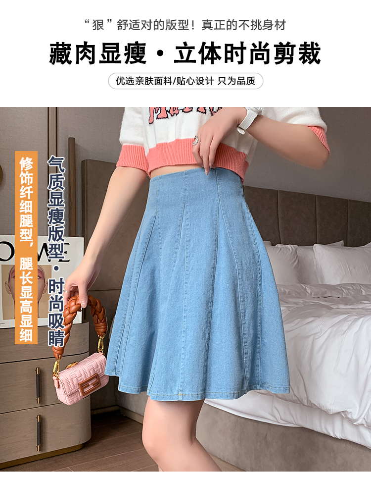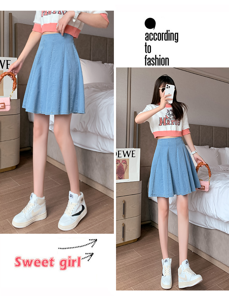 RY3839# 蓝色牛仔半身裙女春夏季2026年新款a字短裙裤百褶女小个子伞裙子