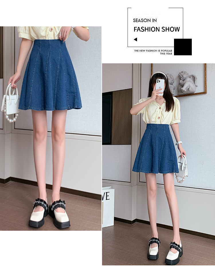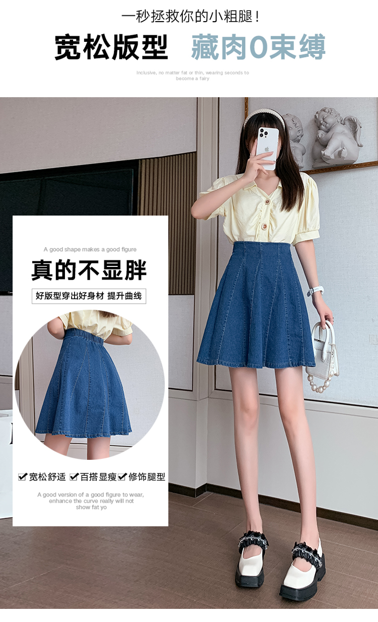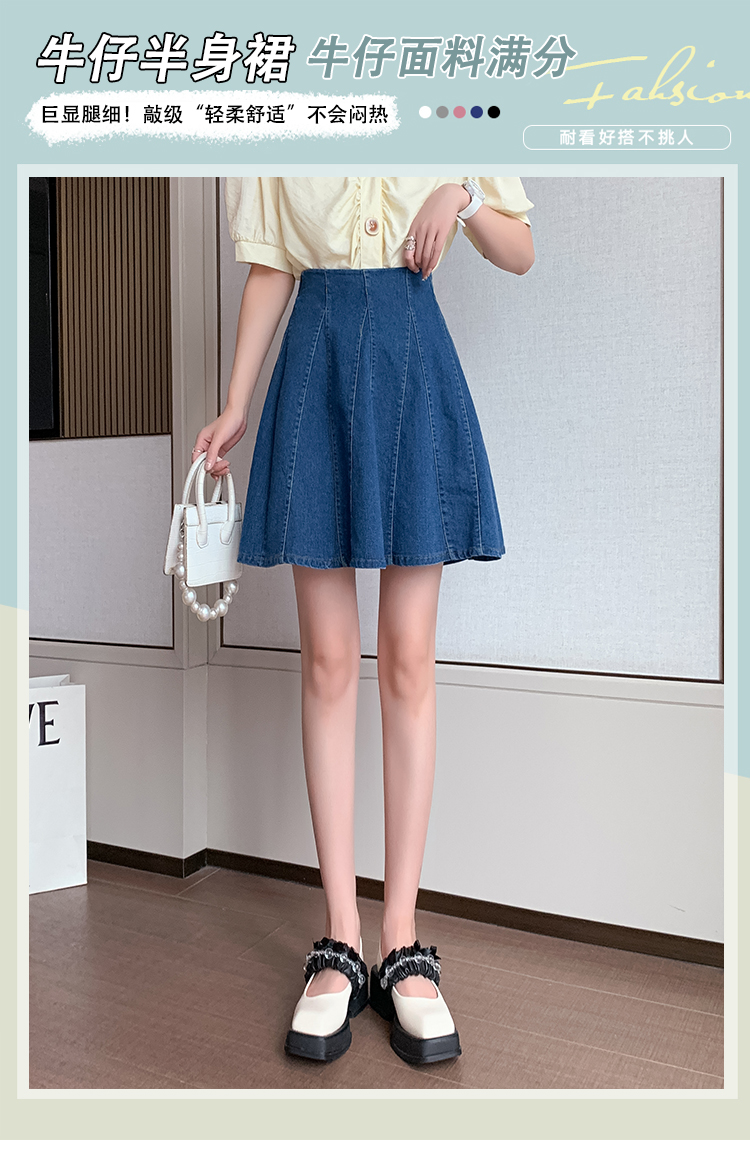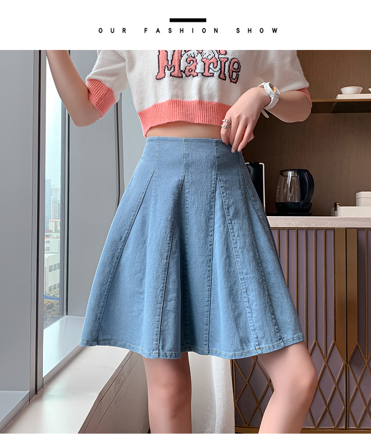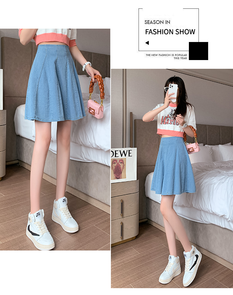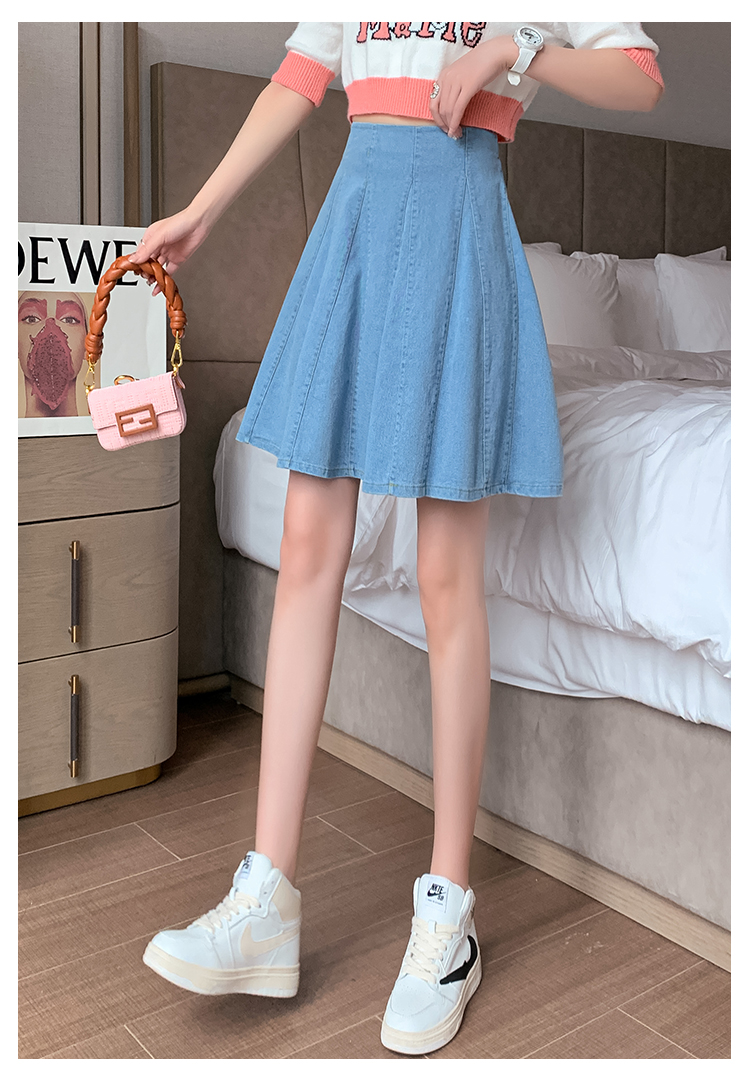 RY3839# 蓝色牛仔半身裙女春夏季2026年新款a字短裙裤百褶女小个子伞裙子