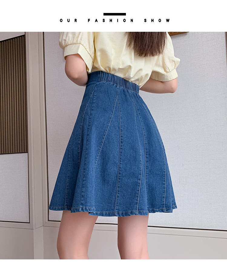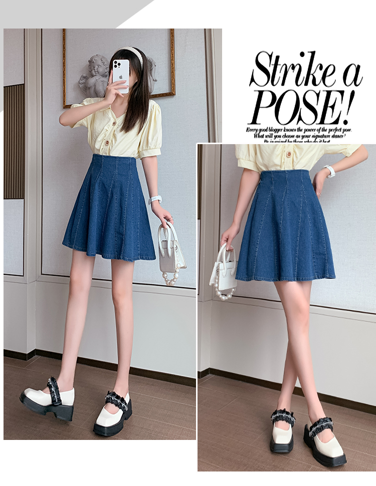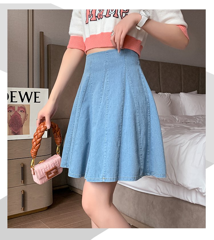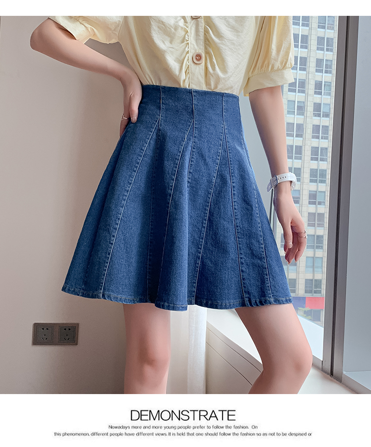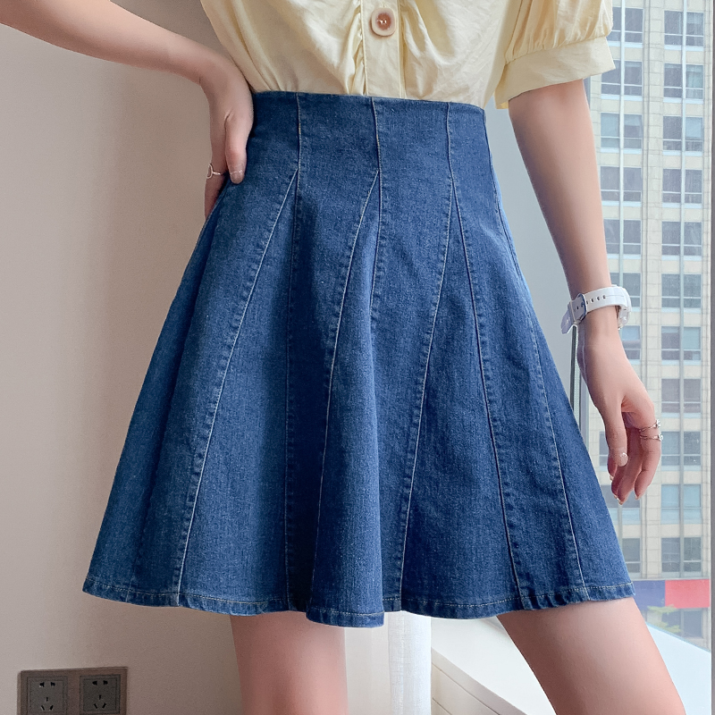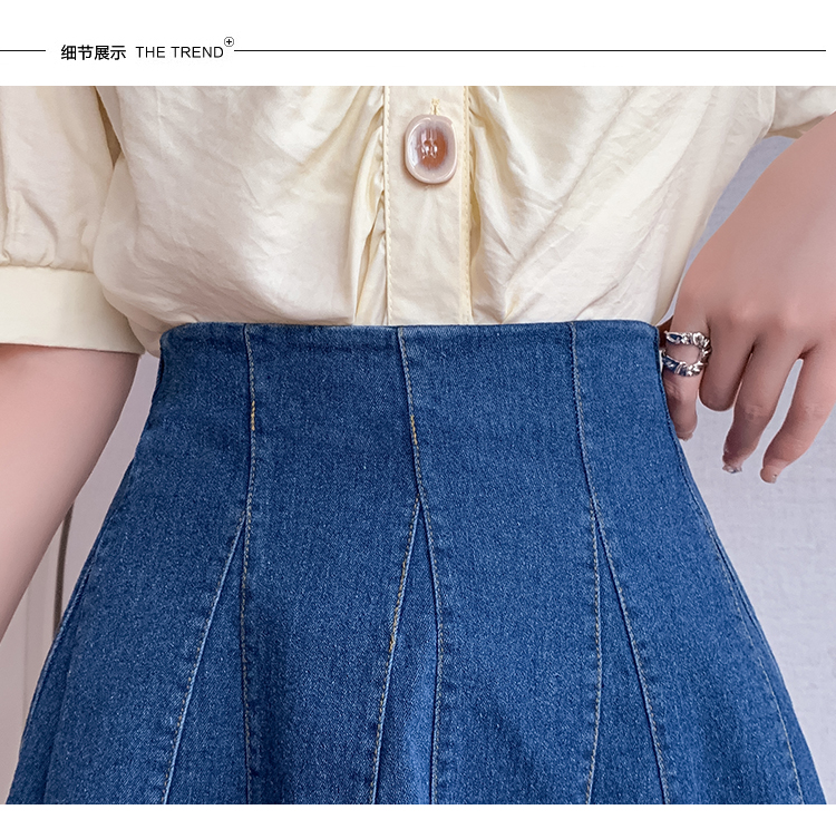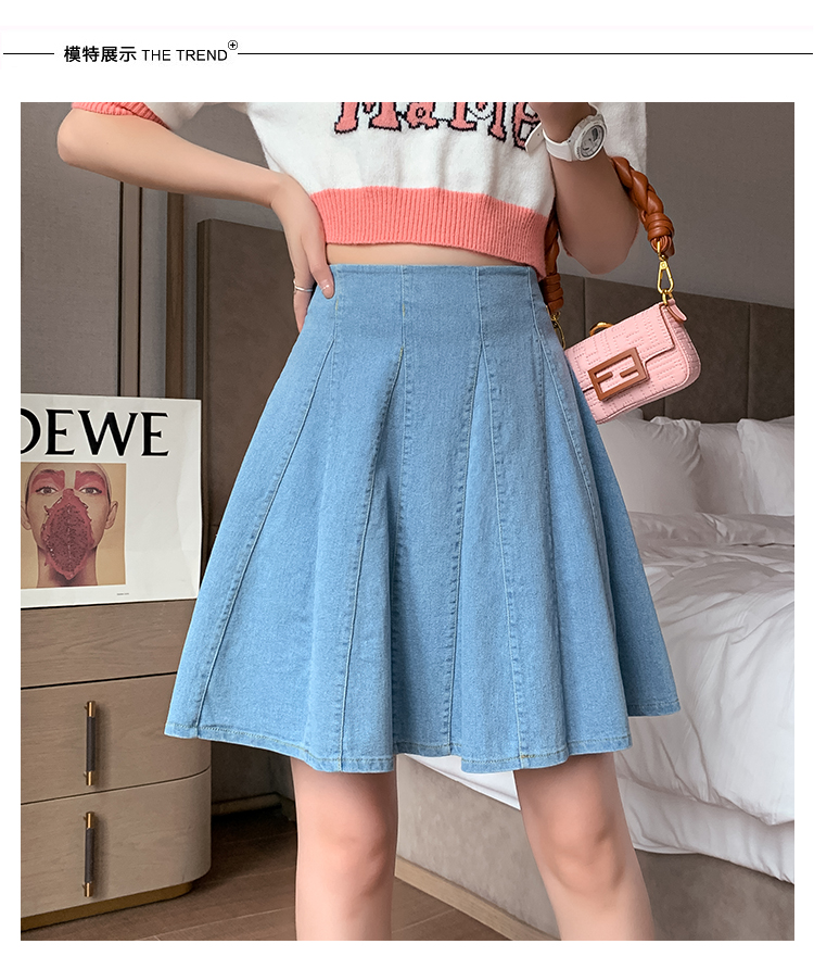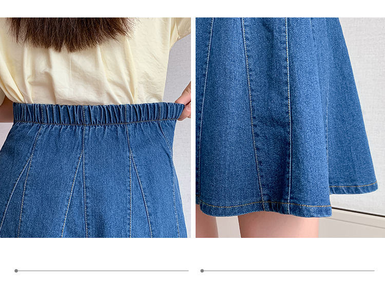 RY3839# 蓝色牛仔半身裙女春夏季2026年新款a字短裙裤百褶女小个子伞裙子