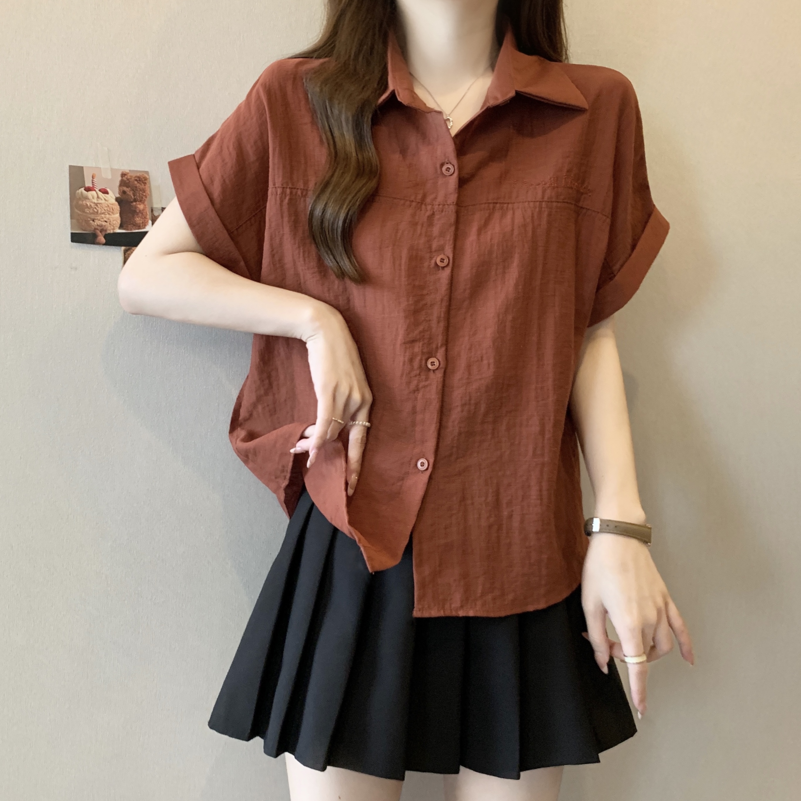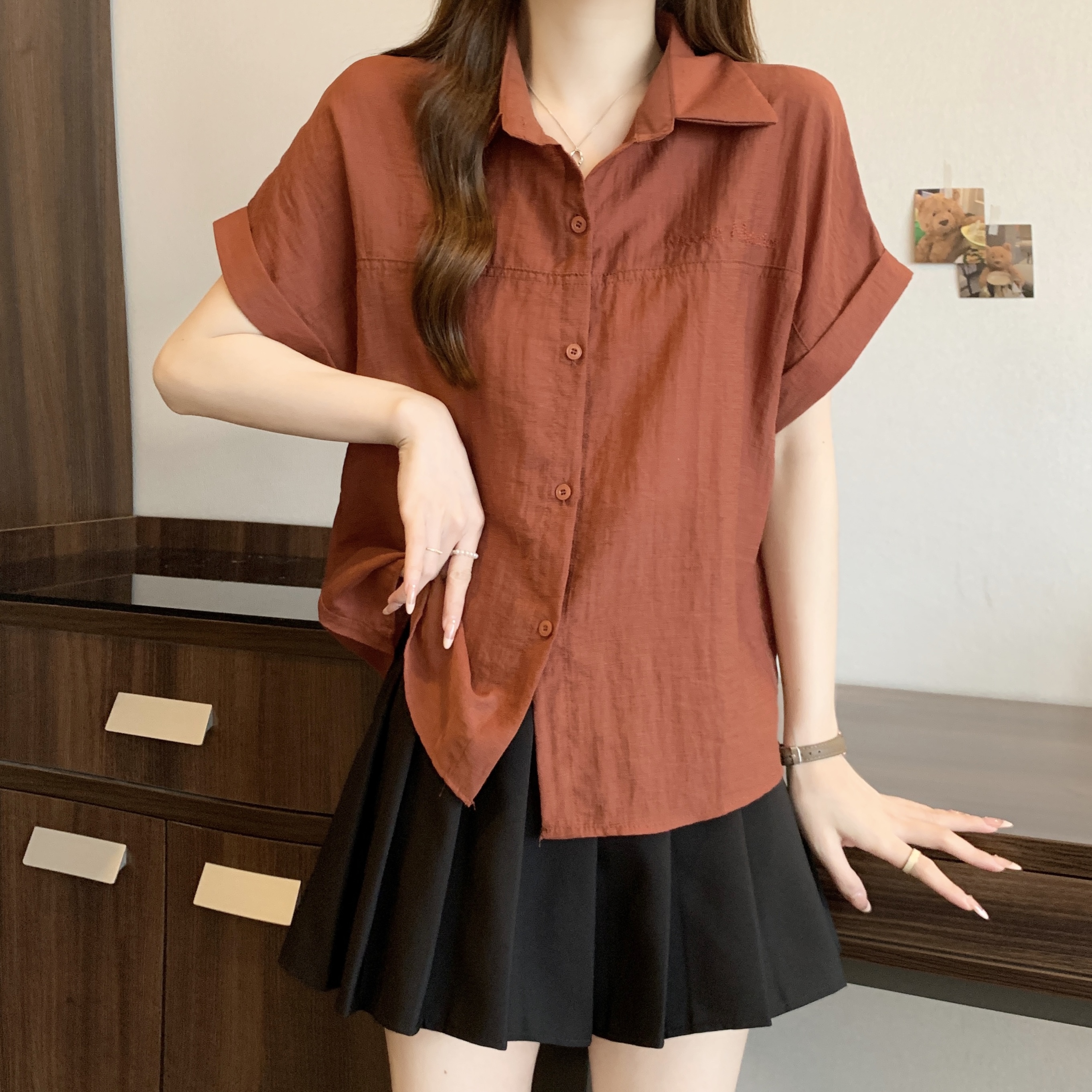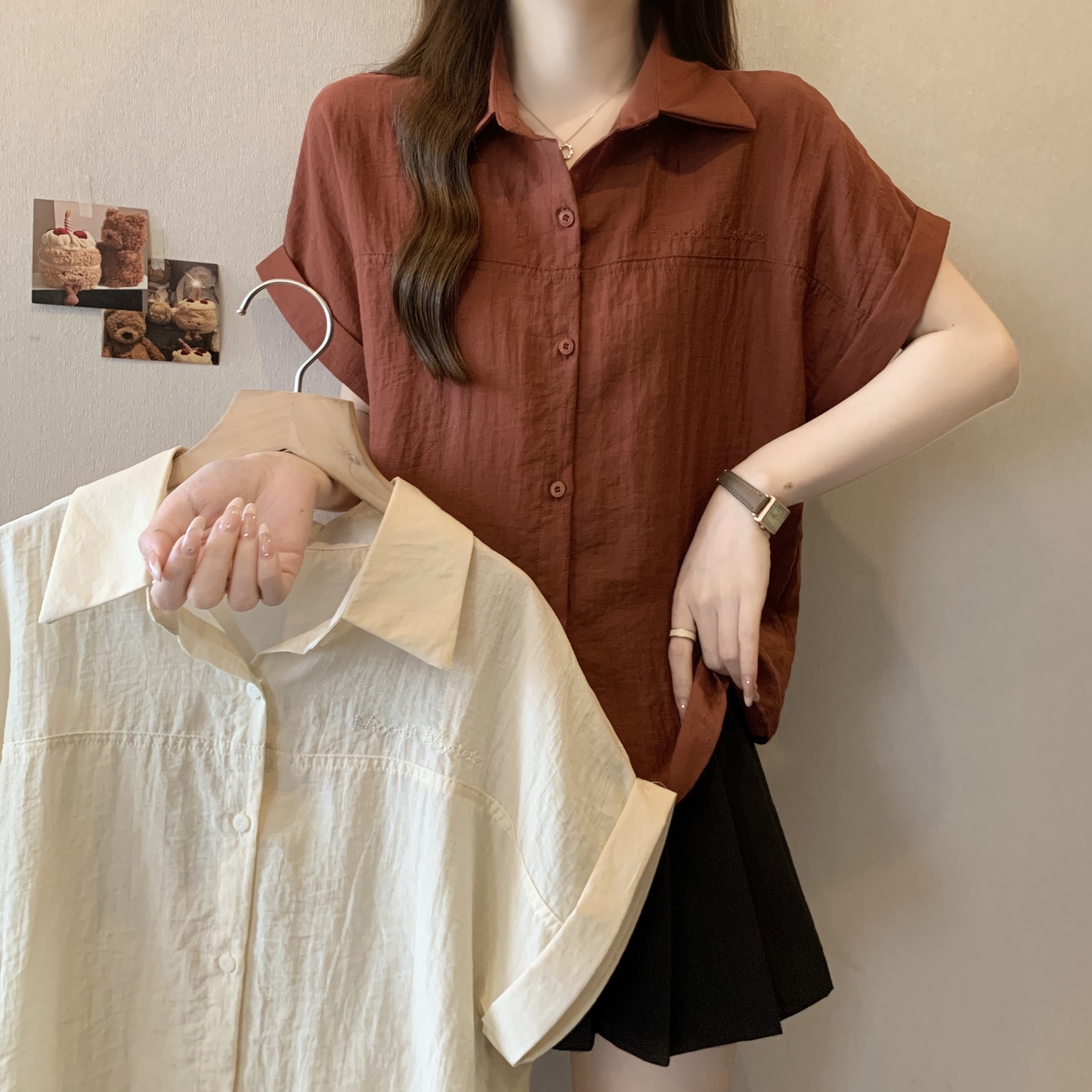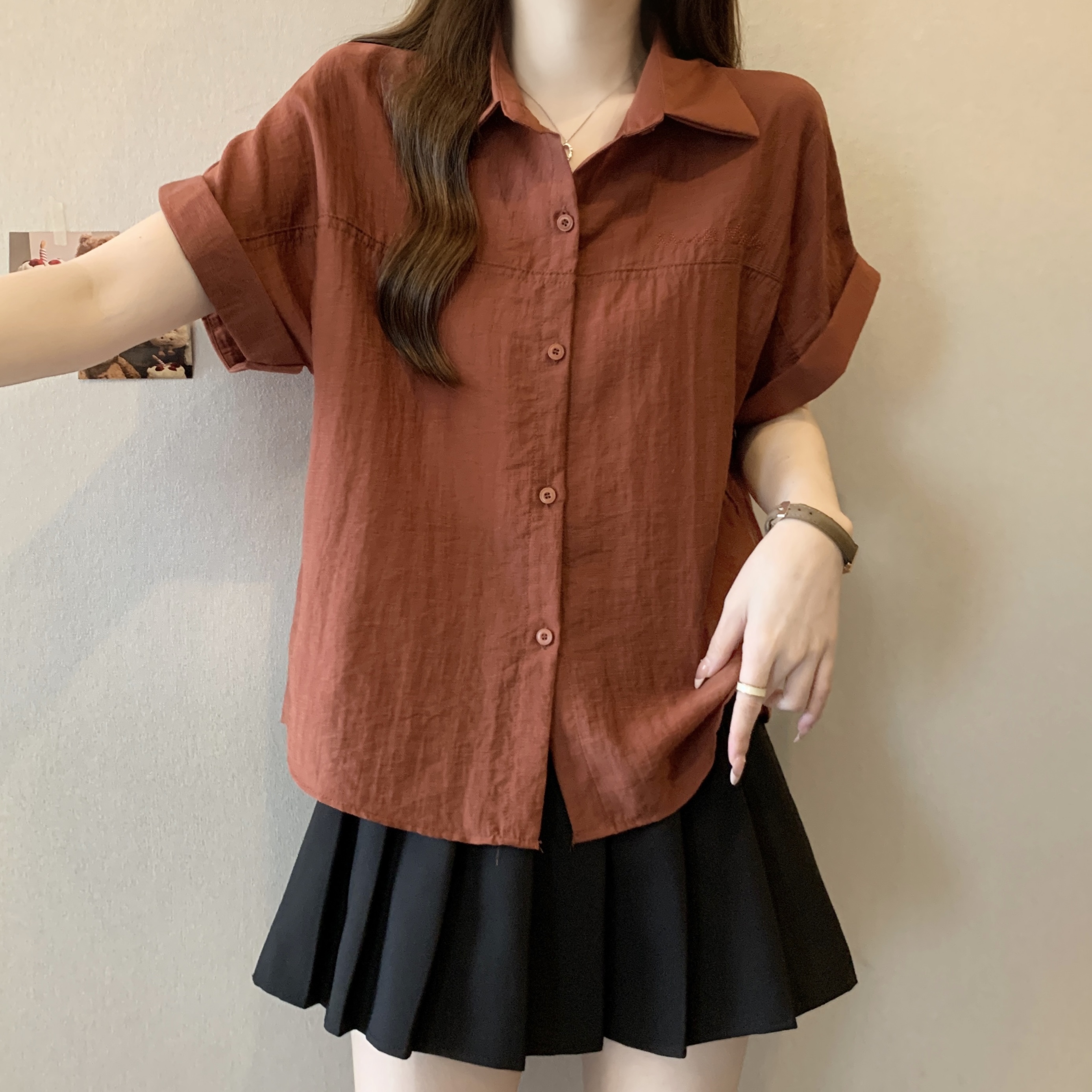 RY3842# 夏季新款胖MM设计感短袖纯色衬衫女打底衫200斤可穿