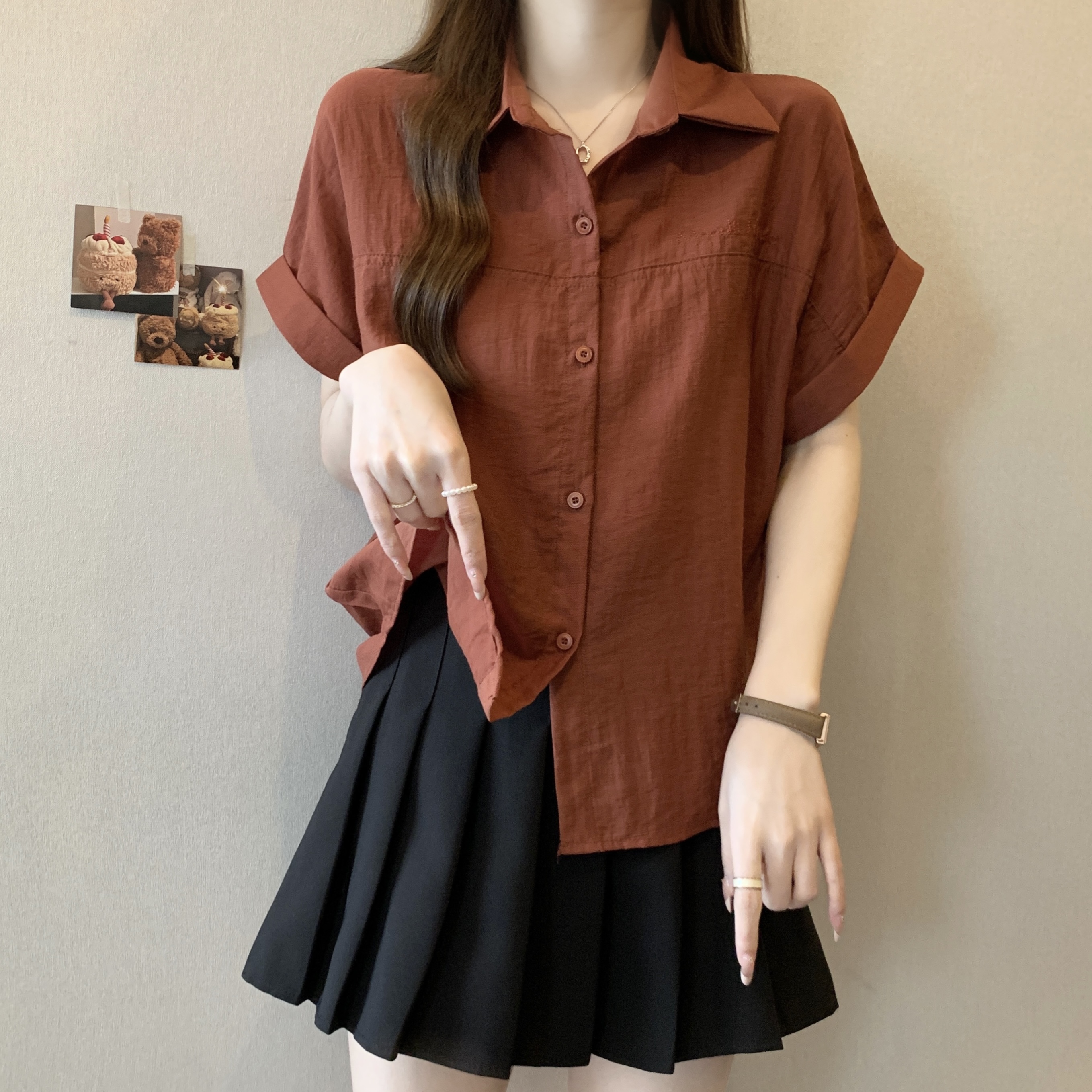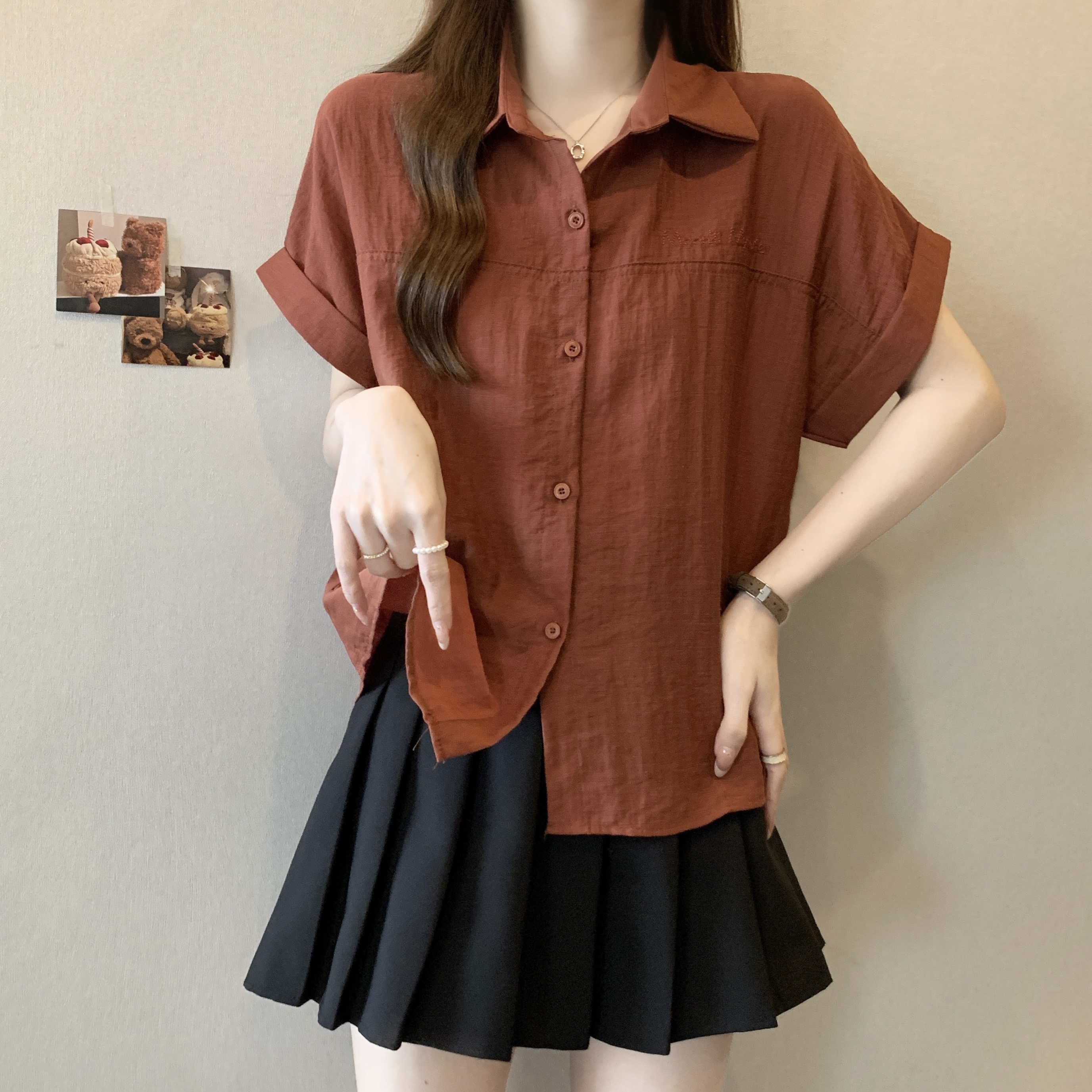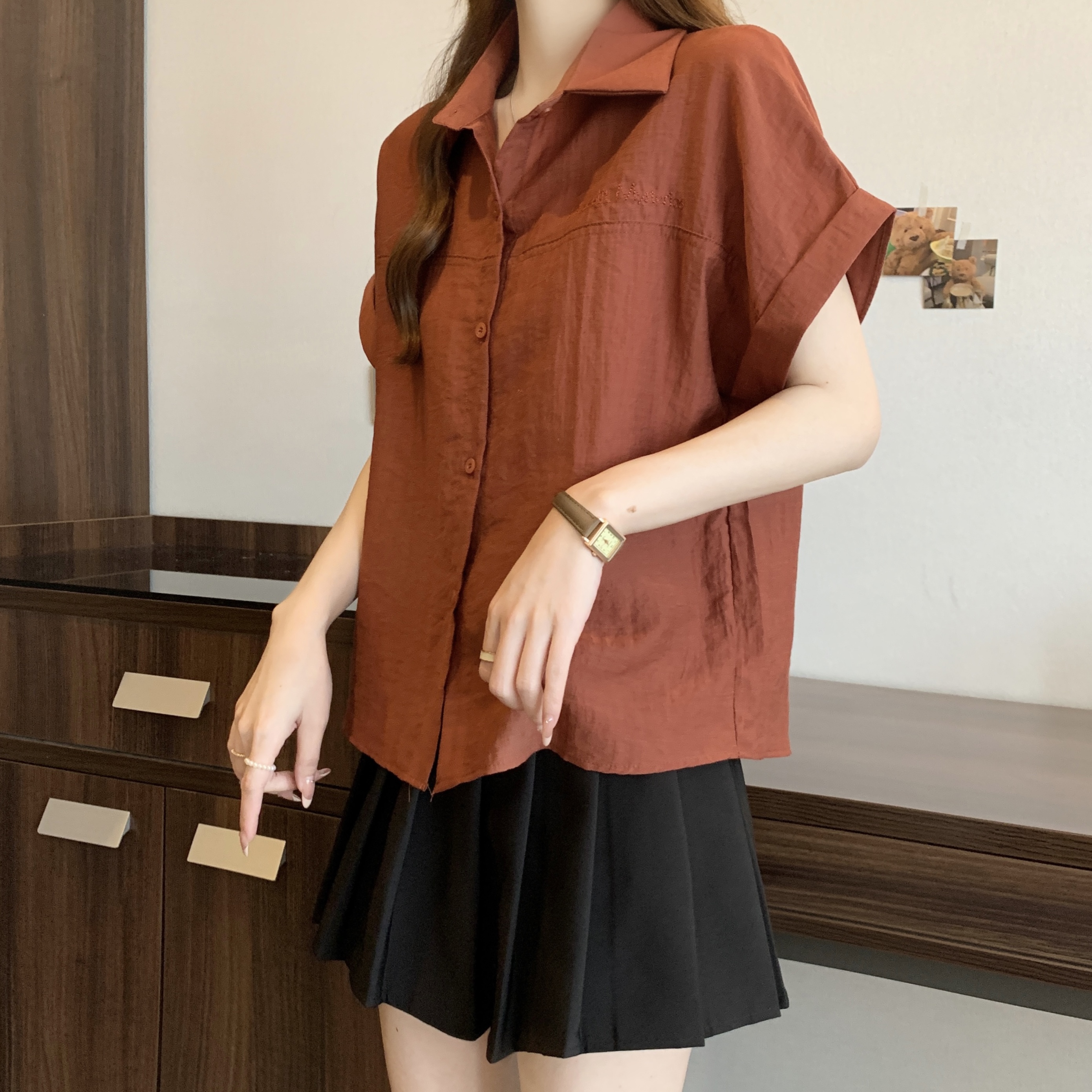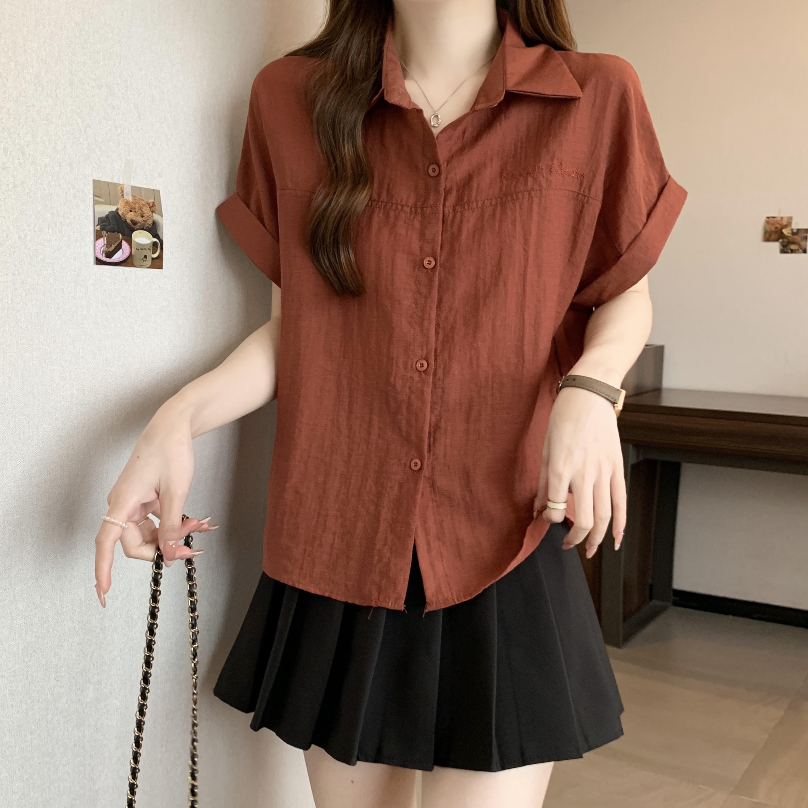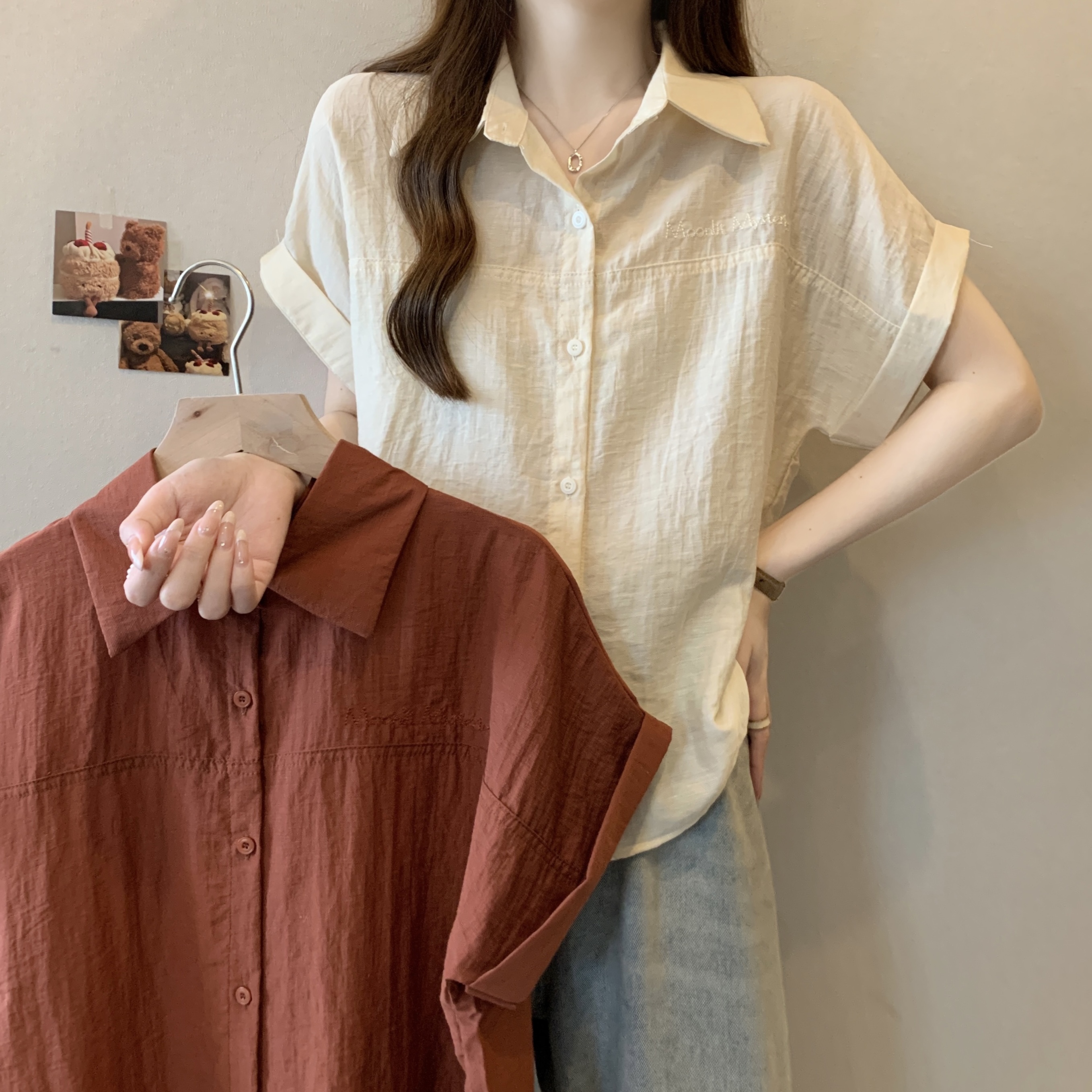 RY3842# 夏季新款胖MM设计感短袖纯色衬衫女打底衫200斤可穿