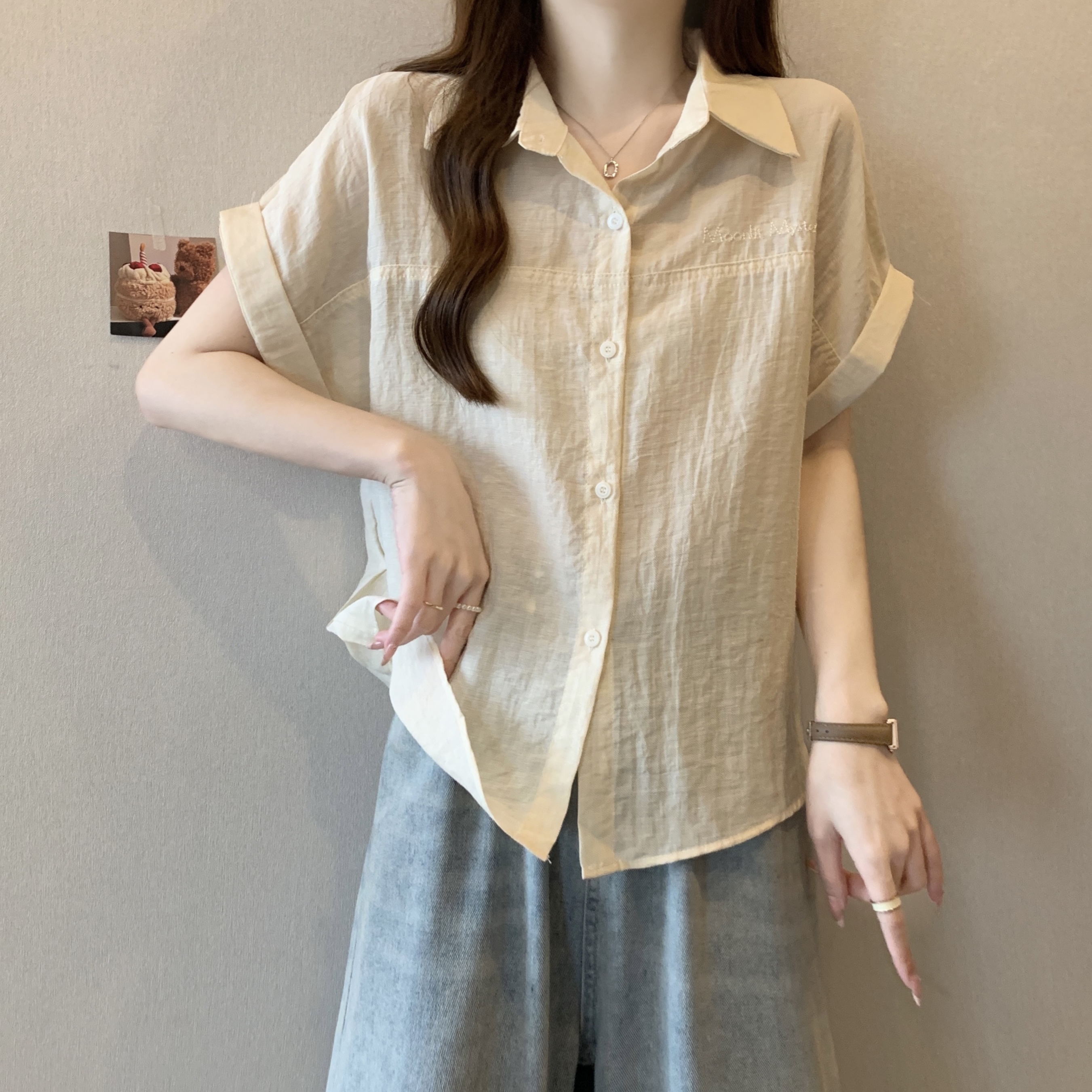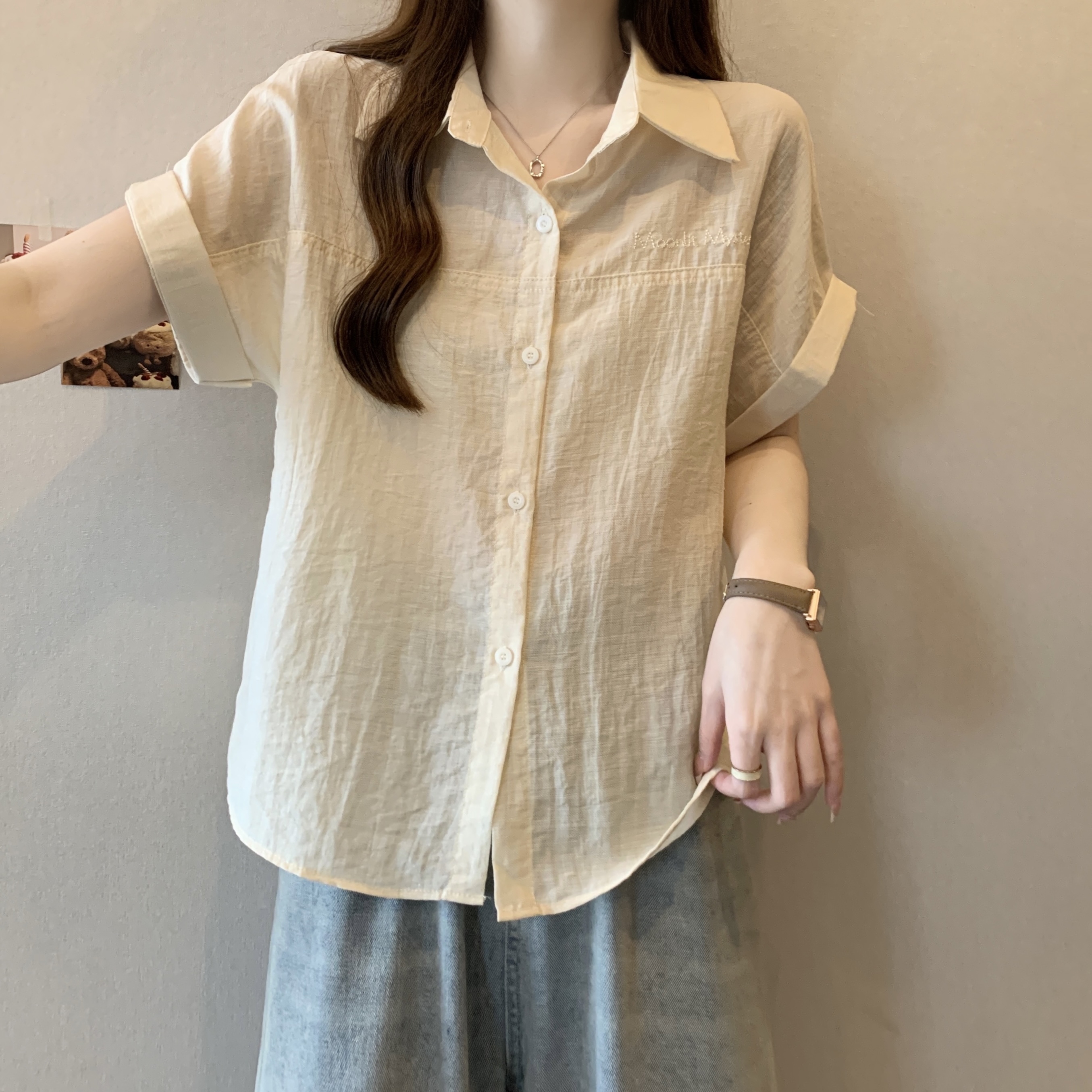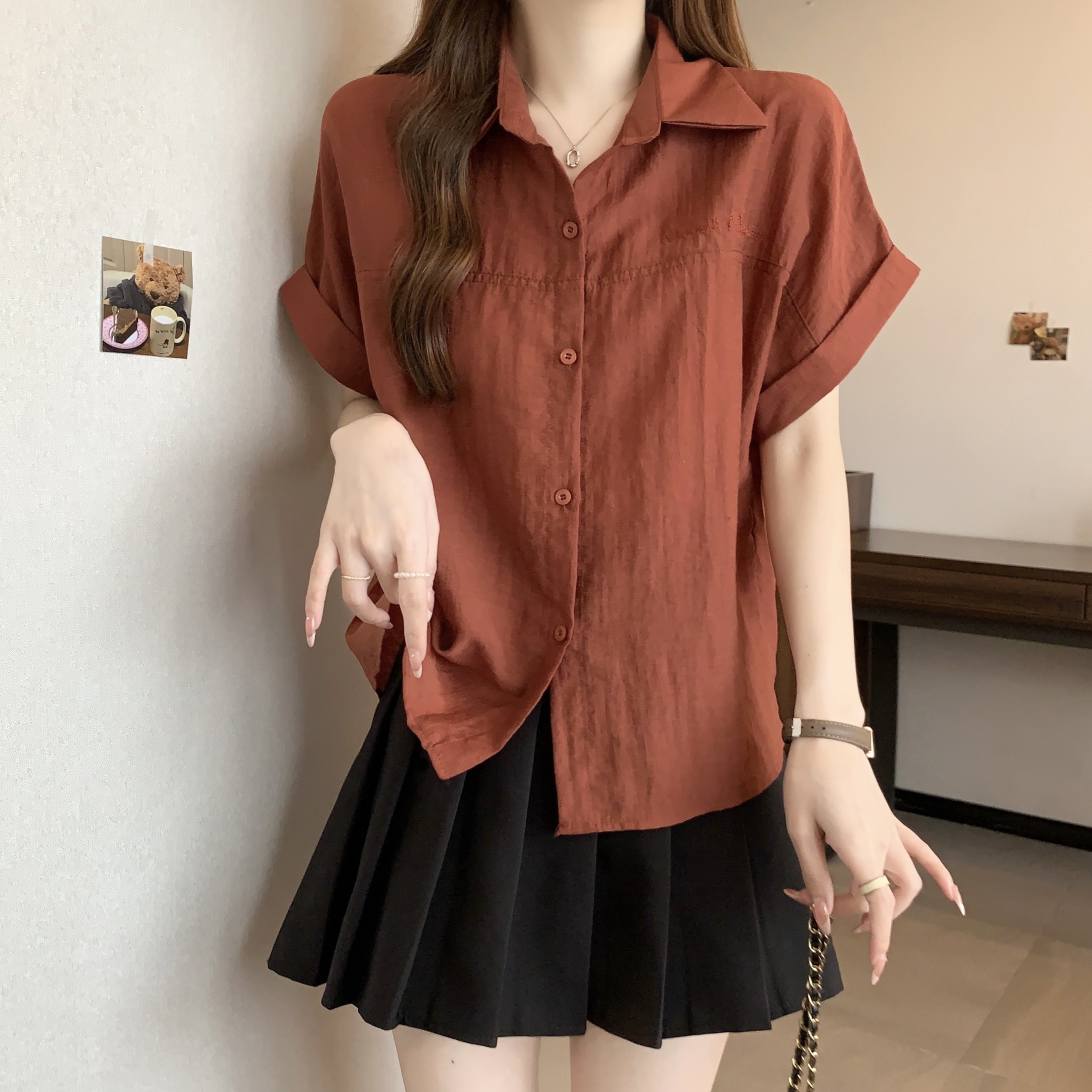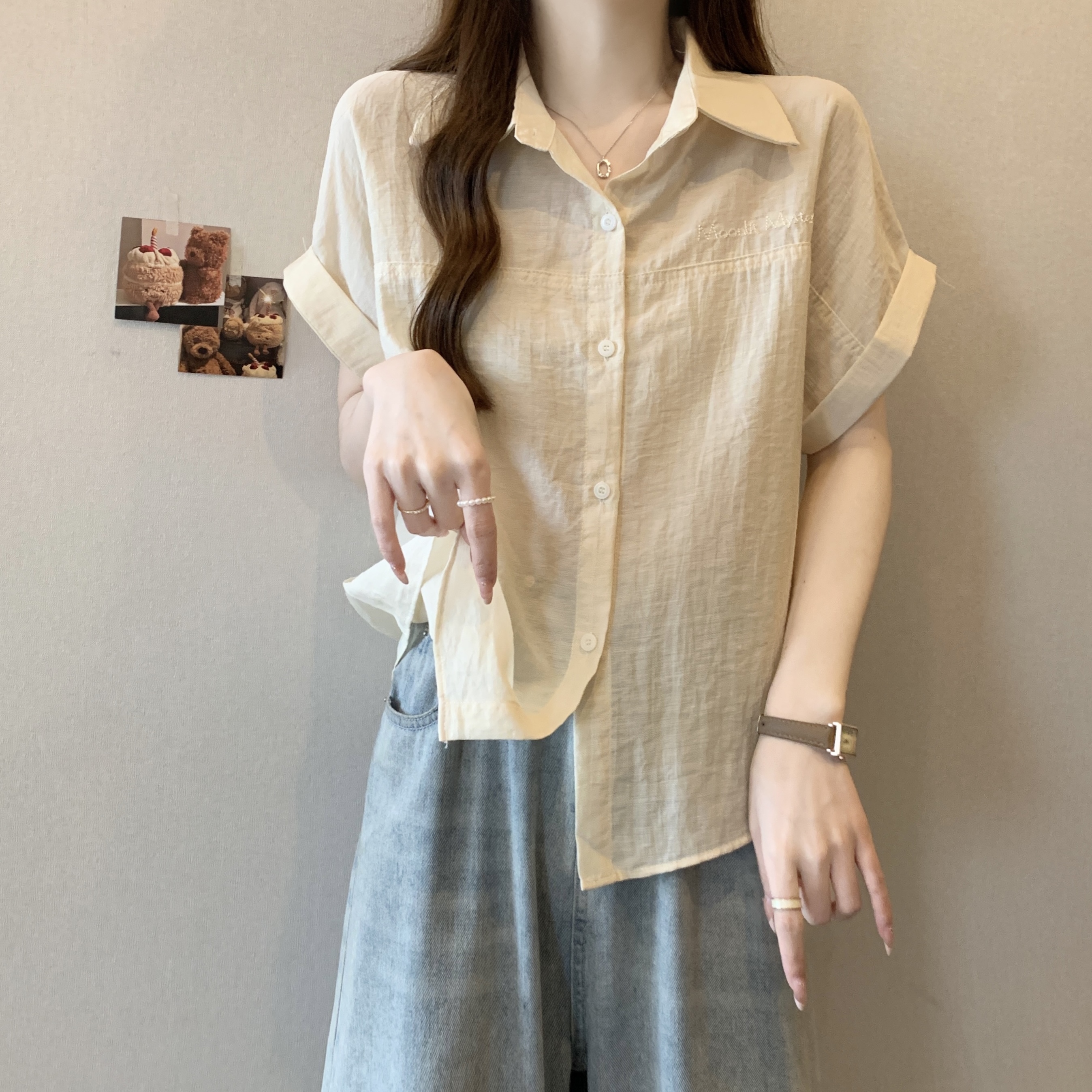 RY3842# 夏季新款胖MM设计感短袖纯色衬衫女打底衫200斤可穿