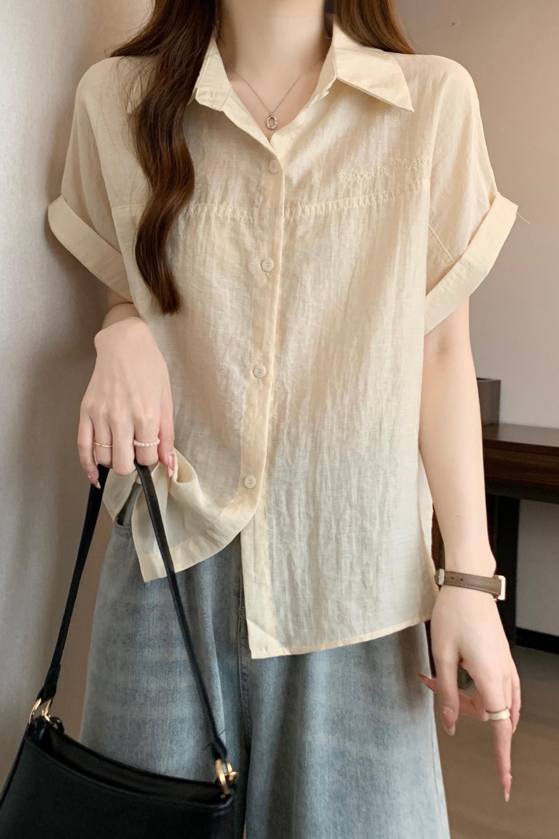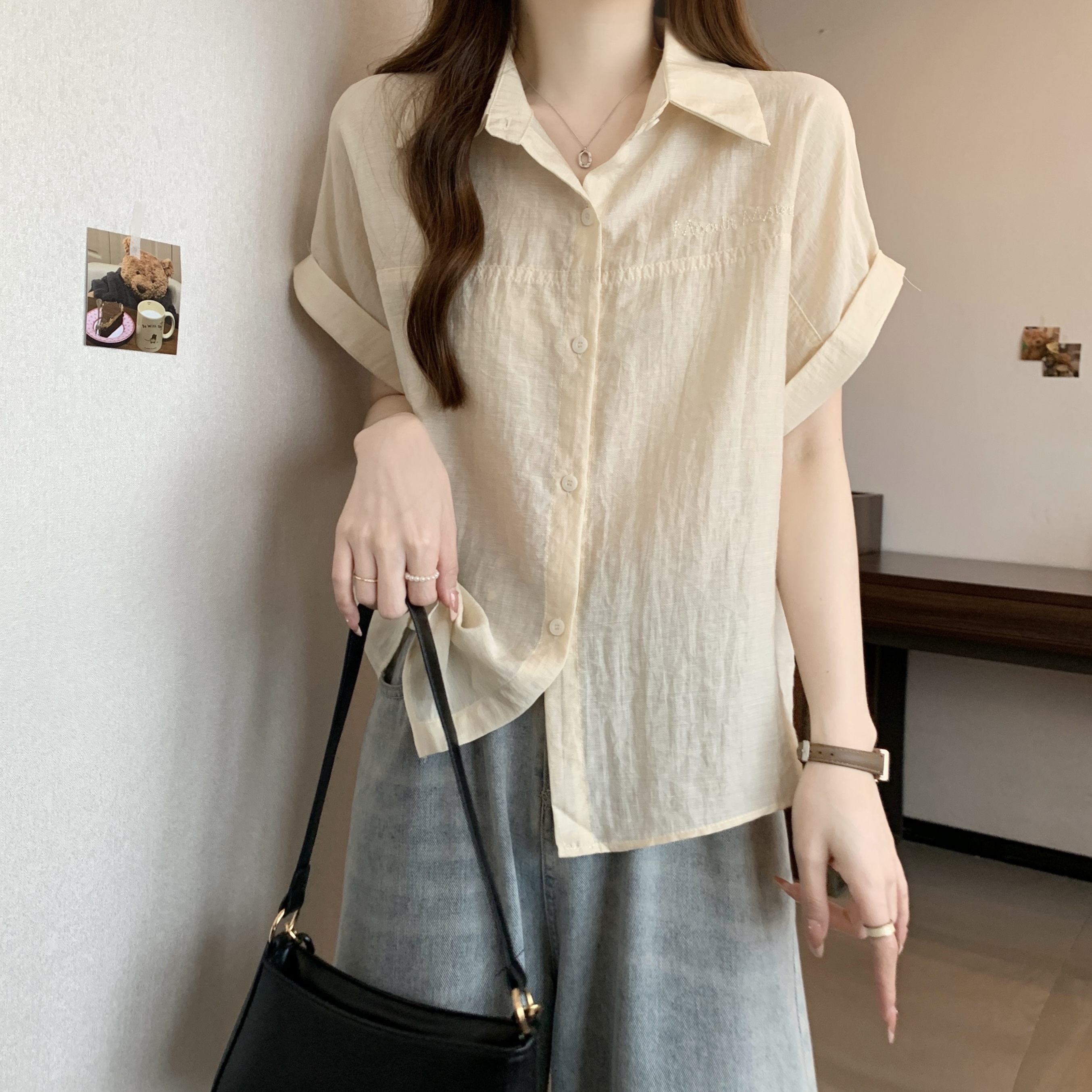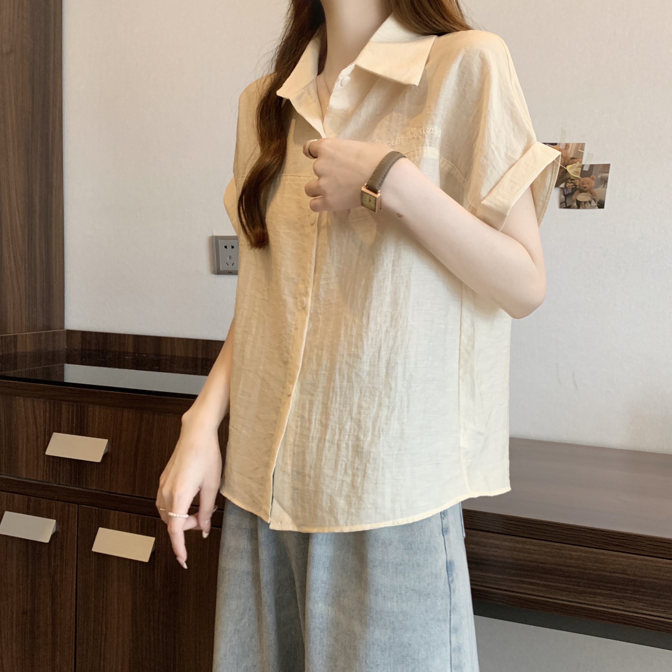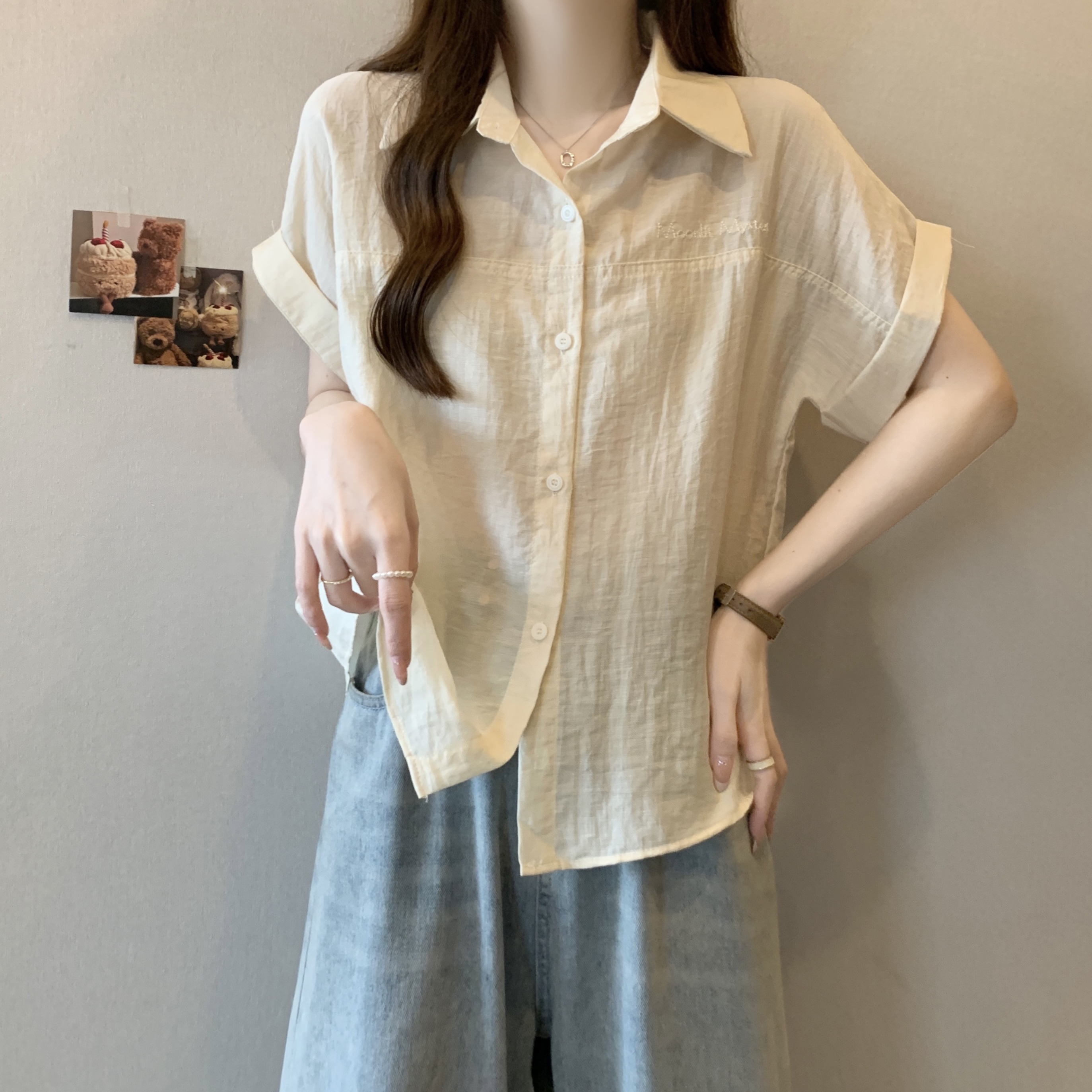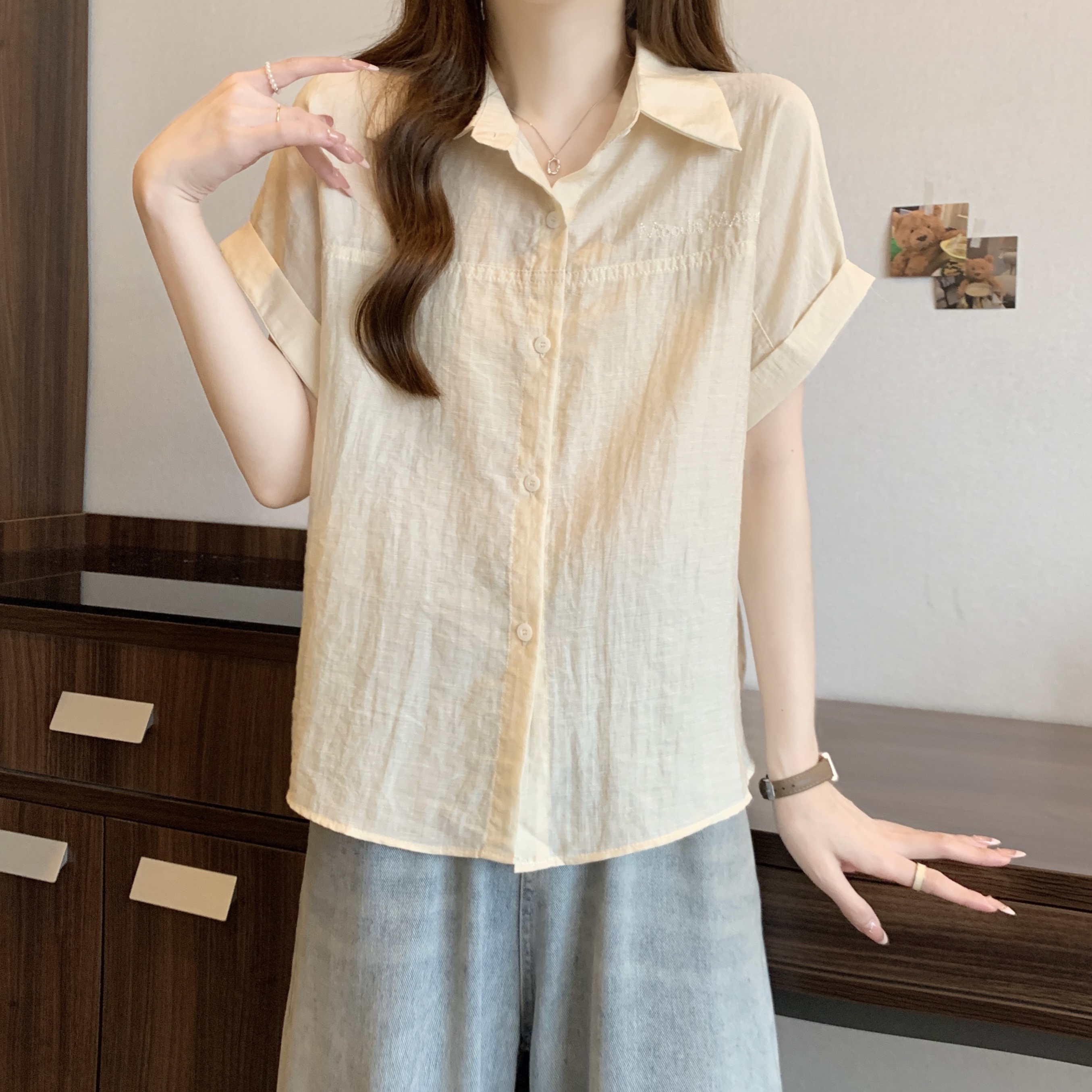 RY3842# 夏季新款胖MM设计感短袖纯色衬衫女打底衫200斤可穿