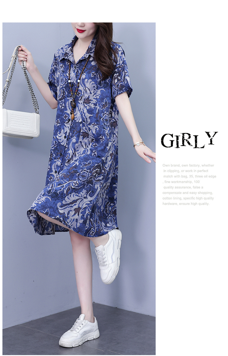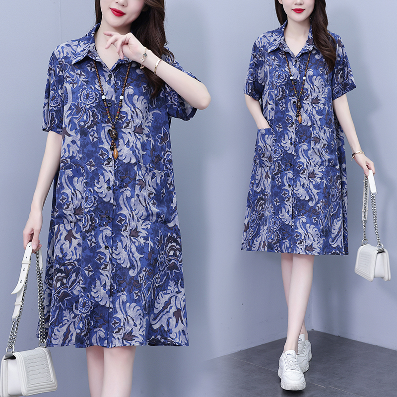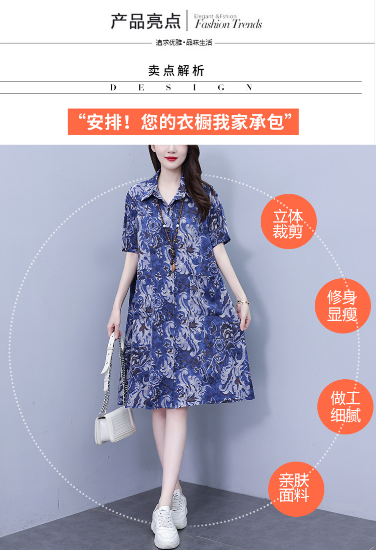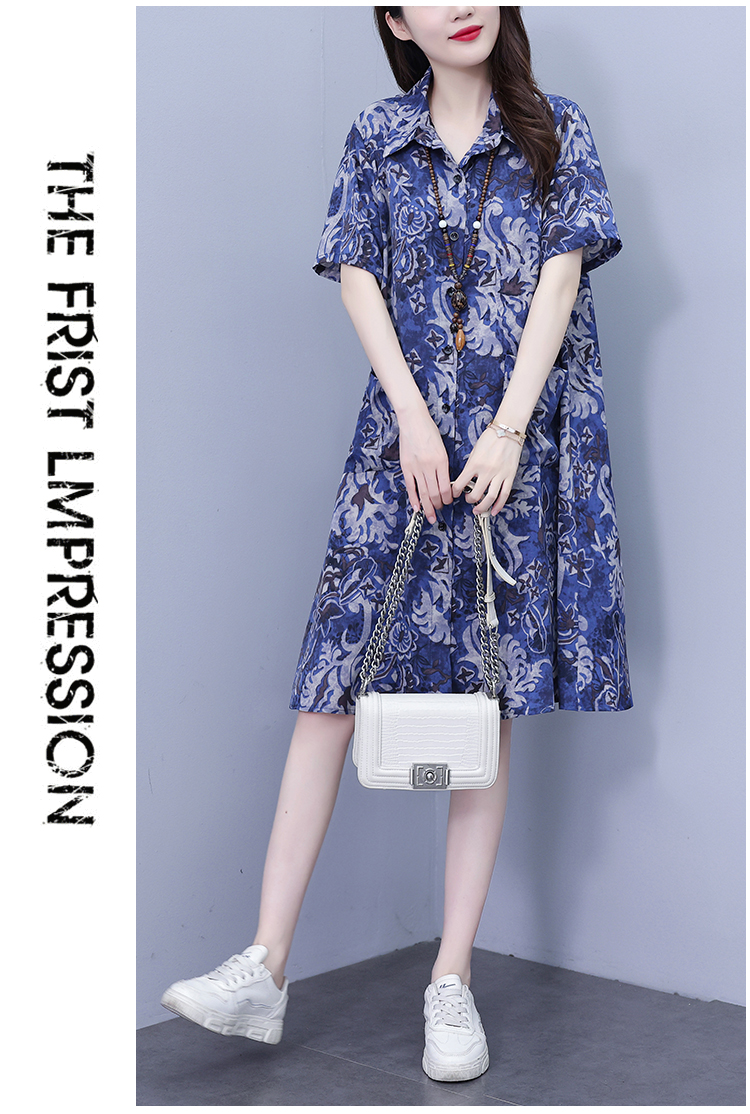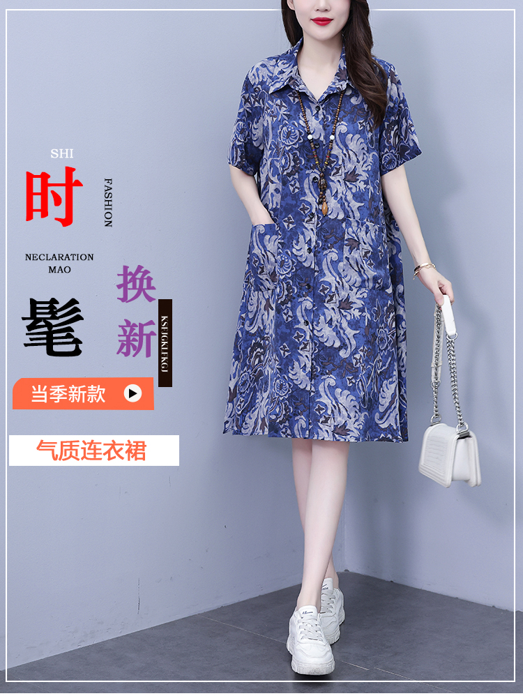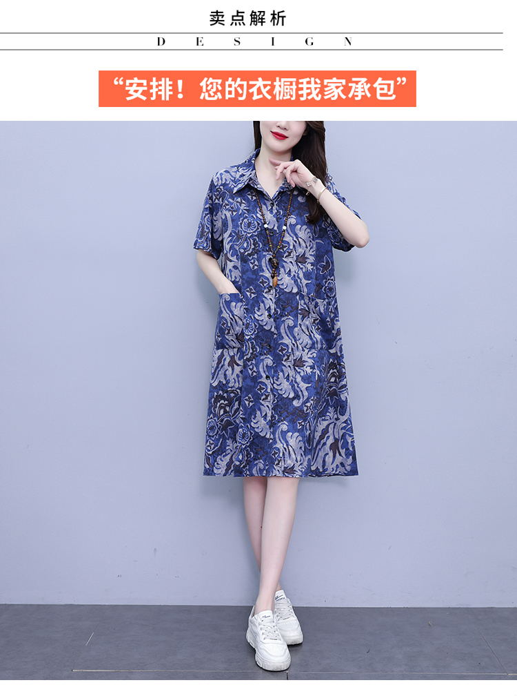 RY3350# 实拍26新款夏季文艺大码胖MM圆领宽松花色连衣裙外贸女衣长...
