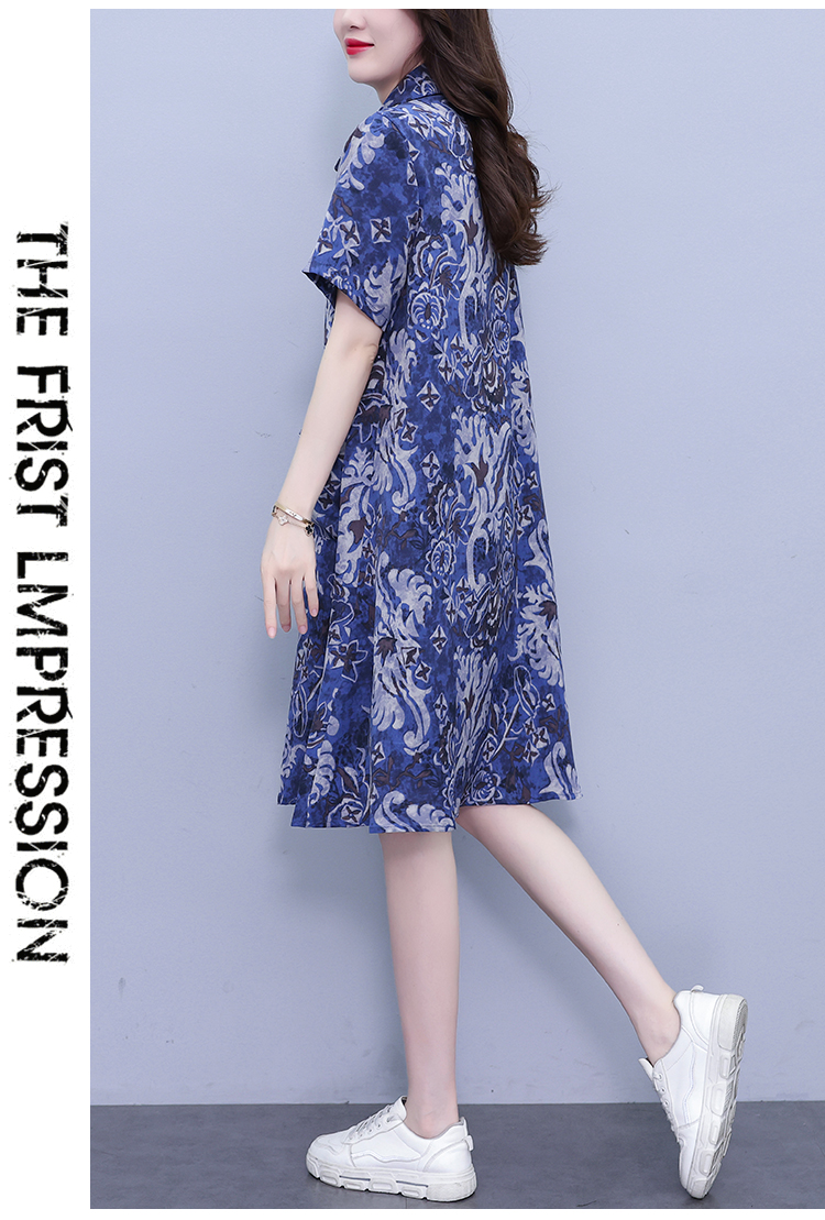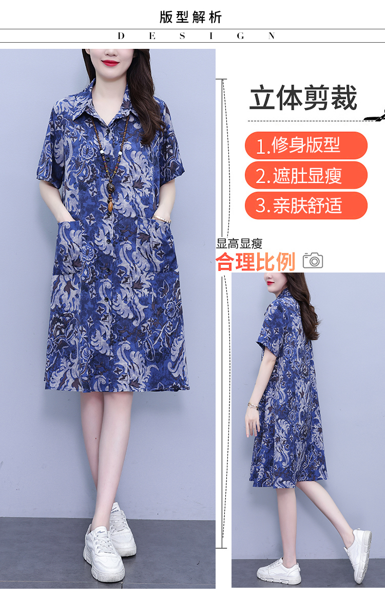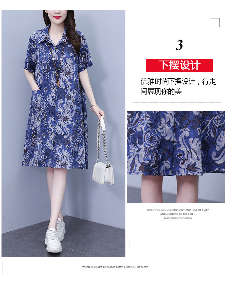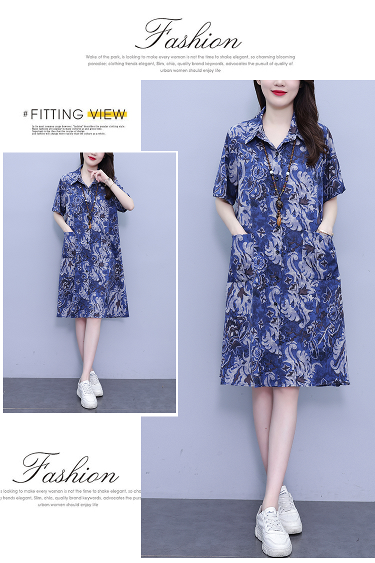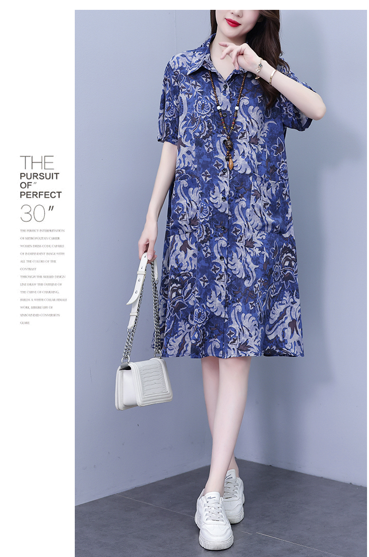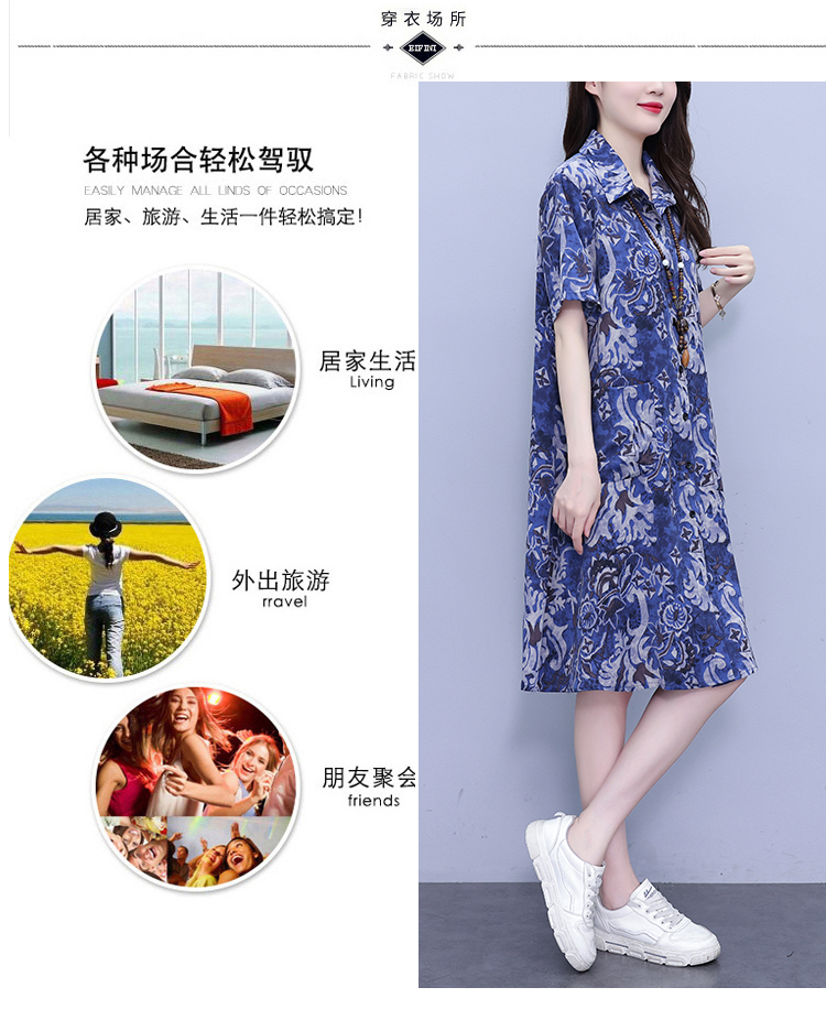 RY3350# 实拍26新款夏季文艺大码胖MM圆领宽松花色连衣裙外贸女衣长...