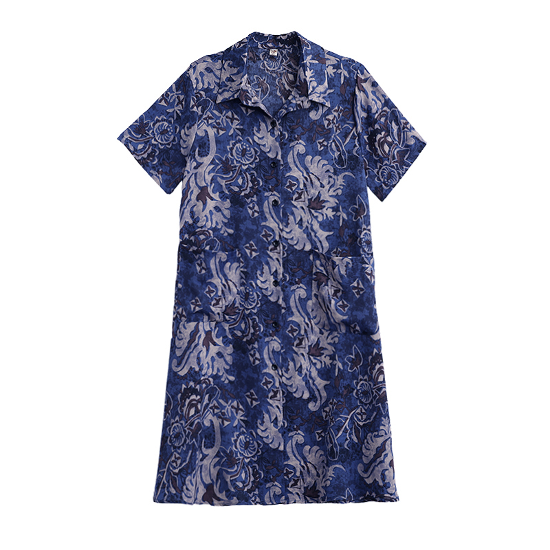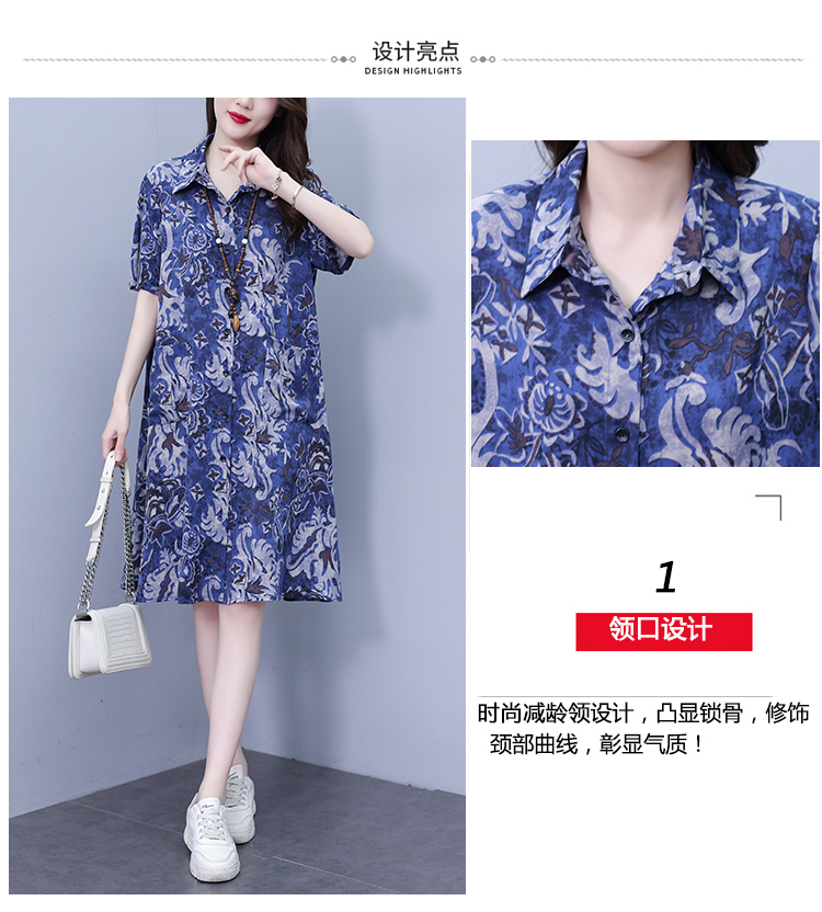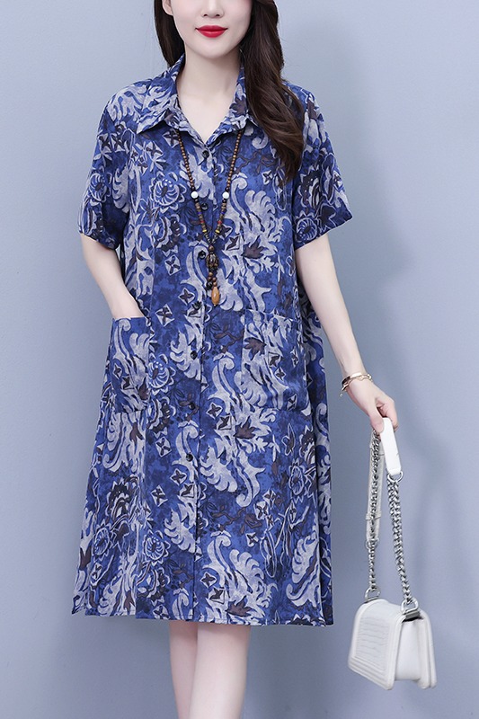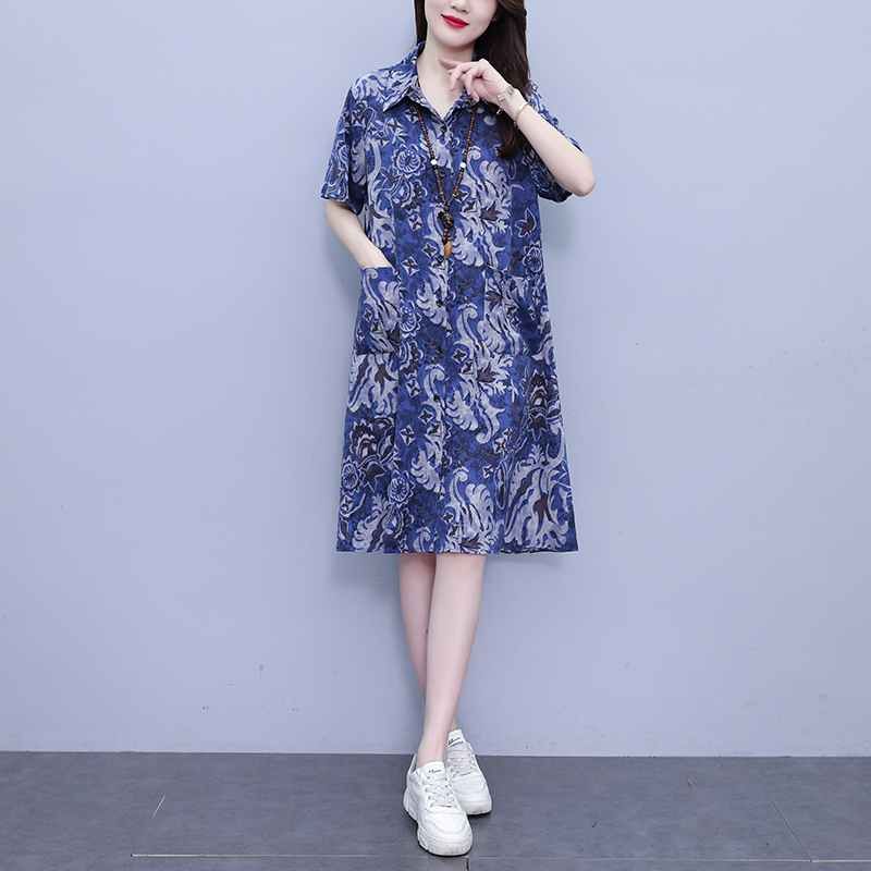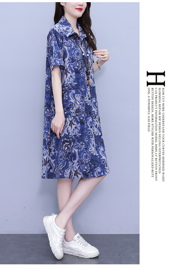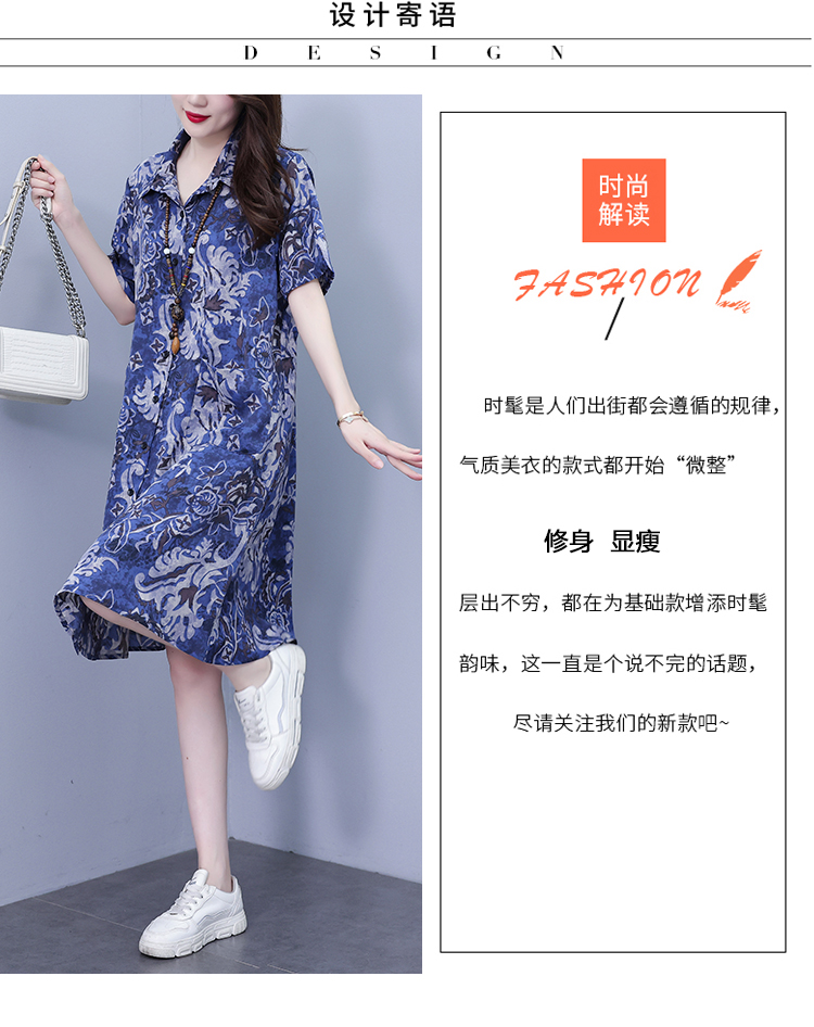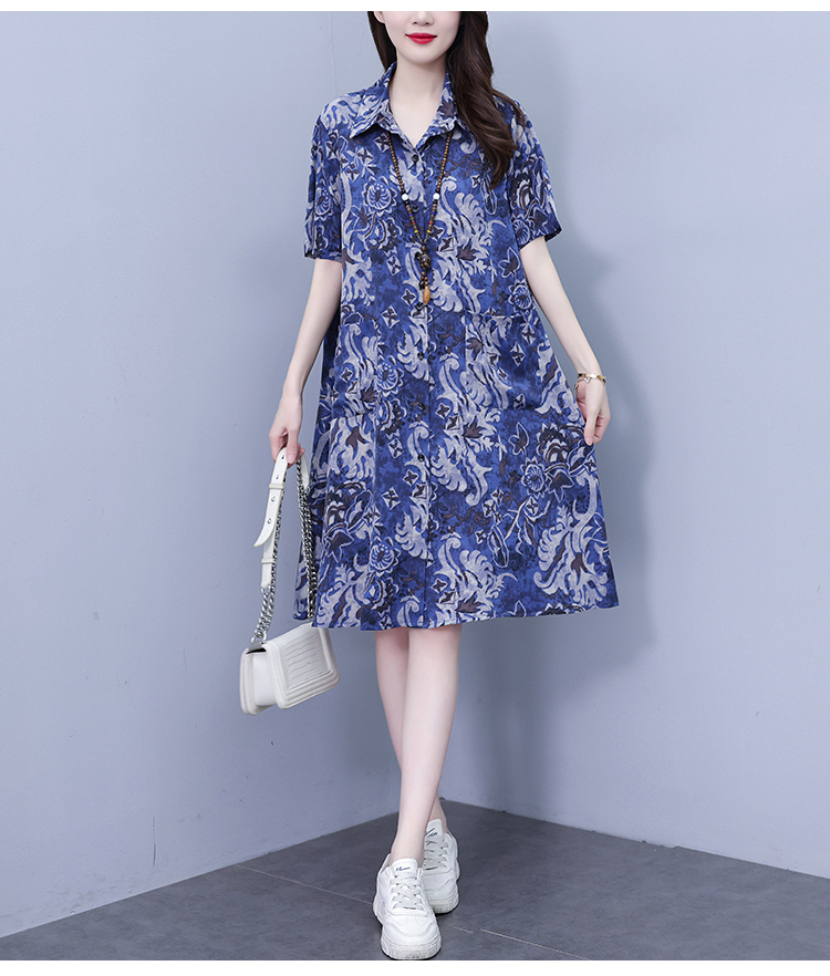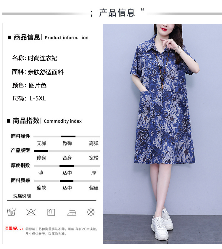 RY3350# 实拍26新款夏季文艺大码胖MM圆领宽松花色连衣裙外贸女衣长...