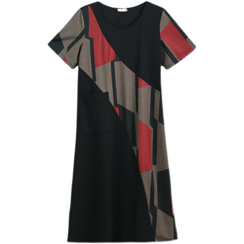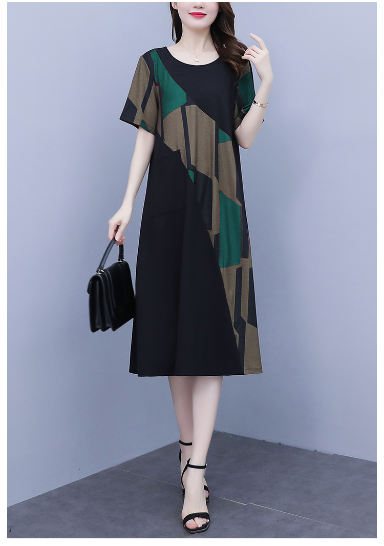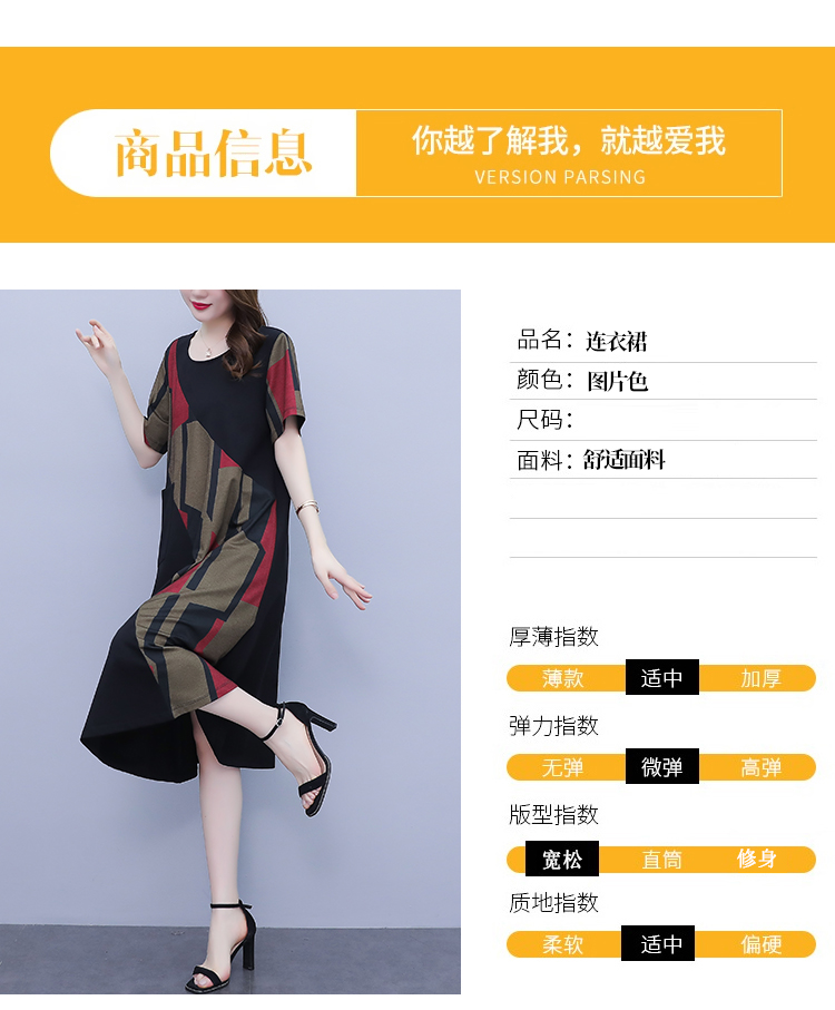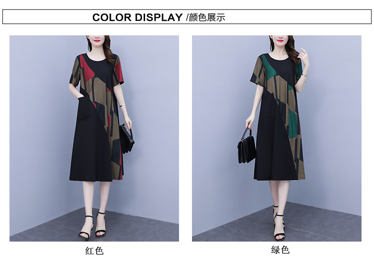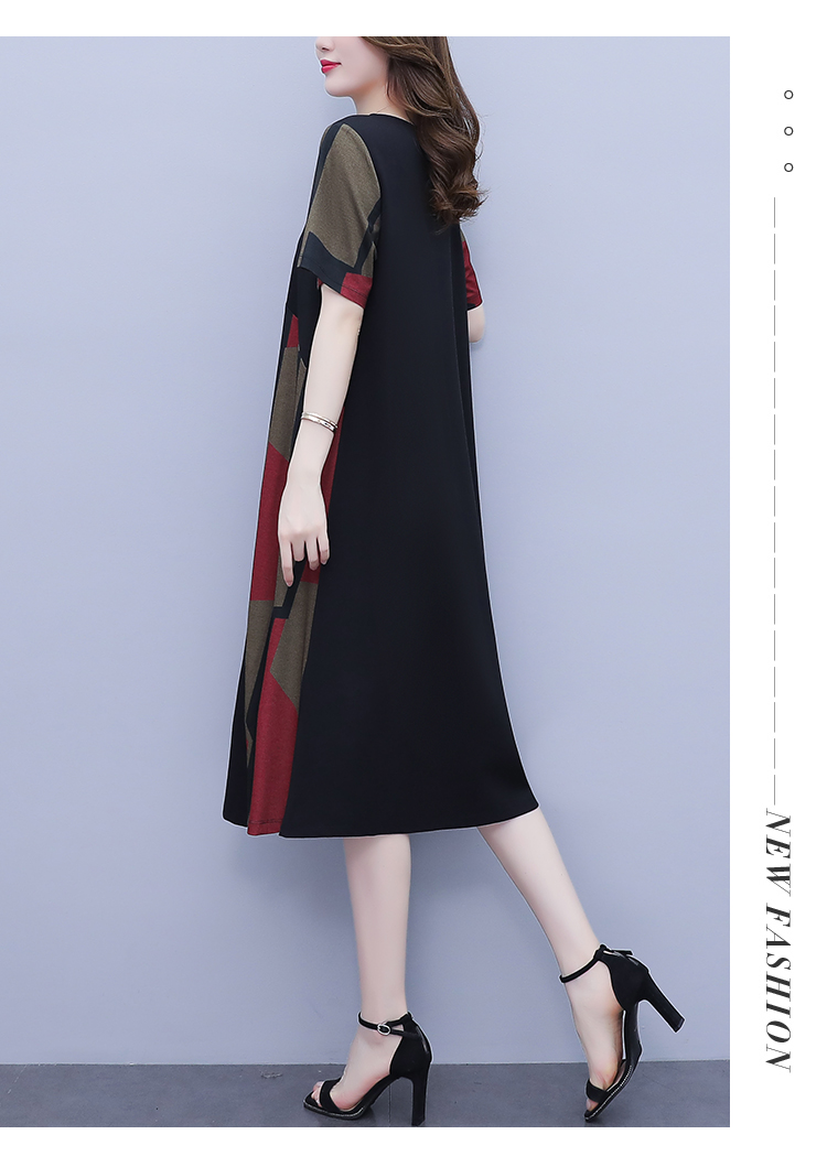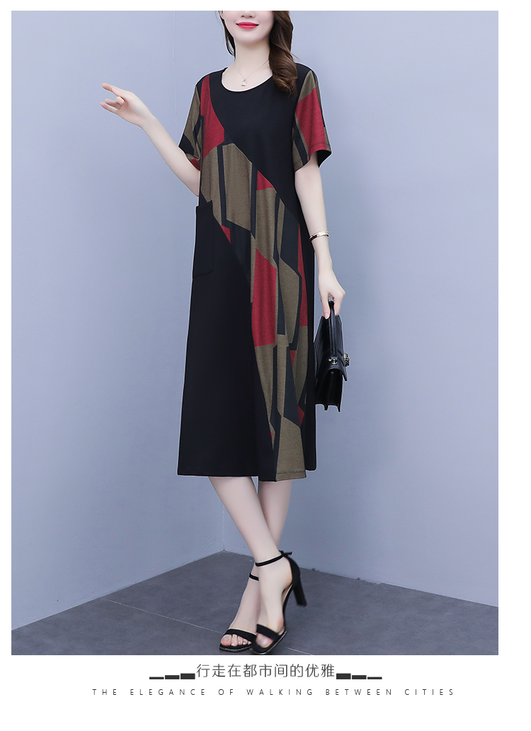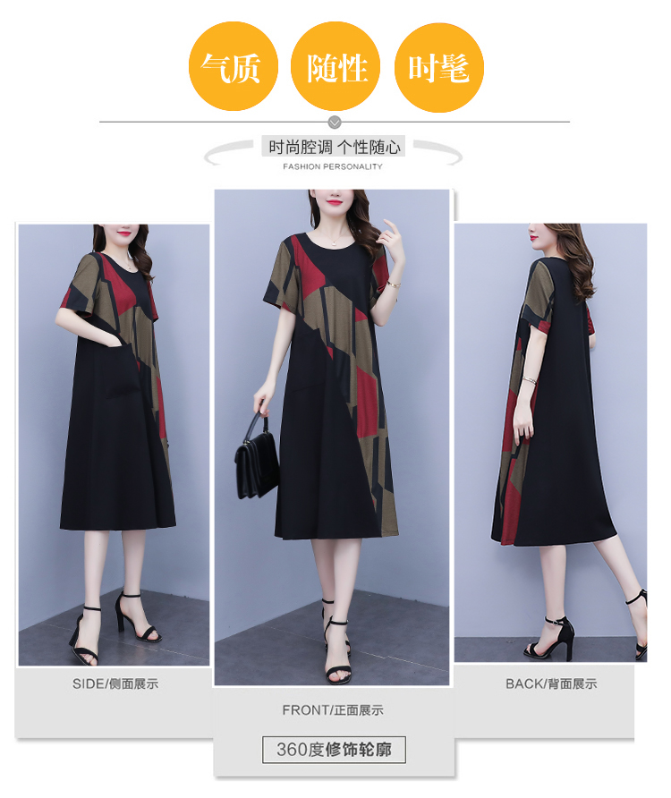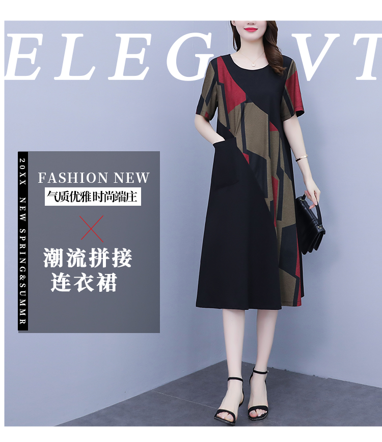 RY3849# 2026年夏装新款大码女装拼接洋气胖mm遮肚子显瘦宽松短袖连衣裙