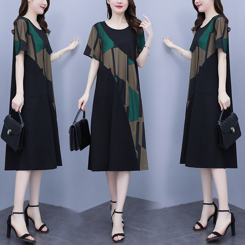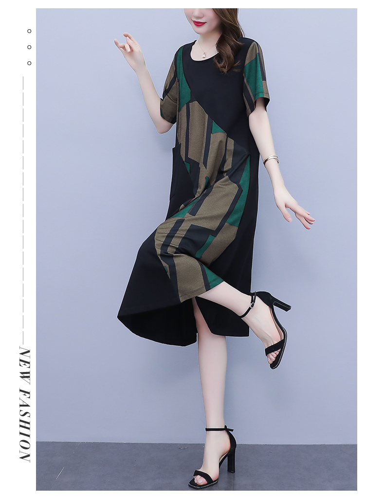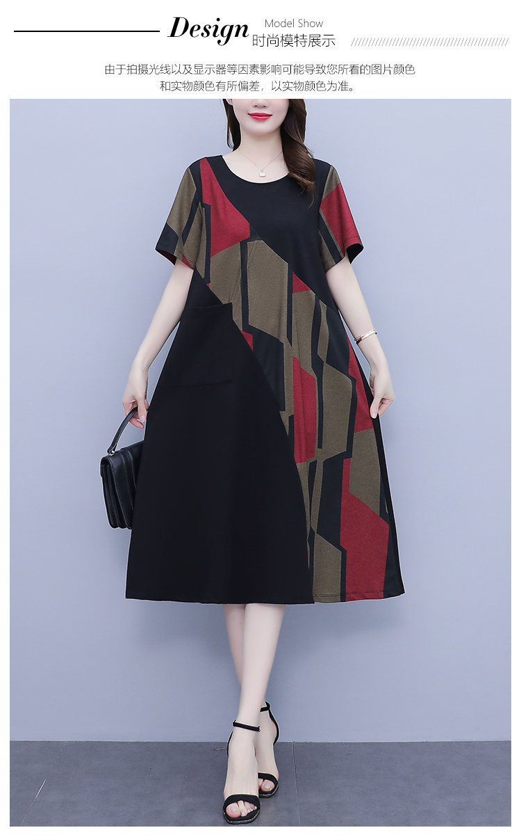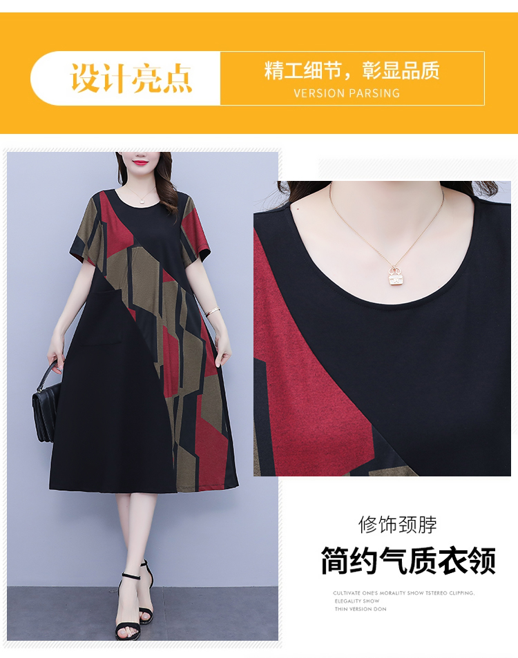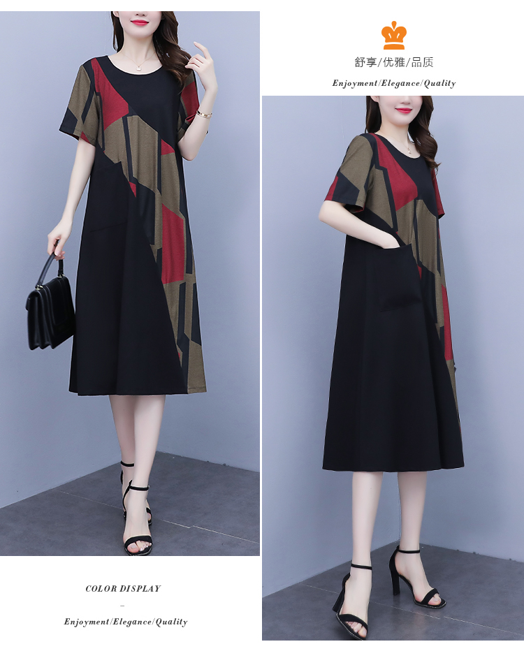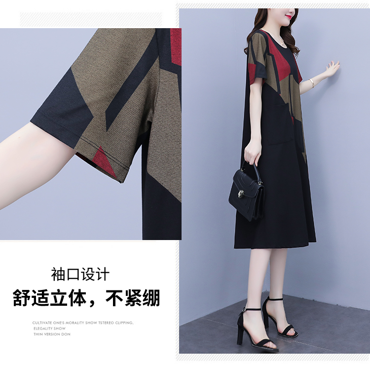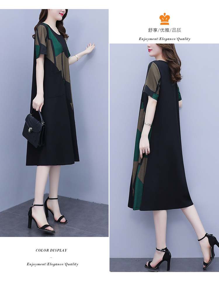 RY3849# 2026年夏装新款大码女装拼接洋气胖mm遮肚子显瘦宽松短袖连衣裙