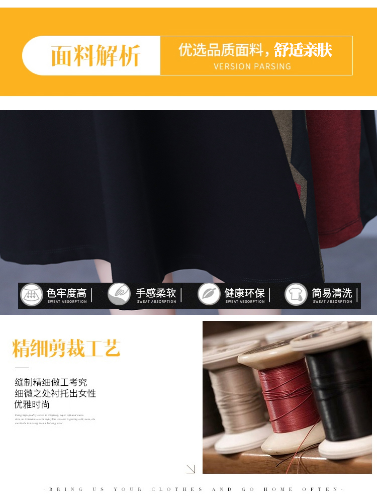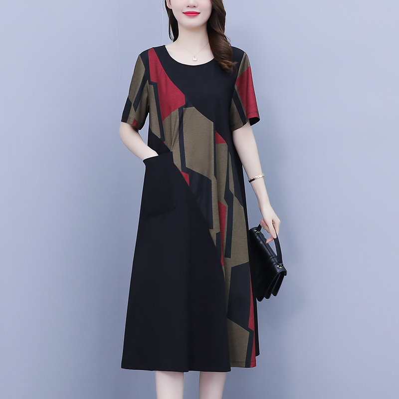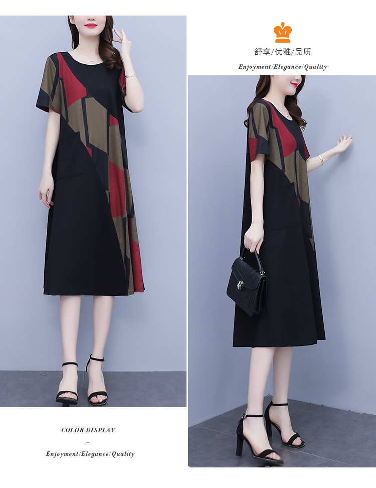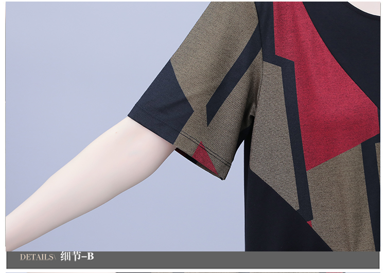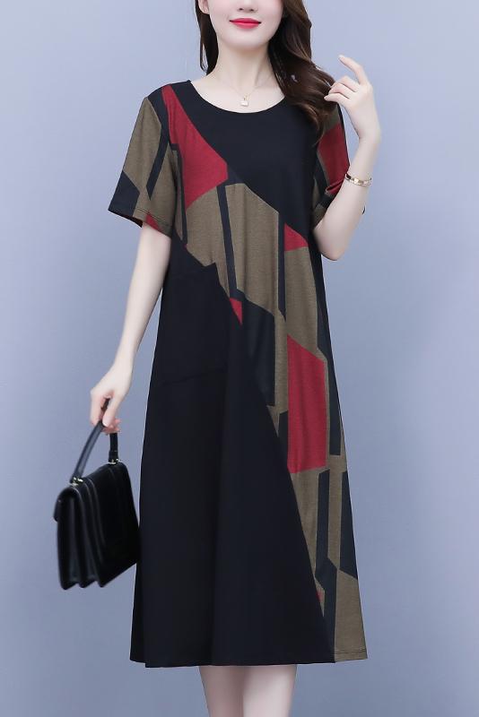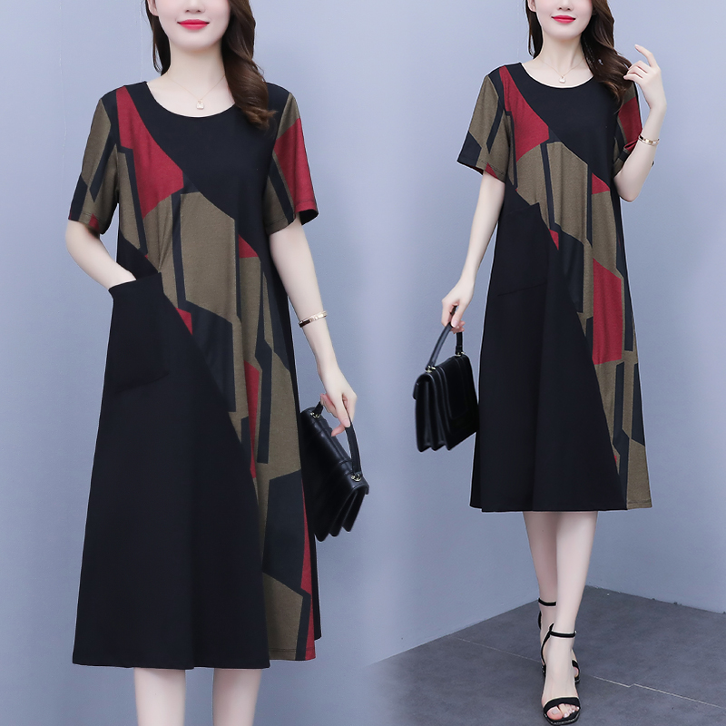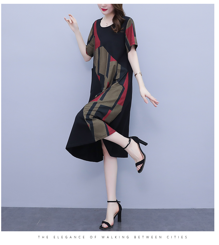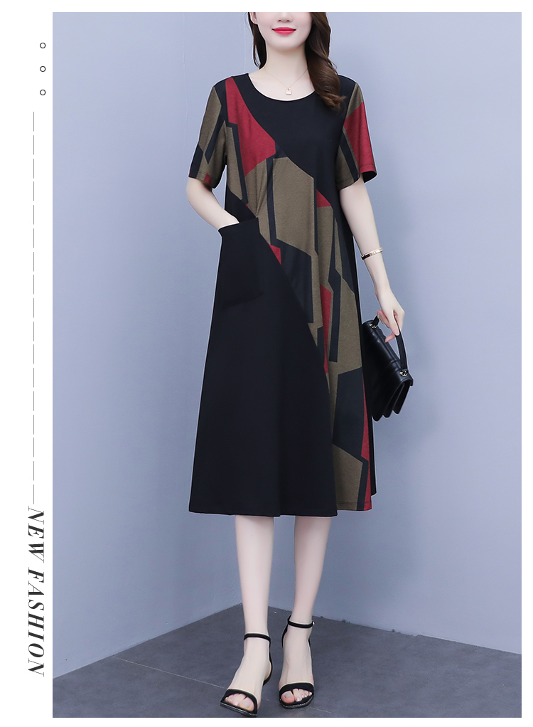 RY3849# 2026年夏装新款大码女装拼接洋气胖mm遮肚子显瘦宽松短袖连衣裙